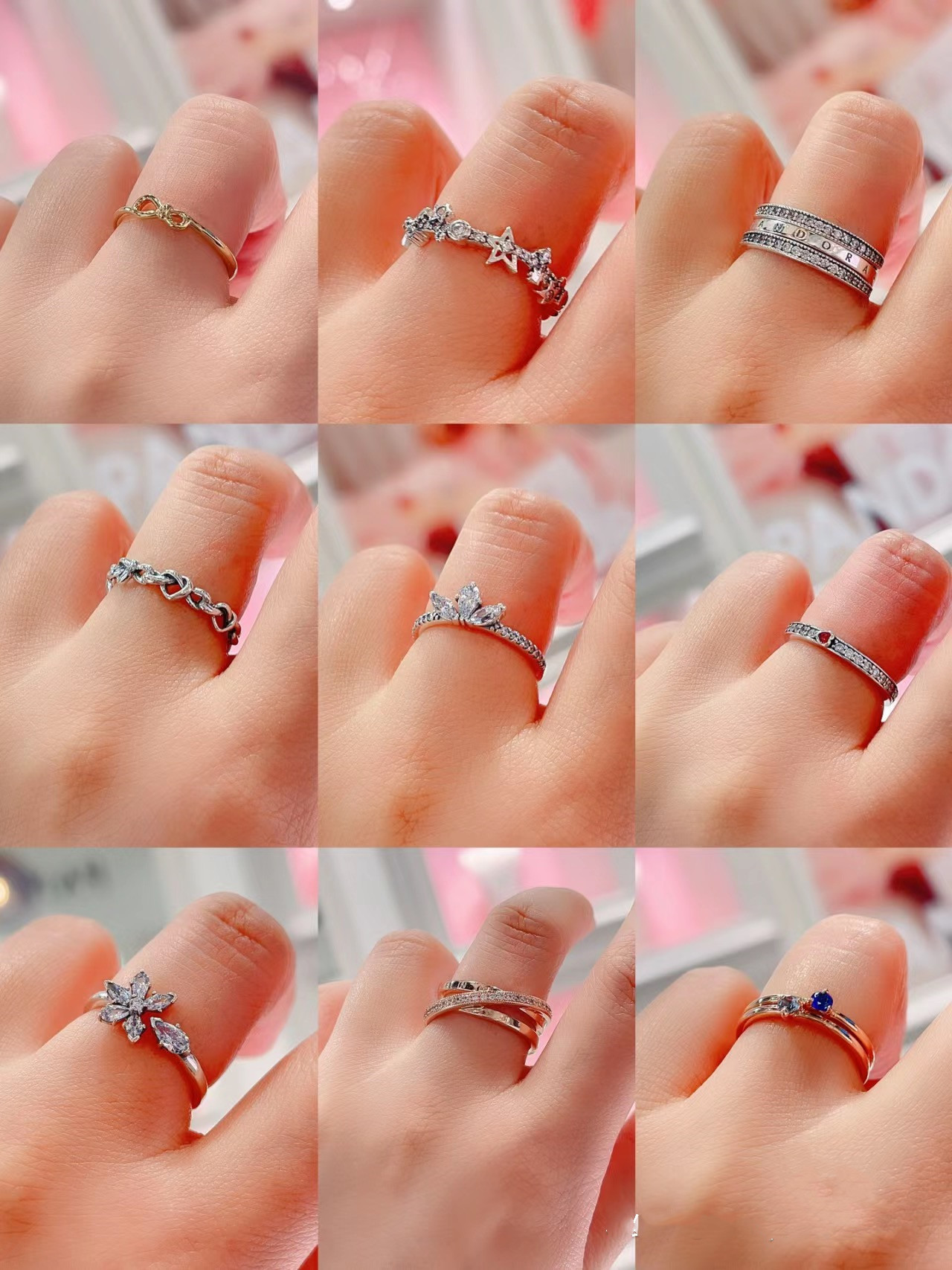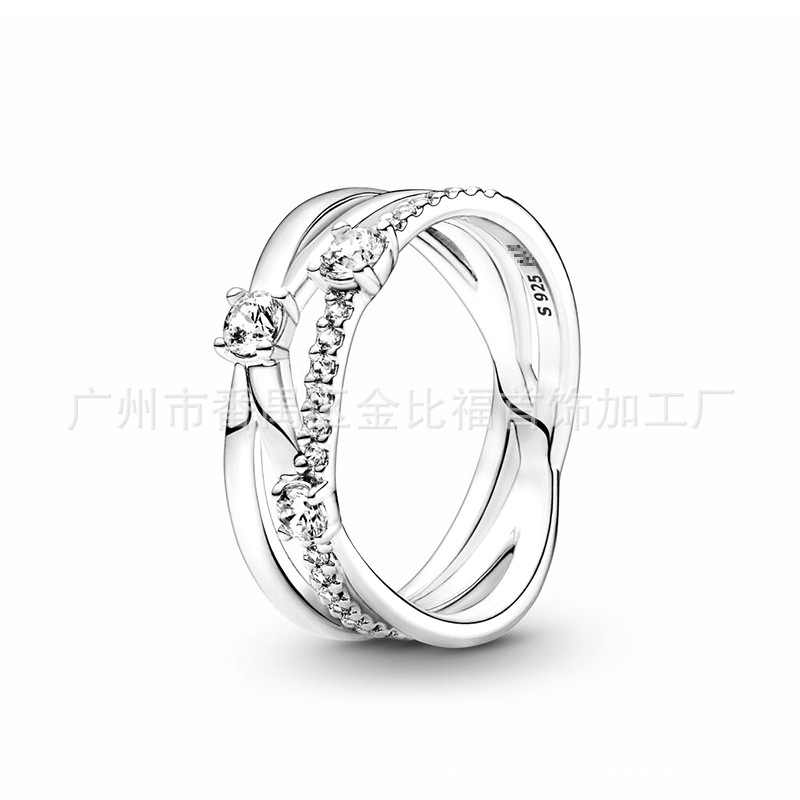 潘家多拉S925银戒指母亲节新品闪耀双心戒指圆形爱心款式戒指女