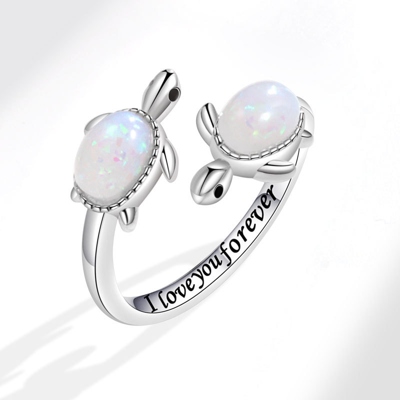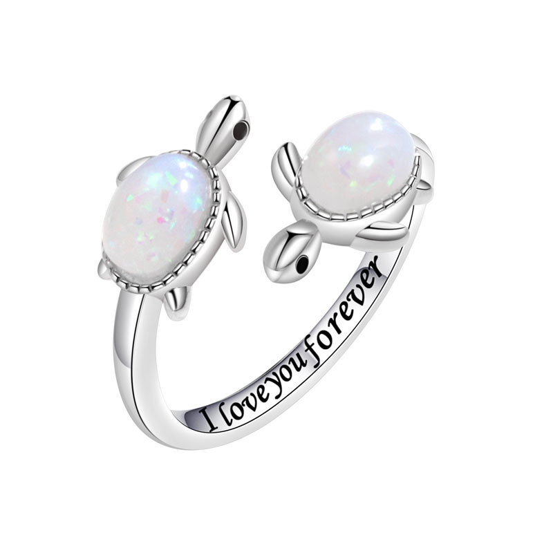 跨境新品小乌龟仿蛋白石开口戒指女亚马逊新款母亲节礼物首饰批发