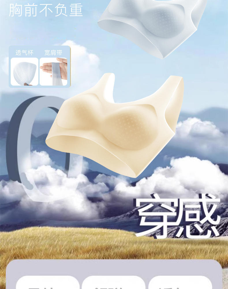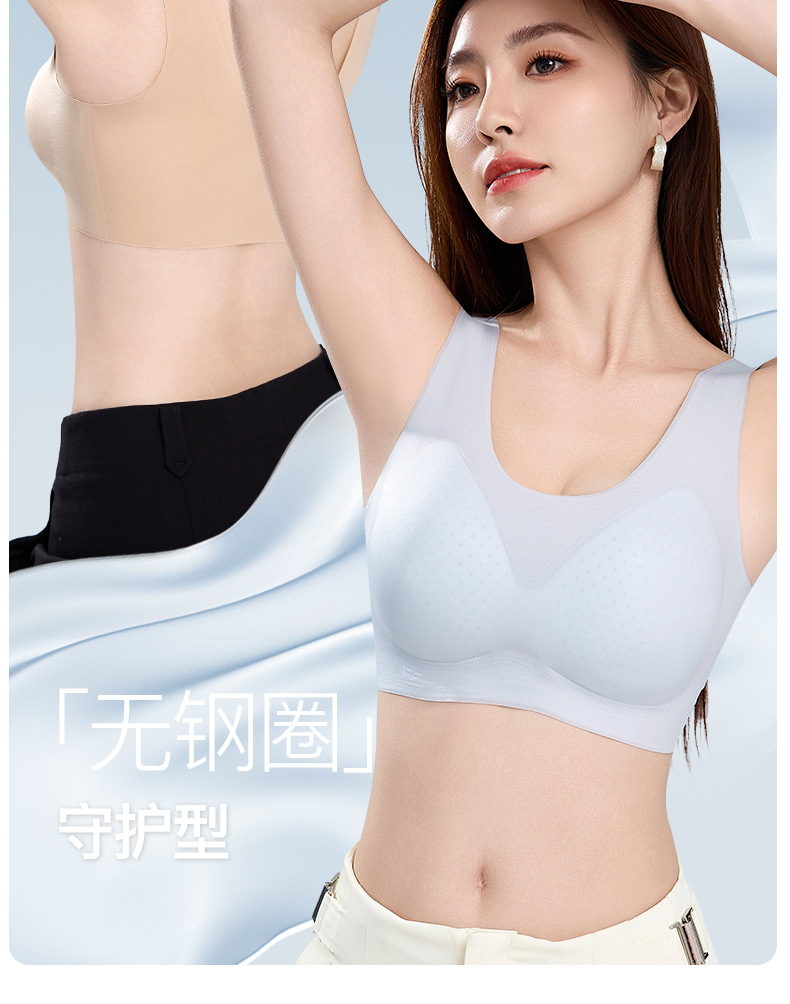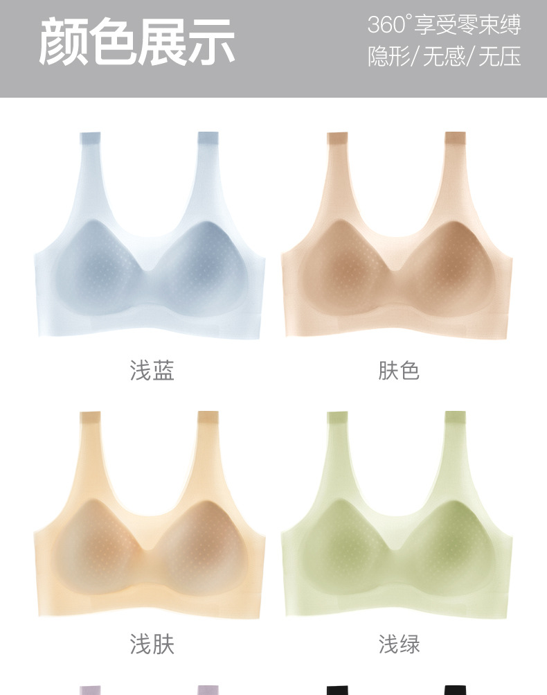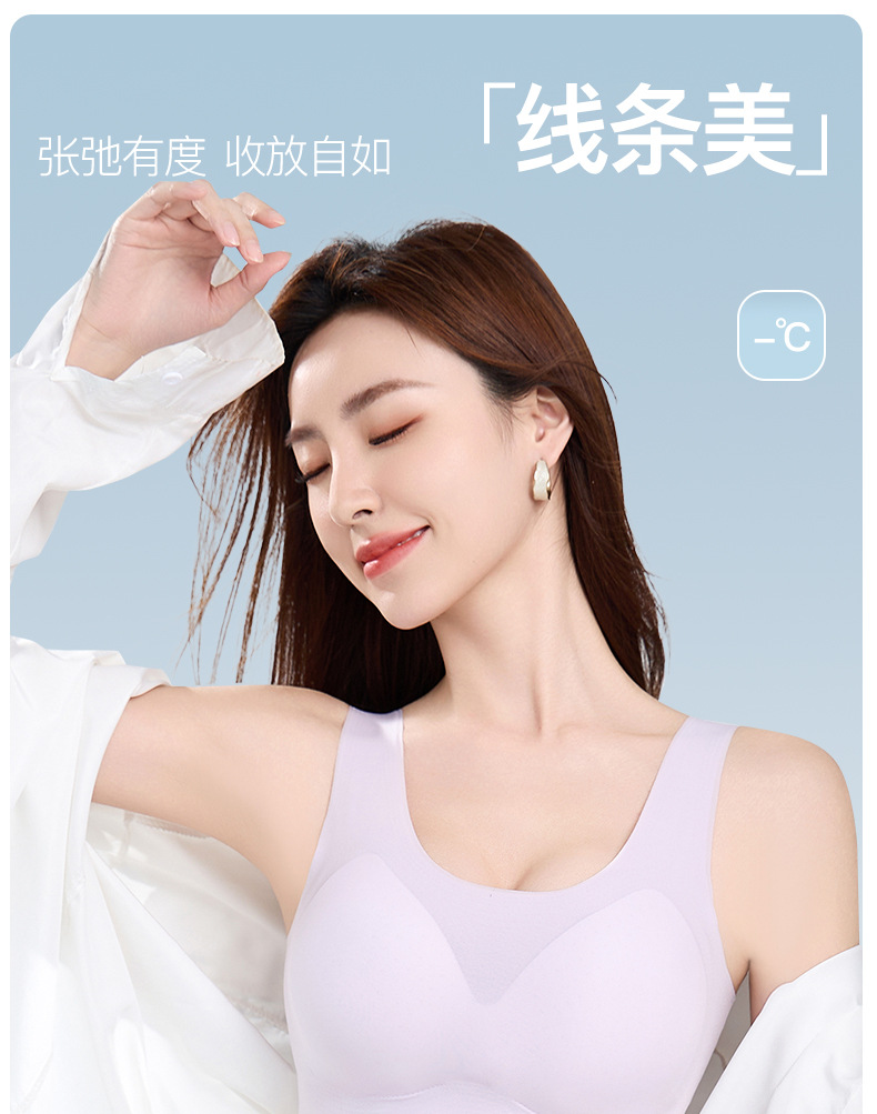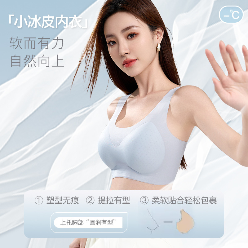 夏季超薄冰丝凉感无痕背心固定杯胸垫小胸聚拢透气无钢圈美背内衣