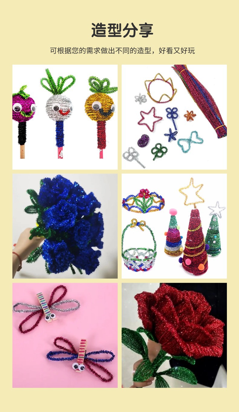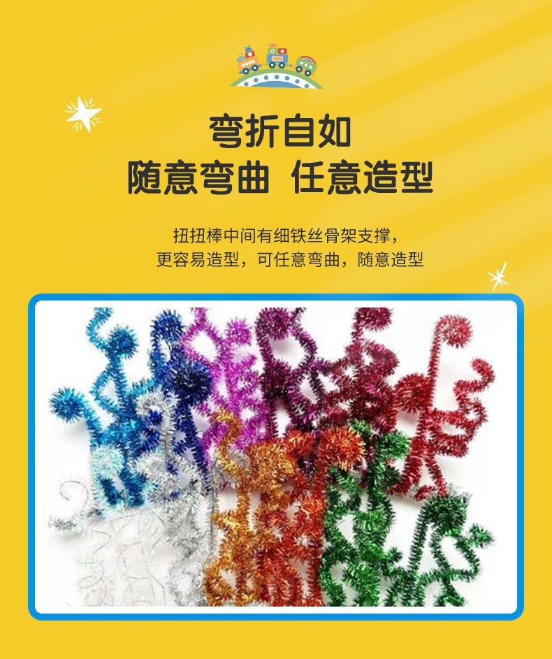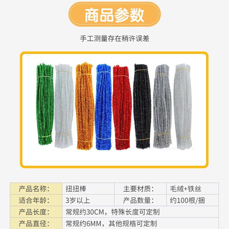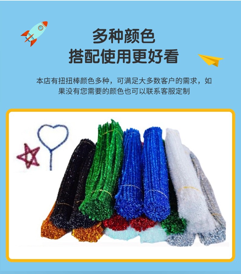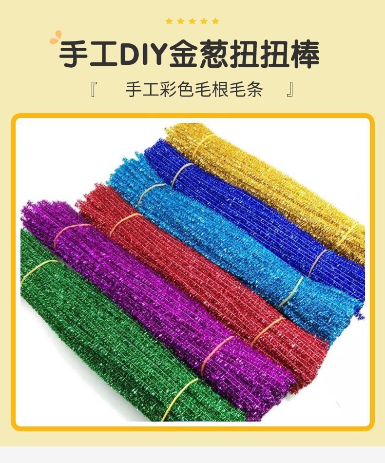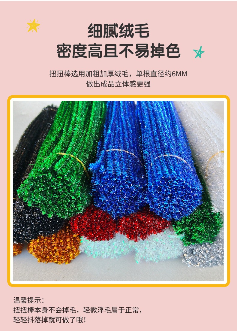 100根金葱闪光毛根扭扭棒 加密儿童炫彩DIY手工幼儿园扭扭棒毛条