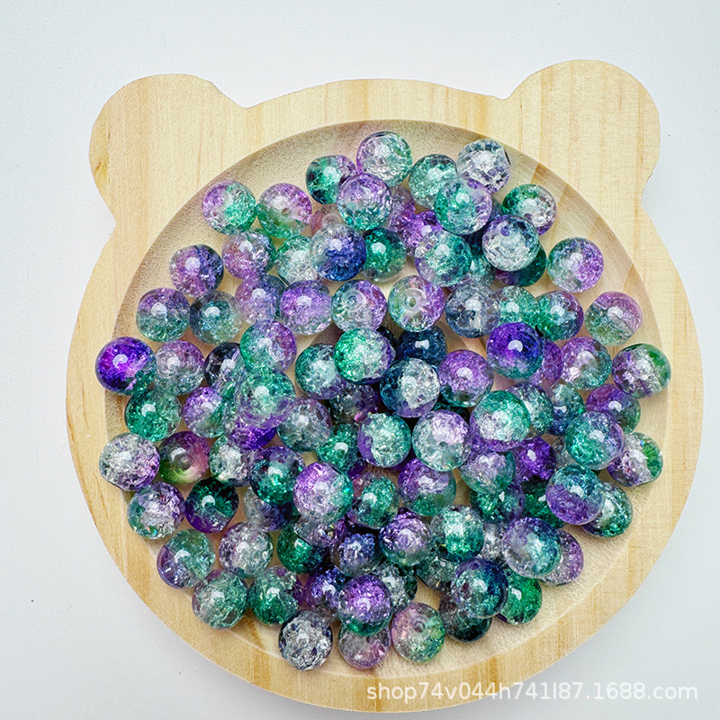 8mm琉璃珠爆花玻璃珠串珠手工散珠子手串饰品diy材料敦煌晶冰散批