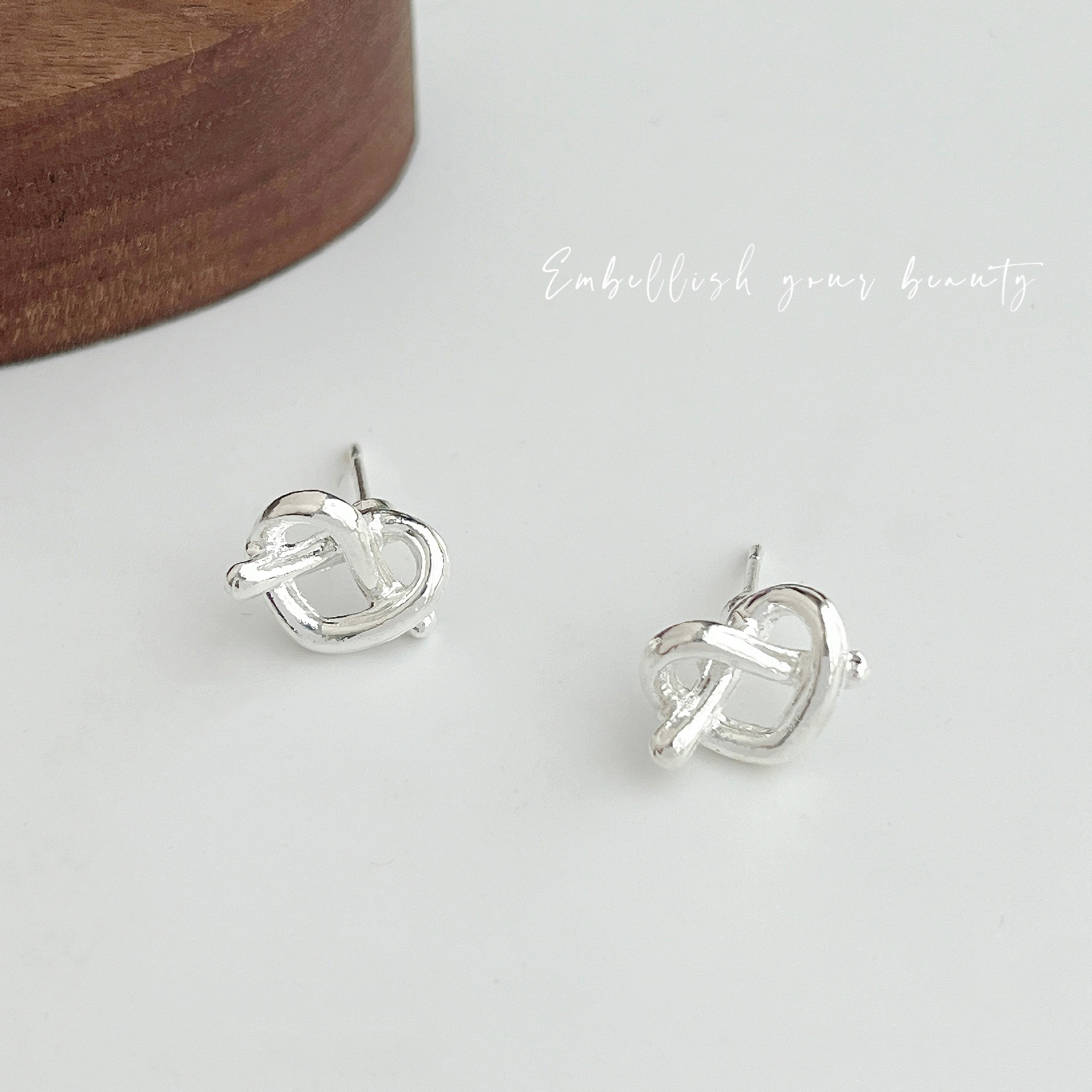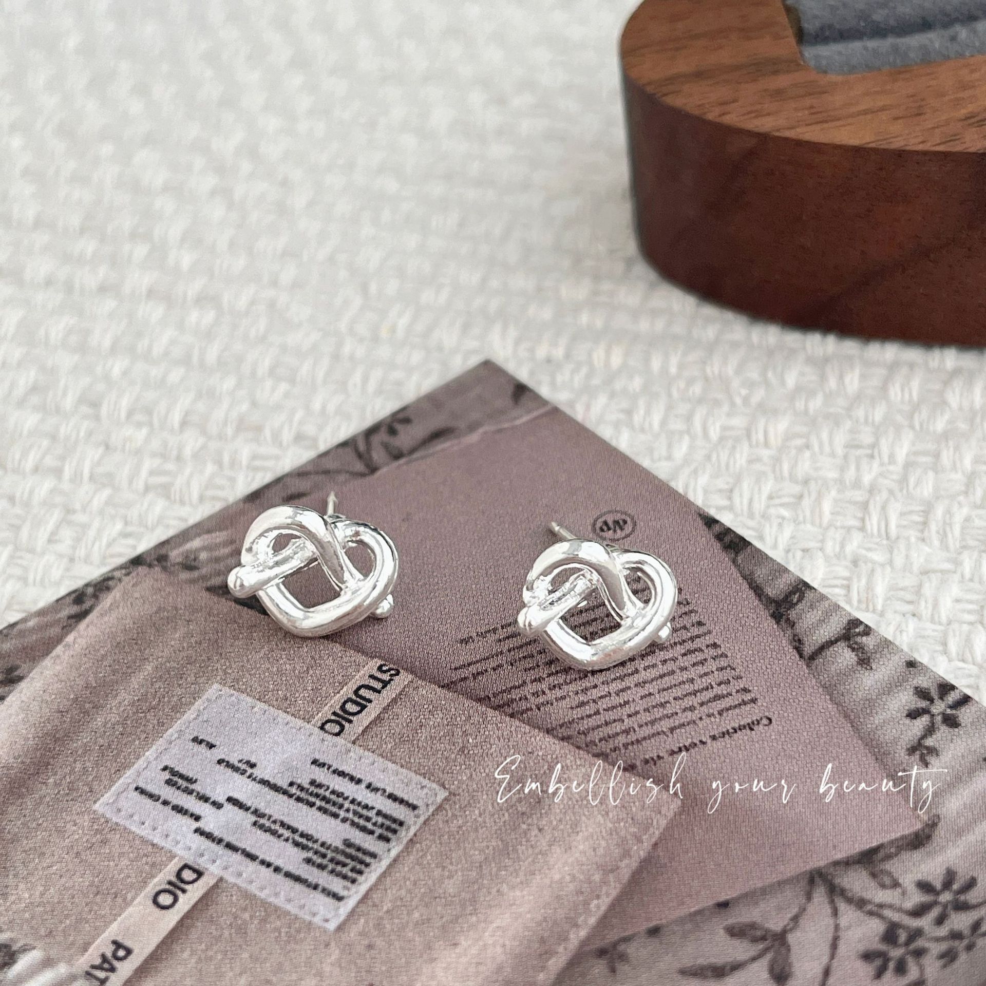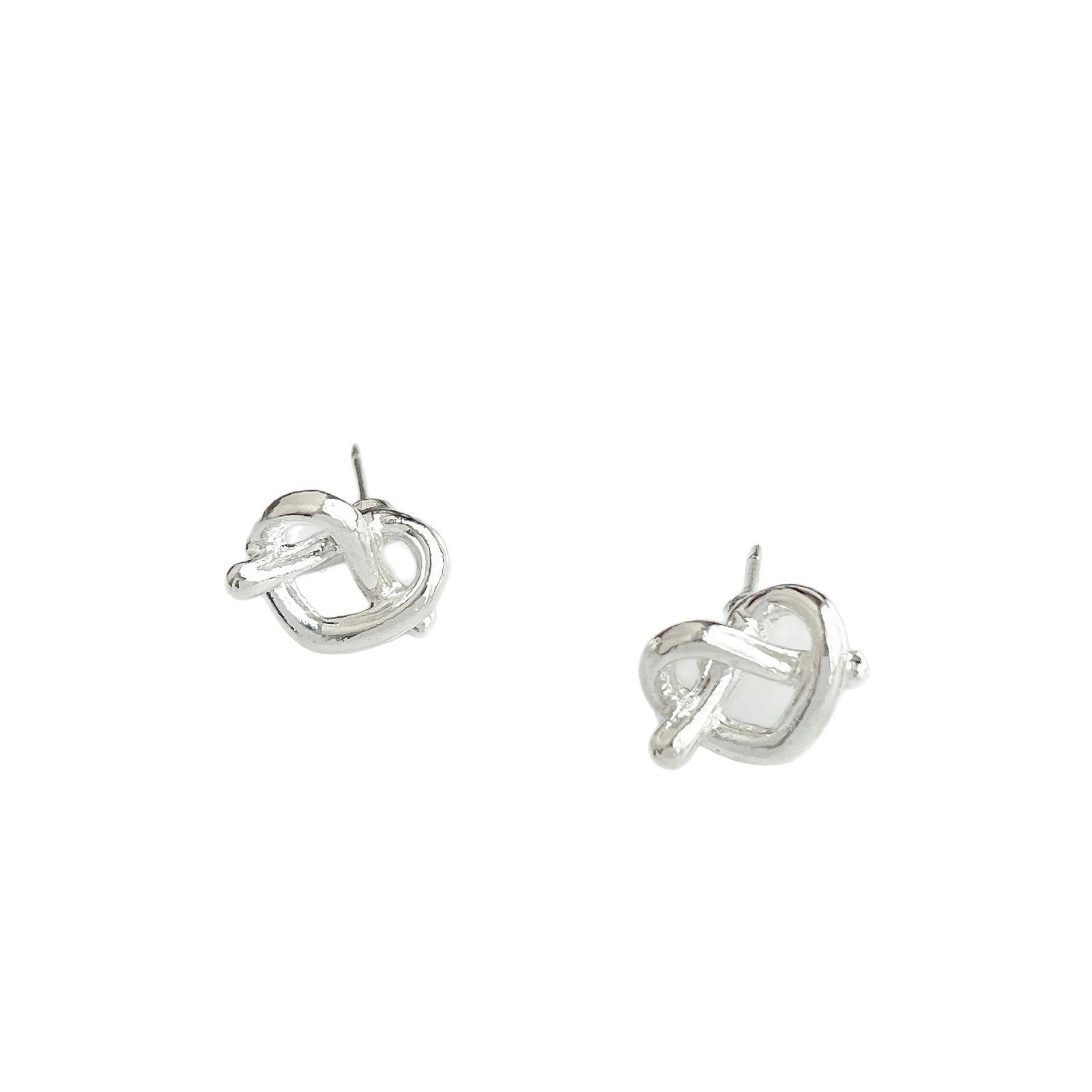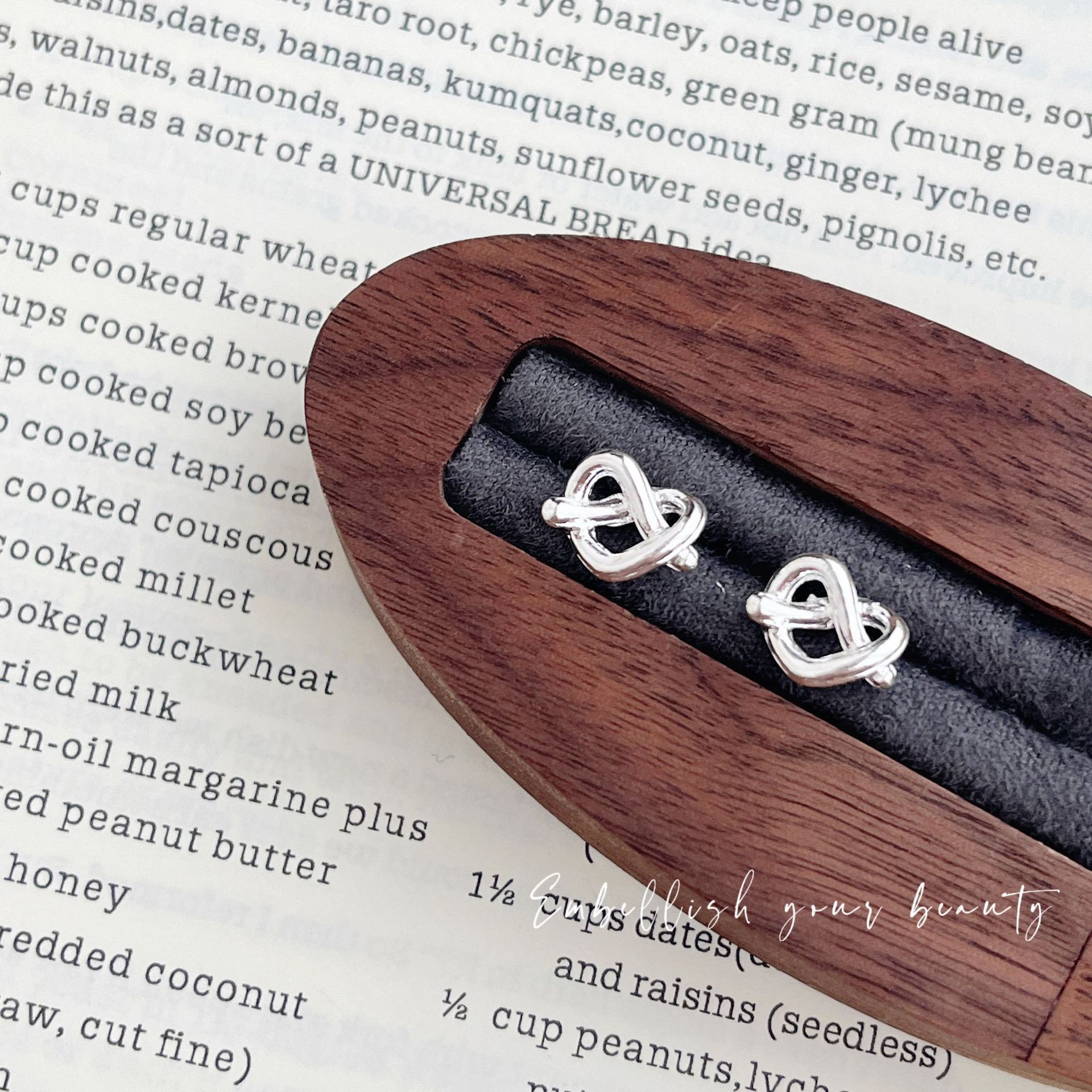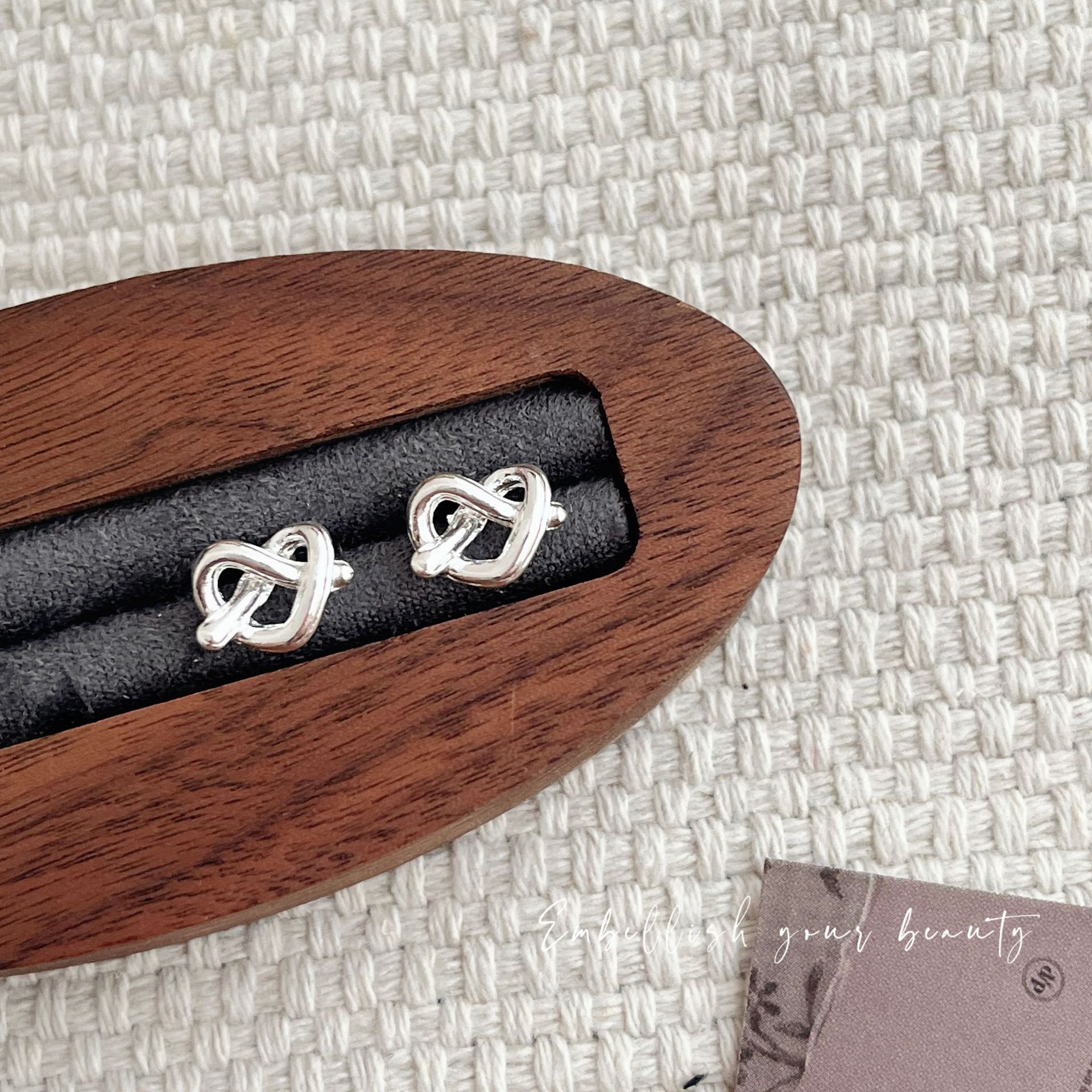 镂空爱心交叉耳女镶钻小巧精致打结爱心耳环法式迷你耳饰品百搭