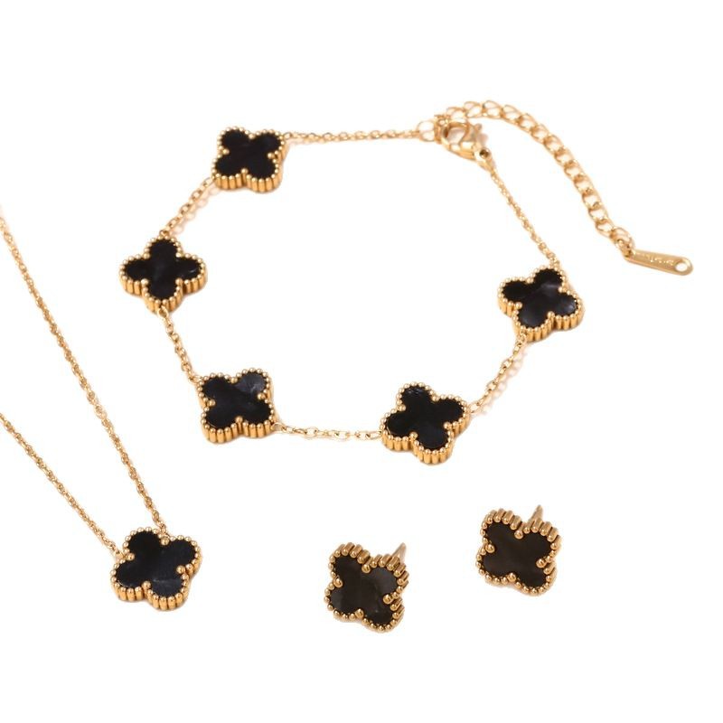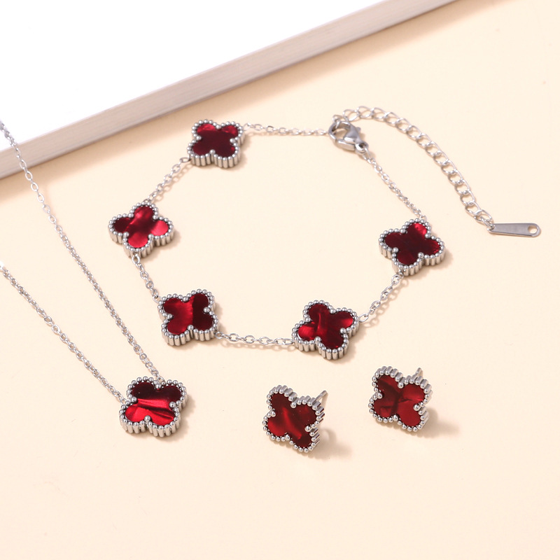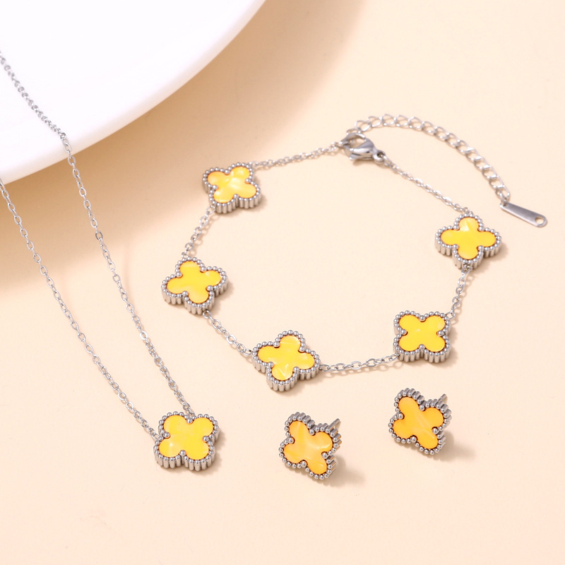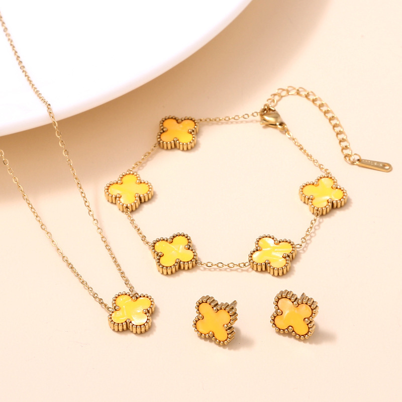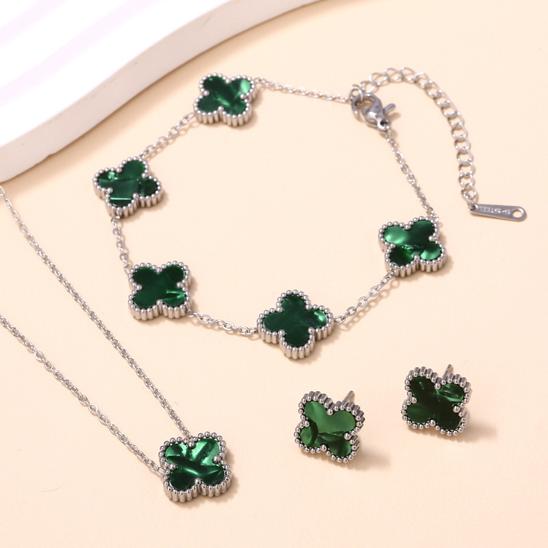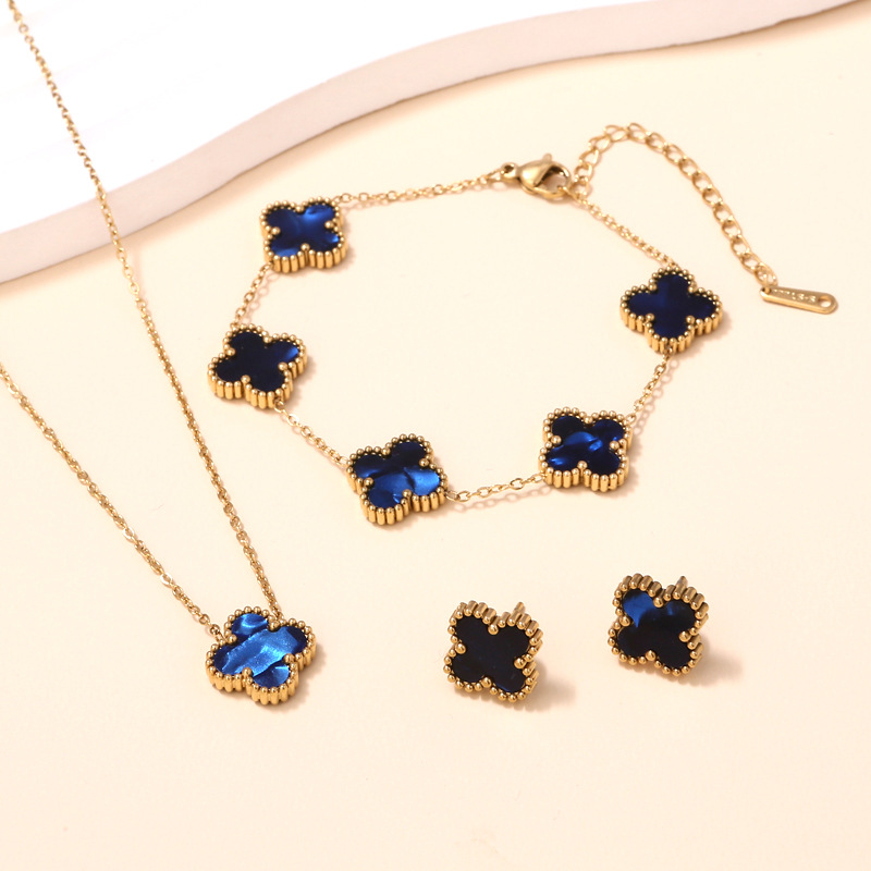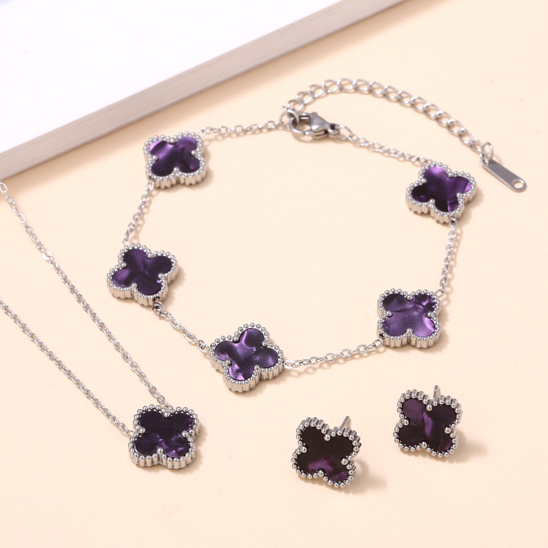 跨境【炫彩系列新款】双面四叶草饰品套装女简约百搭厂家批发
