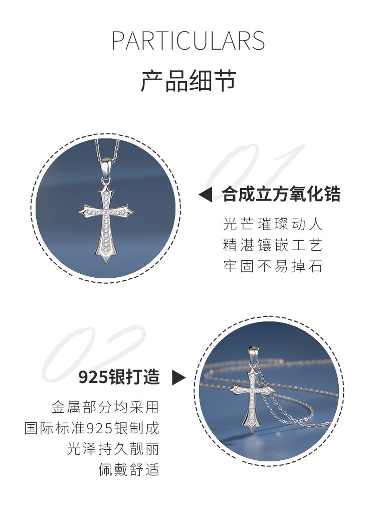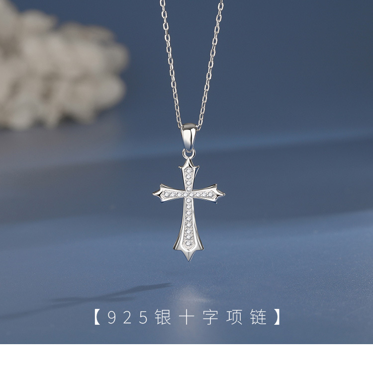 亚马逊跨境925纯银十字架项链女秋冬欧美饰品简约吊坠锁骨链颈链