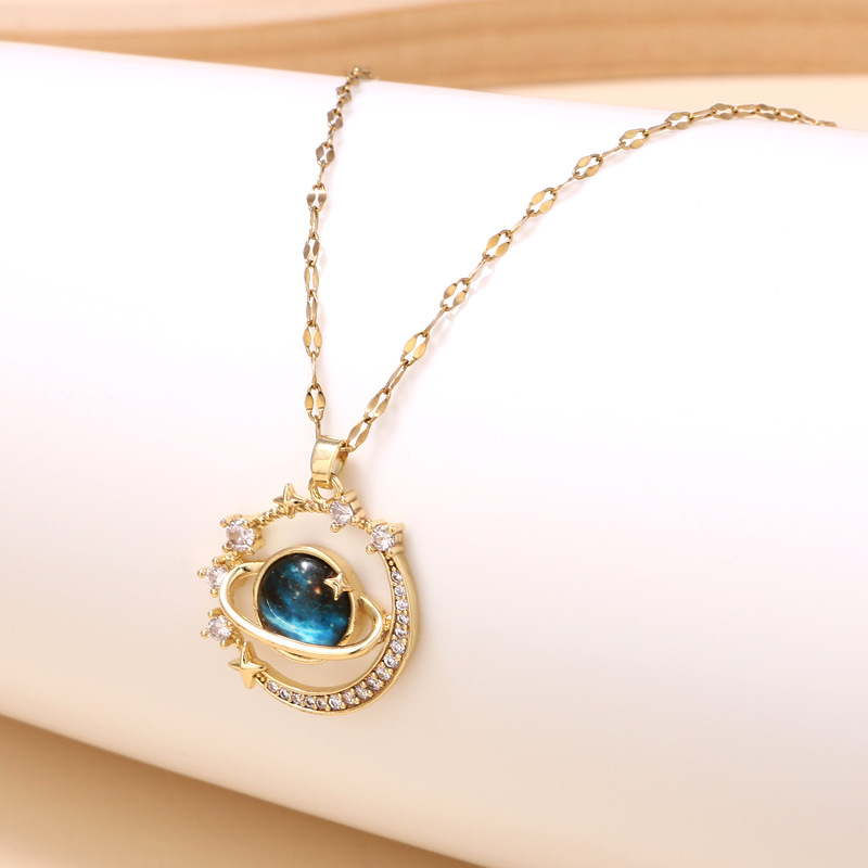 跨境蓝色星球项链饰品女简约高级感时尚钛钢锁骨链不掉色颈链批发