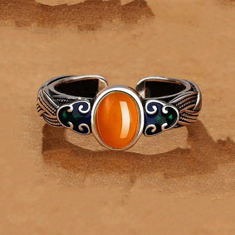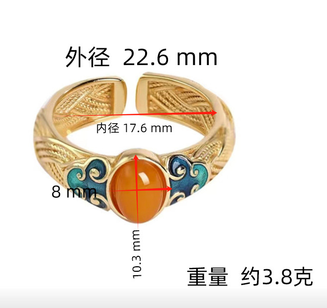 古风款祥云仿蜜蜡戒指女古法金宫廷风复古珐琅开口指环母亲节礼物
