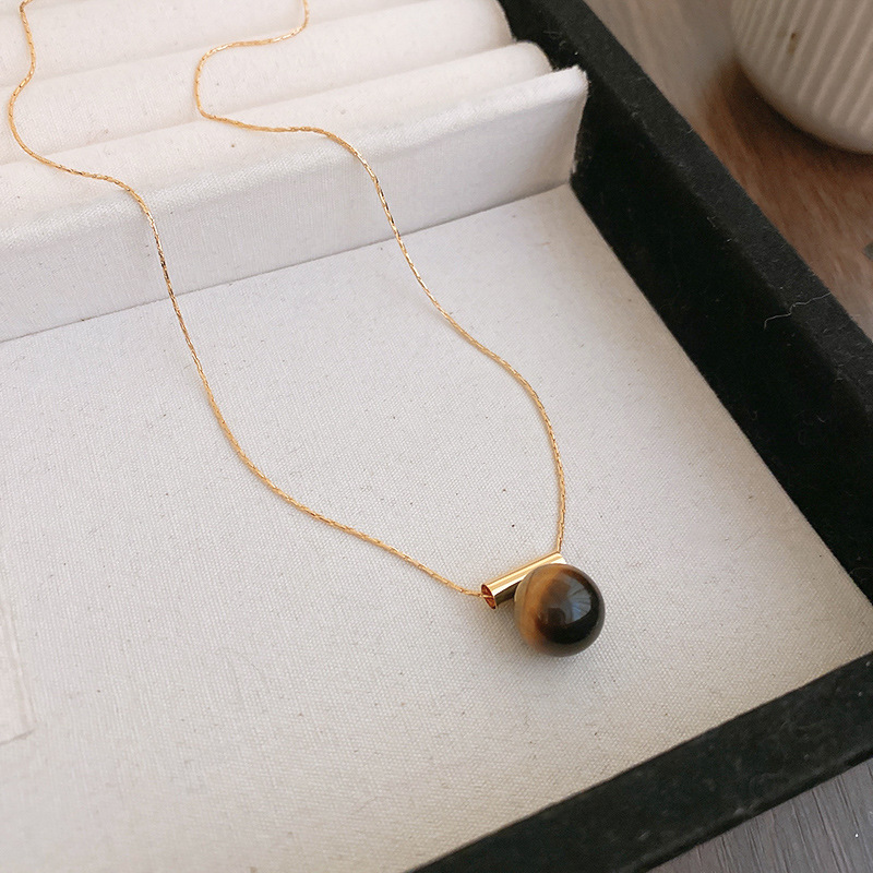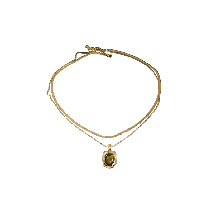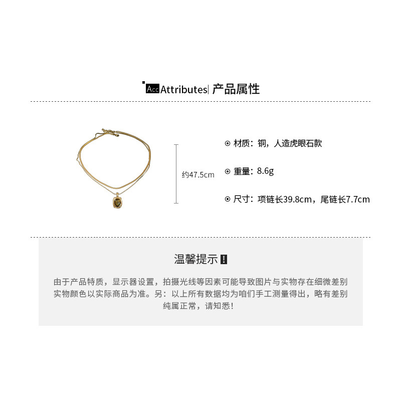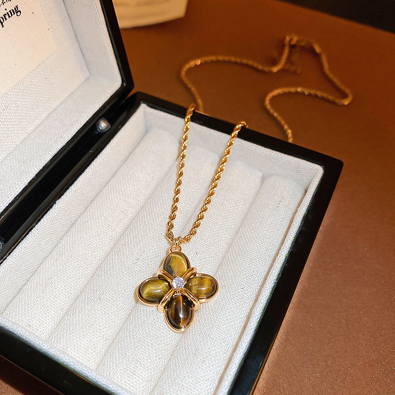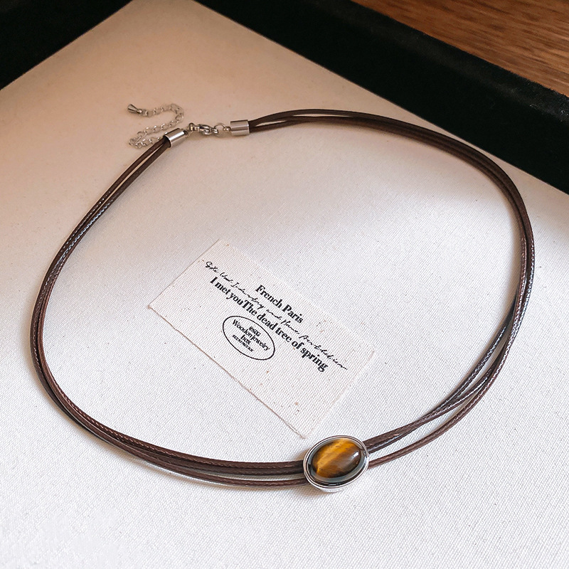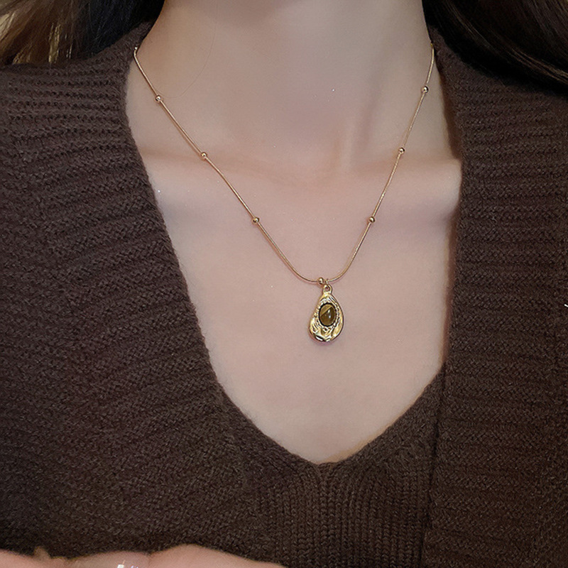秋冬复古花朵圆形人造虎眼石款项链高级感毛衣链轻奢小众卫衣项饰