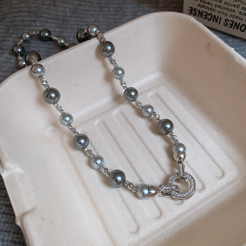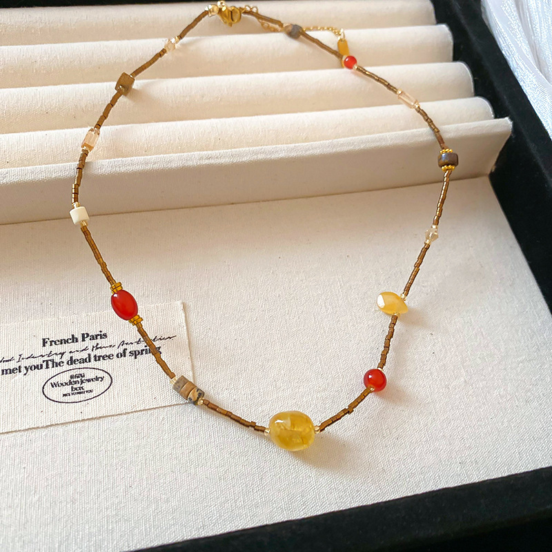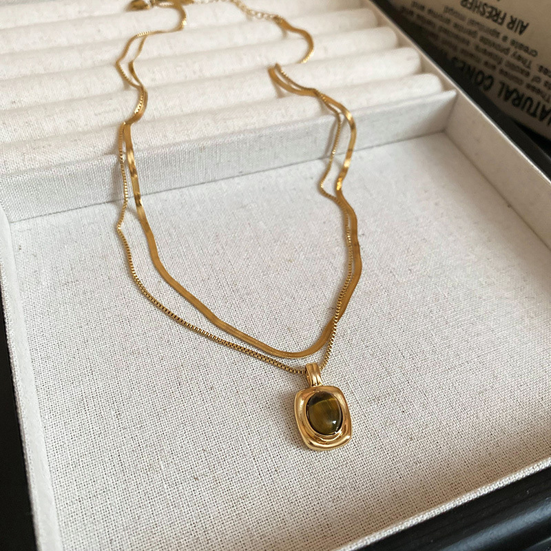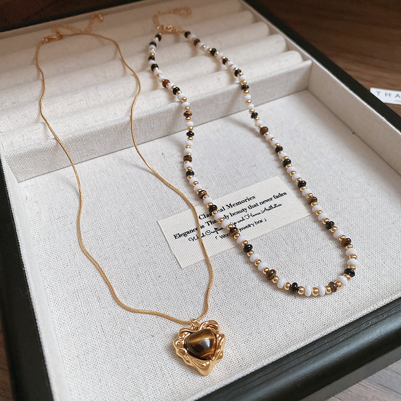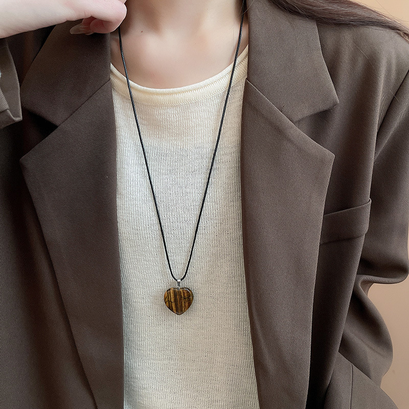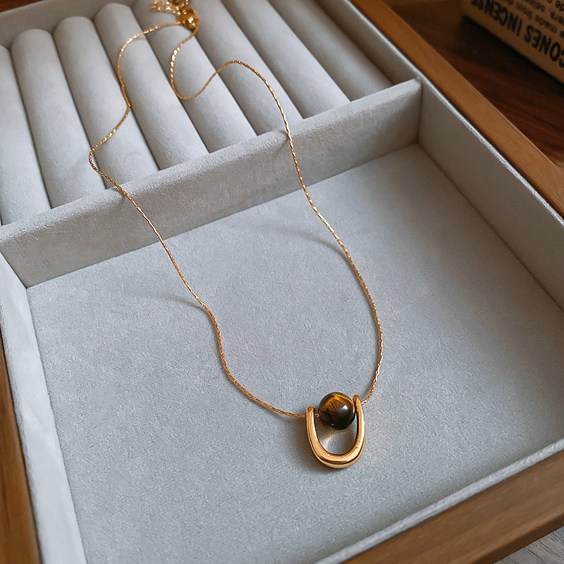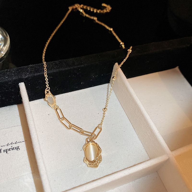 秋冬复古花朵圆形人造虎眼石款项链高级感毛衣链轻奢小众卫衣项饰
