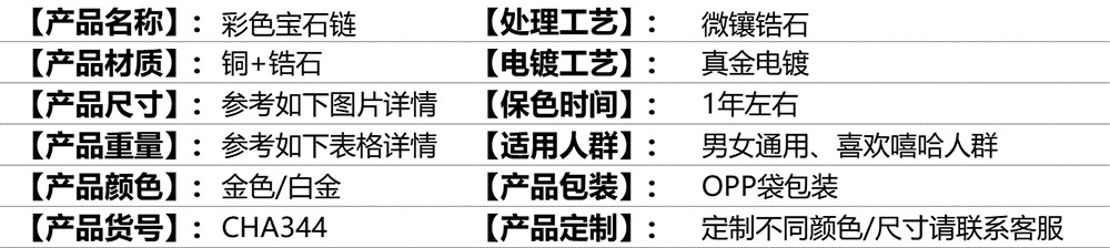 欧美跨境彩色宝石珠宝项链嘻哈饰品潮流百搭配饰男士项链饰品批发