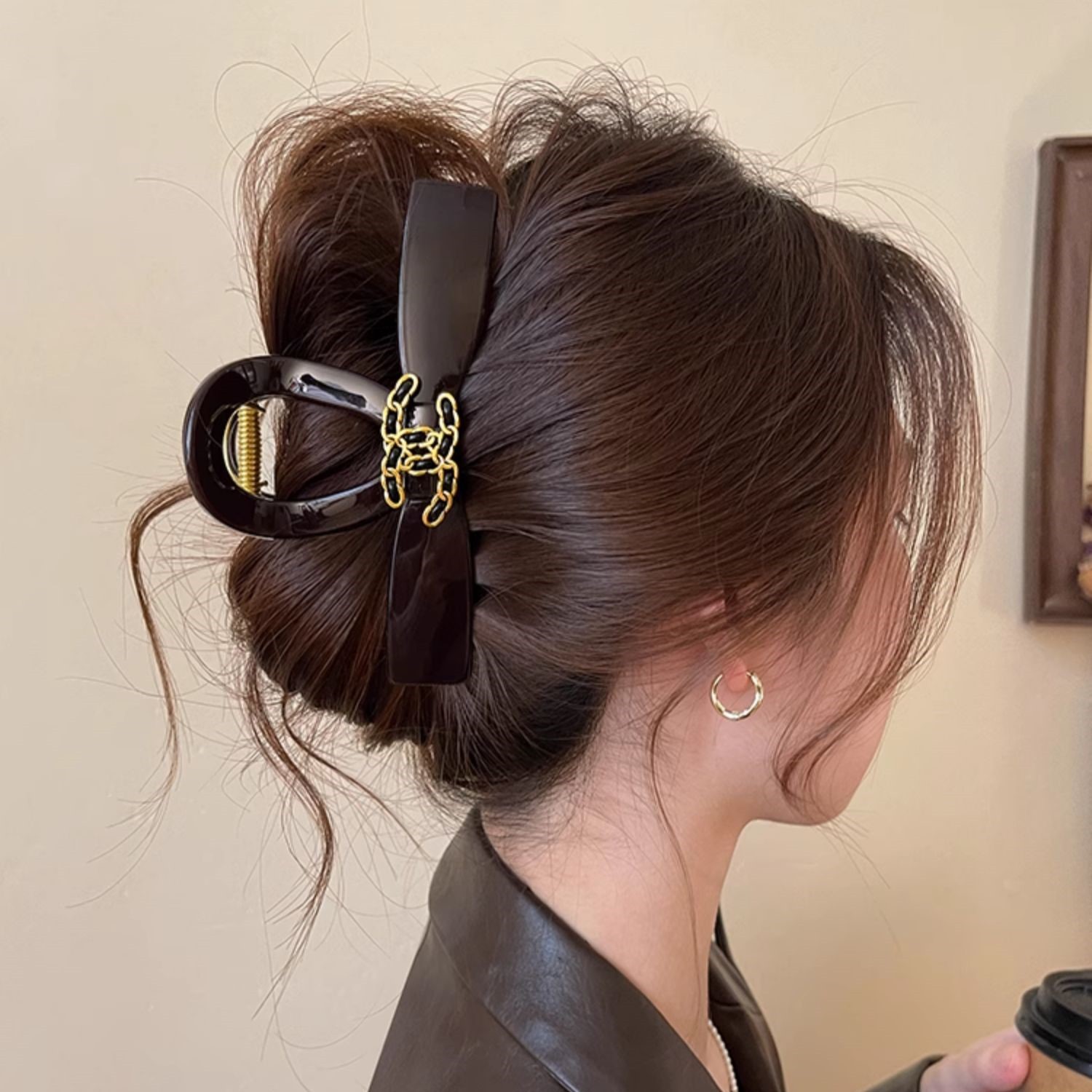 秋冬高端小香风抓夹女2024新款高级感后脑勺发夹鲨鱼夹发量多发饰