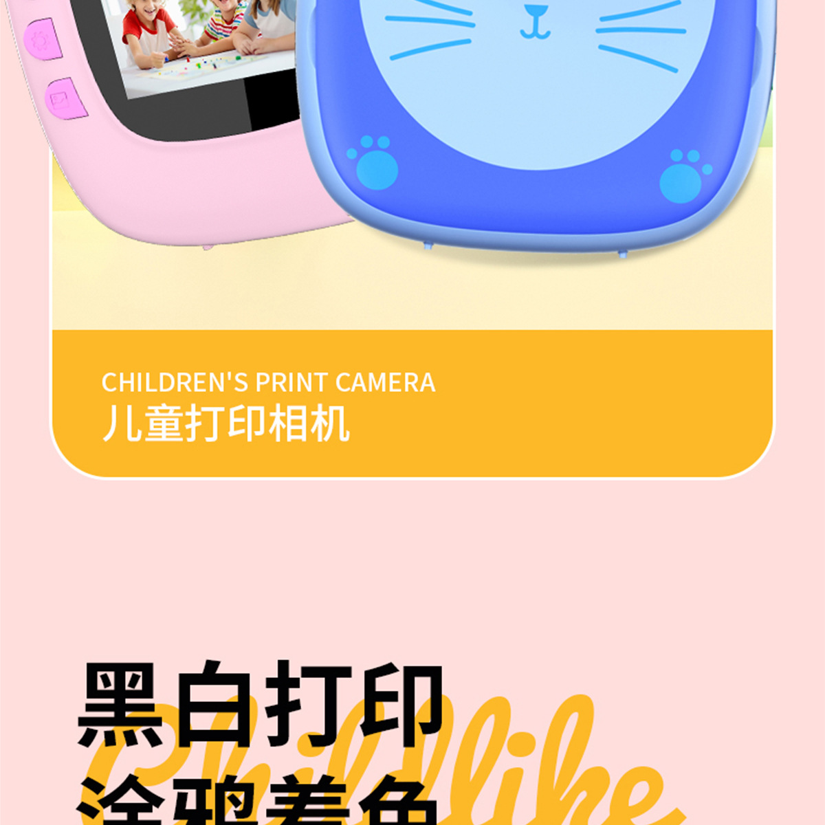 新款私模儿童拍立得打印照相机卡通数码迷你高清益智玩具代发支持