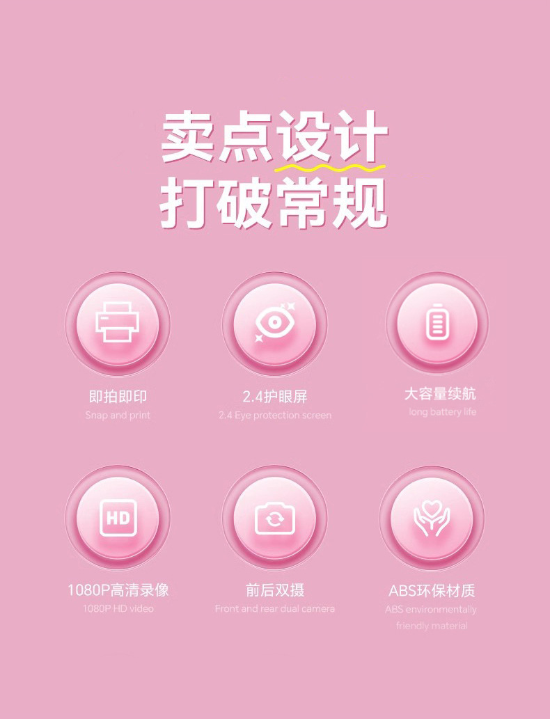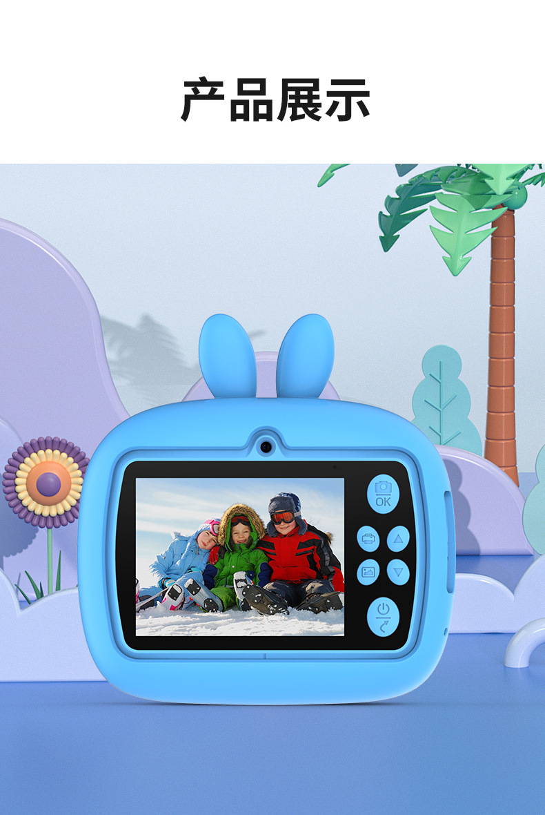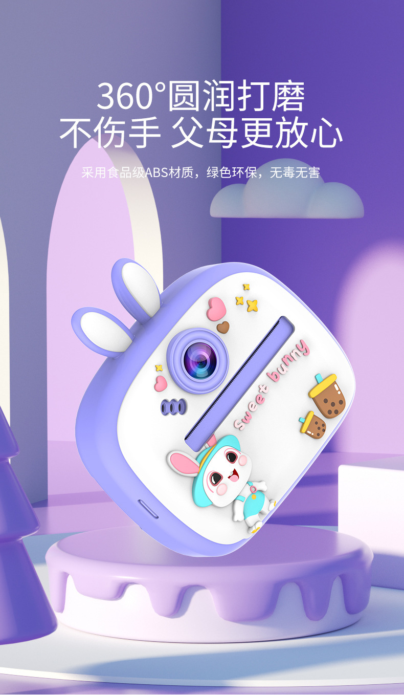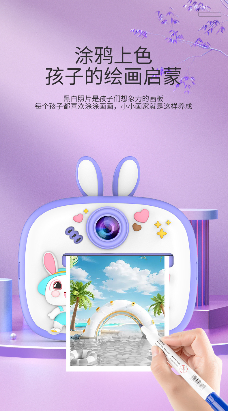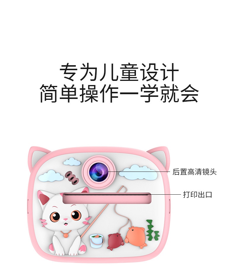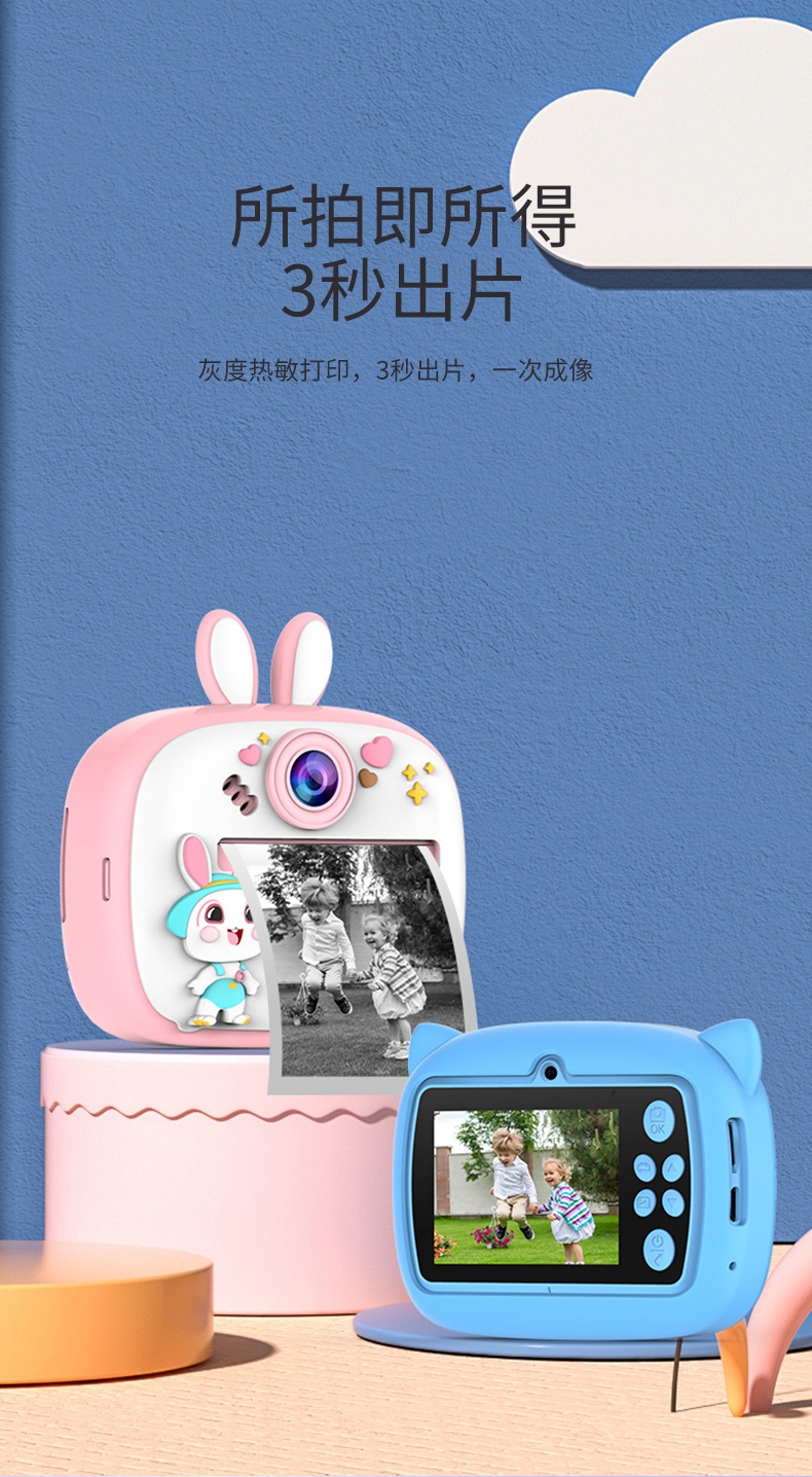 跨境新款儿童相机拍立得打印机高清前后双摄头可拍照可打印可录视