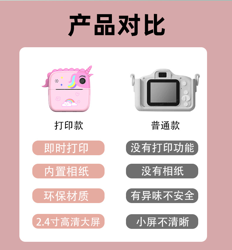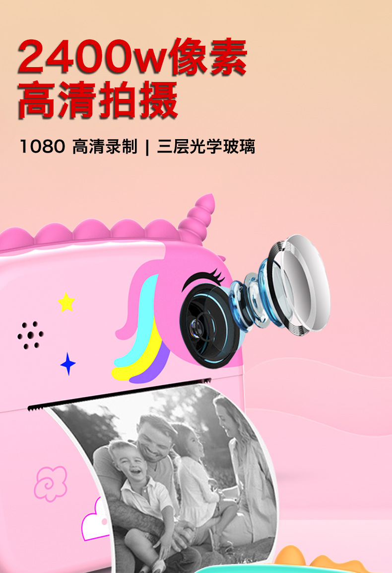 跨境新款儿童拍立得打印数码相机高清单反双镜头拍摄照相机玩具批