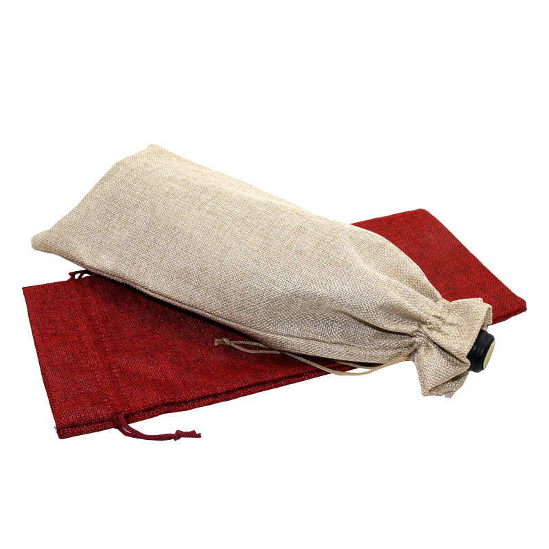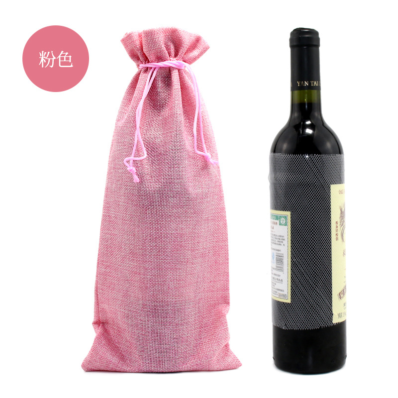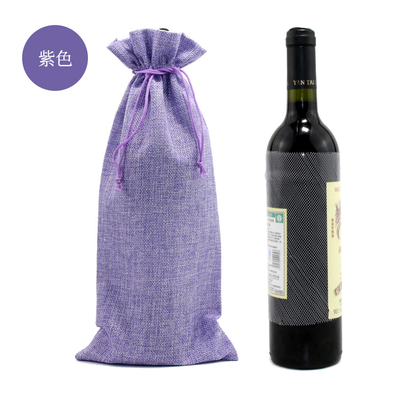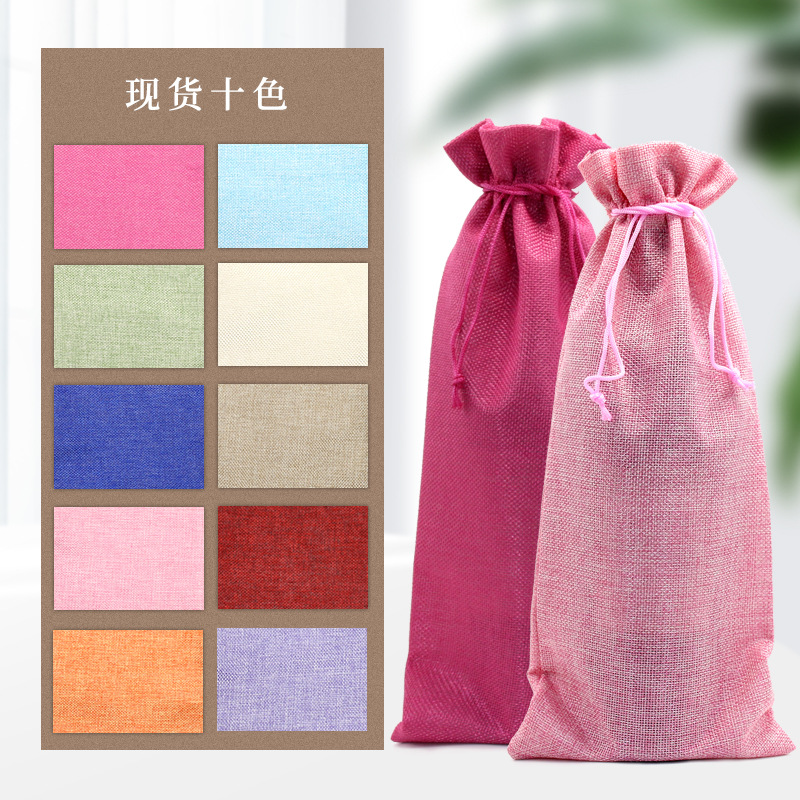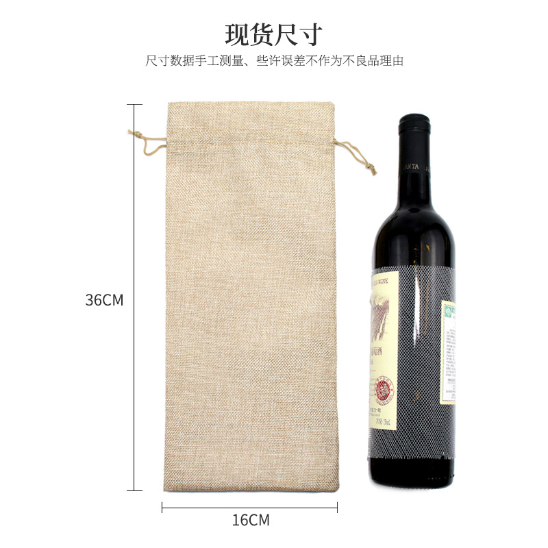 亚马逊热销 抽绳 麻布红酒袋套装吊牌 红酒包装袋 麻布束口袋现货
