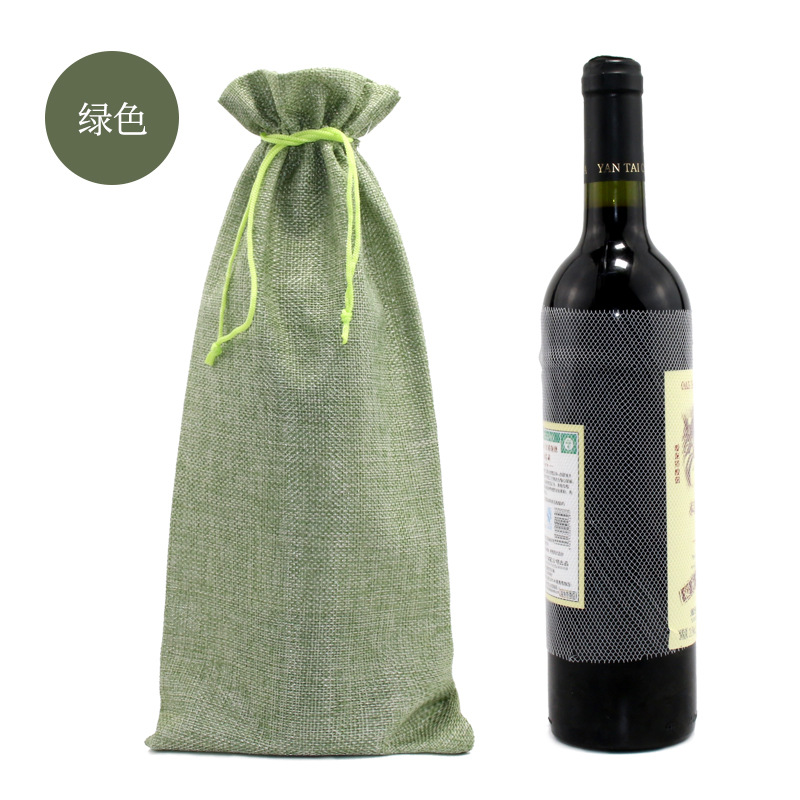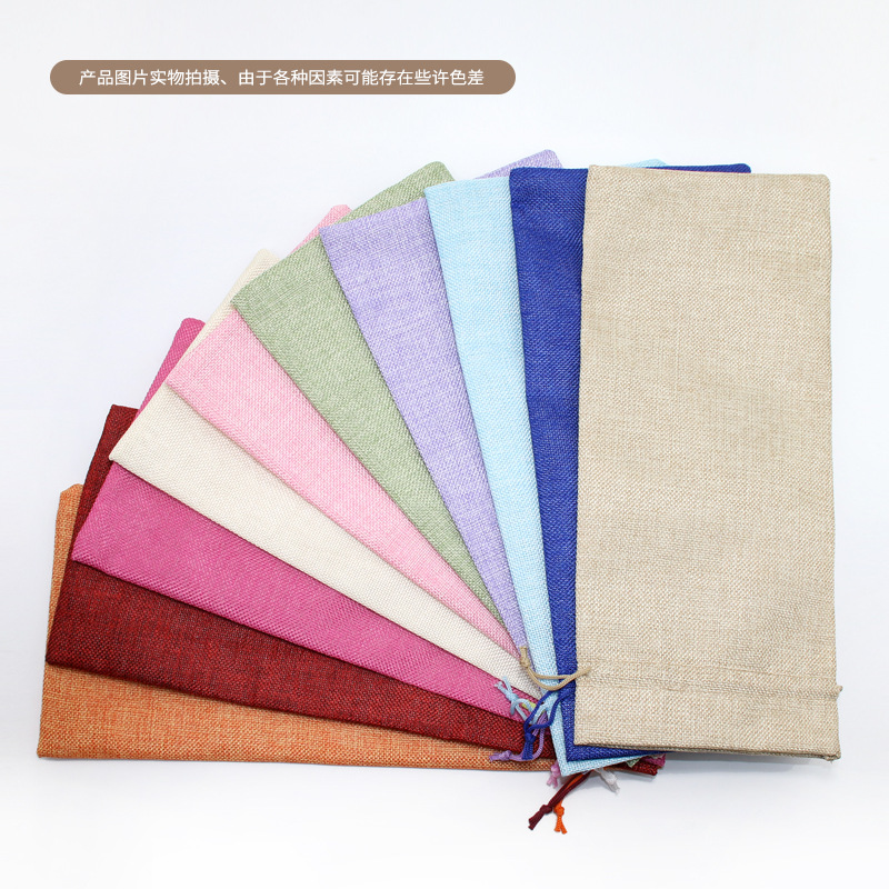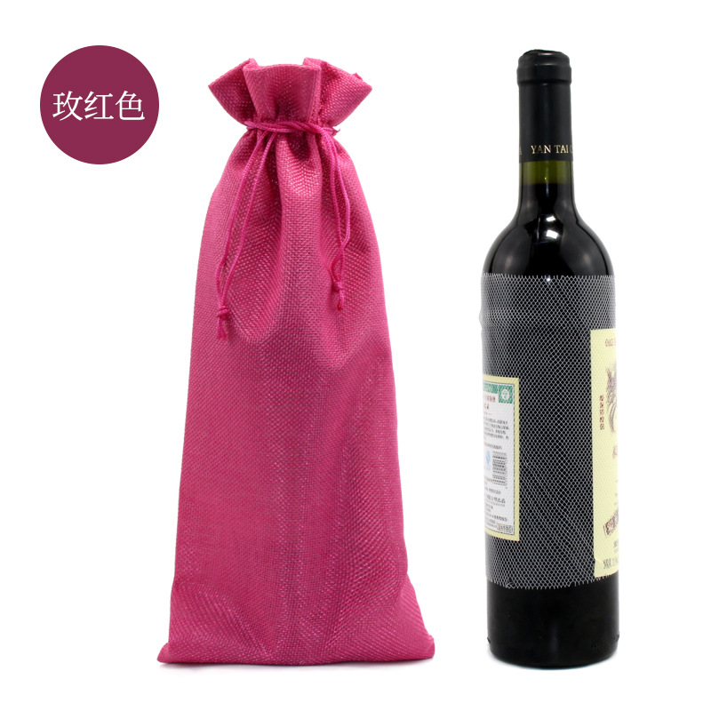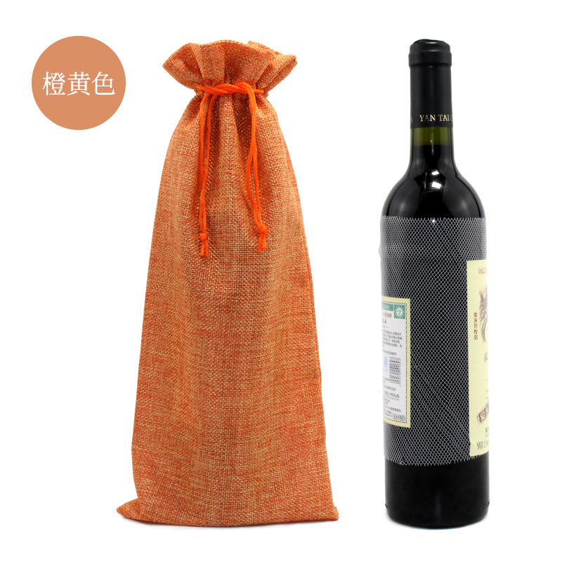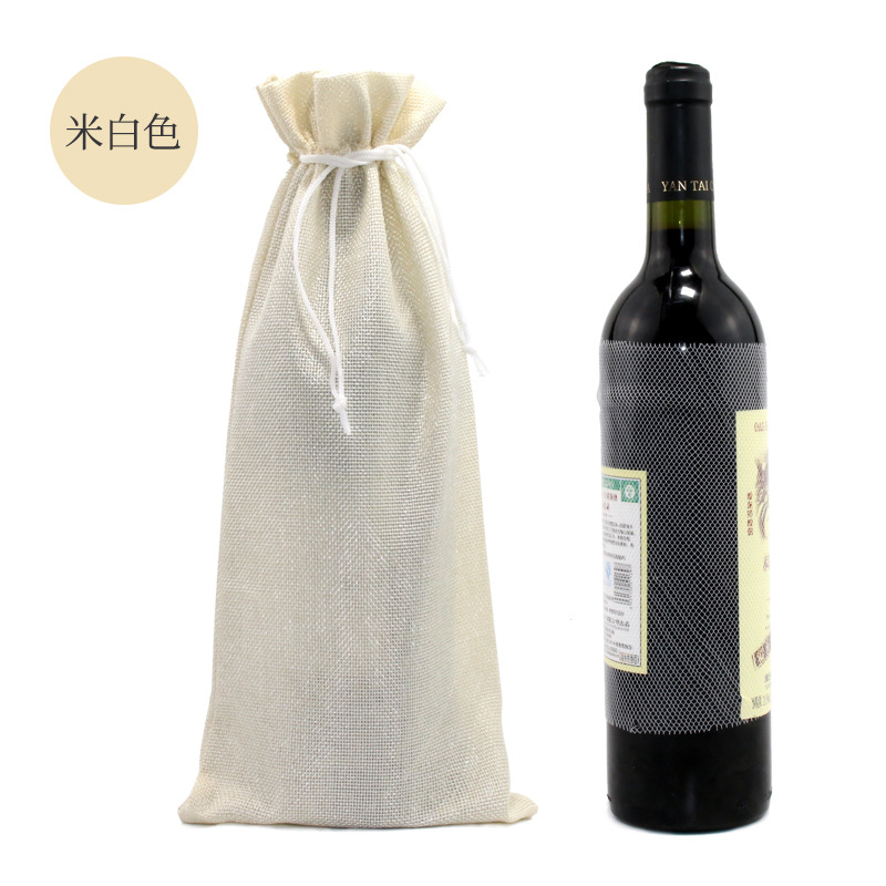 亚马逊热销 抽绳 麻布红酒袋套装吊牌 红酒包装袋 麻布束口袋现货