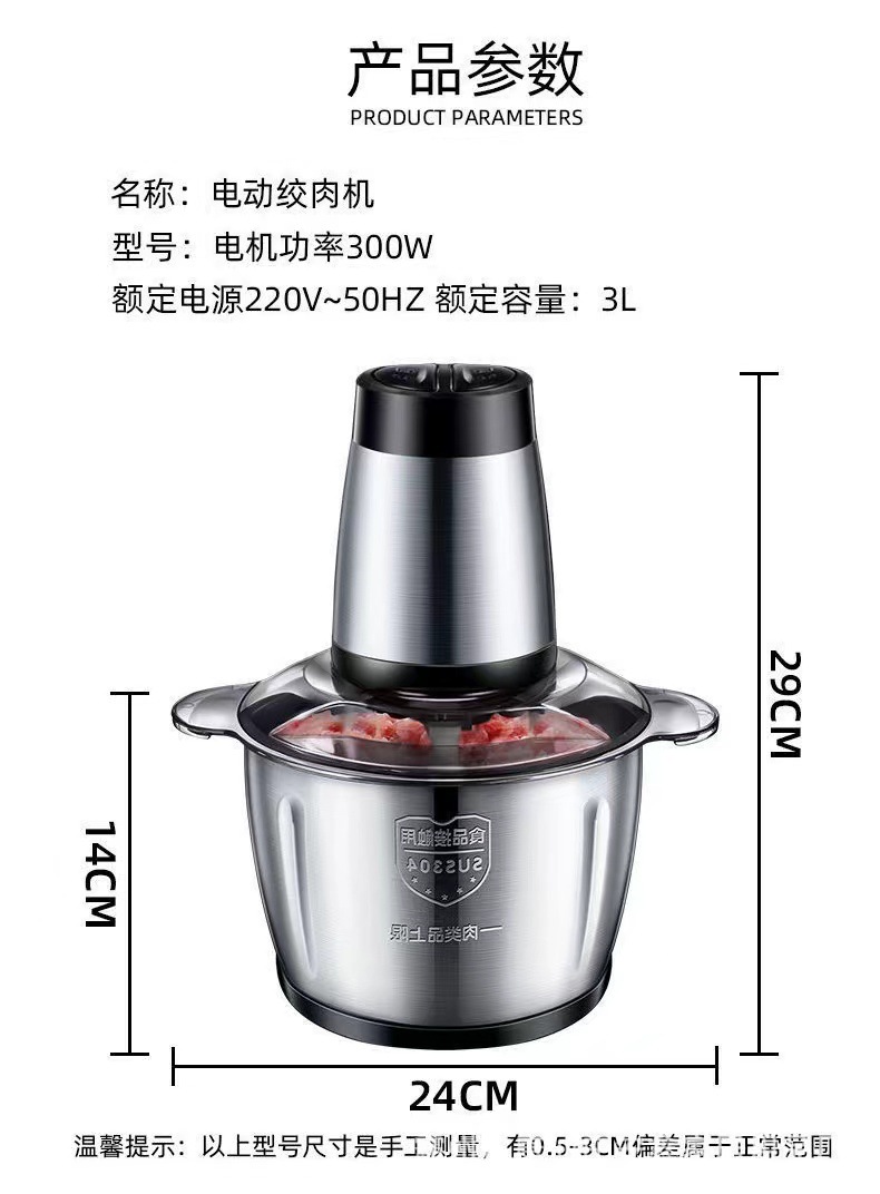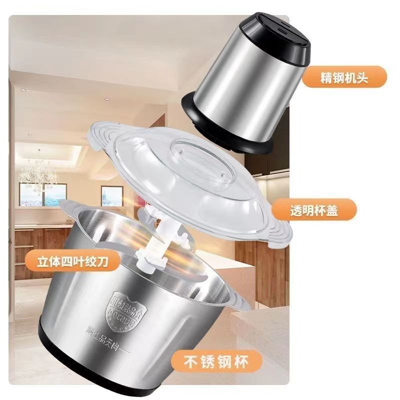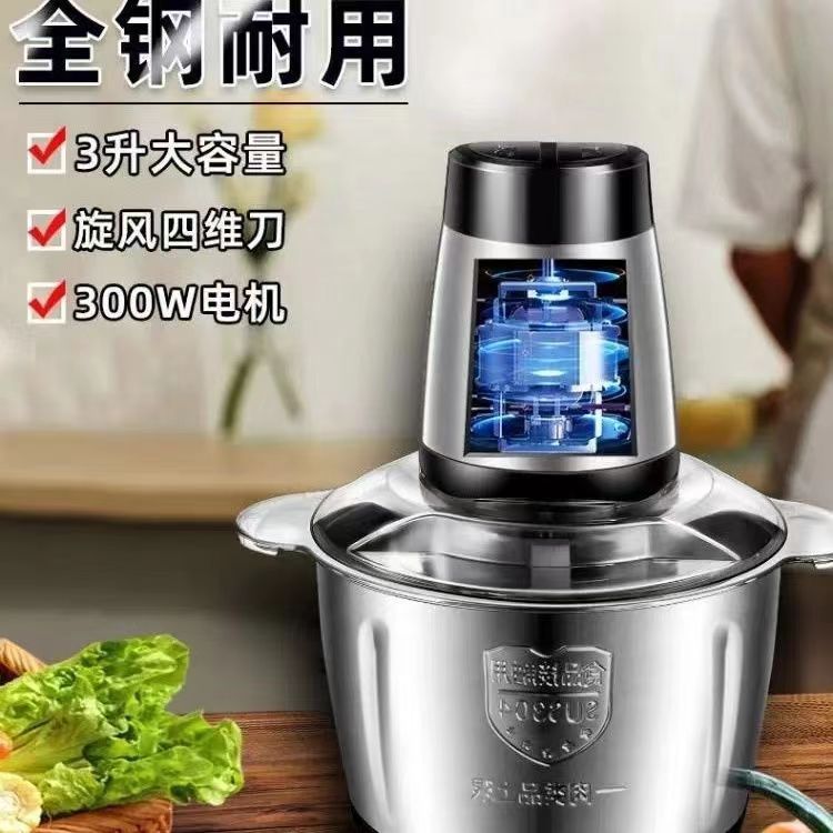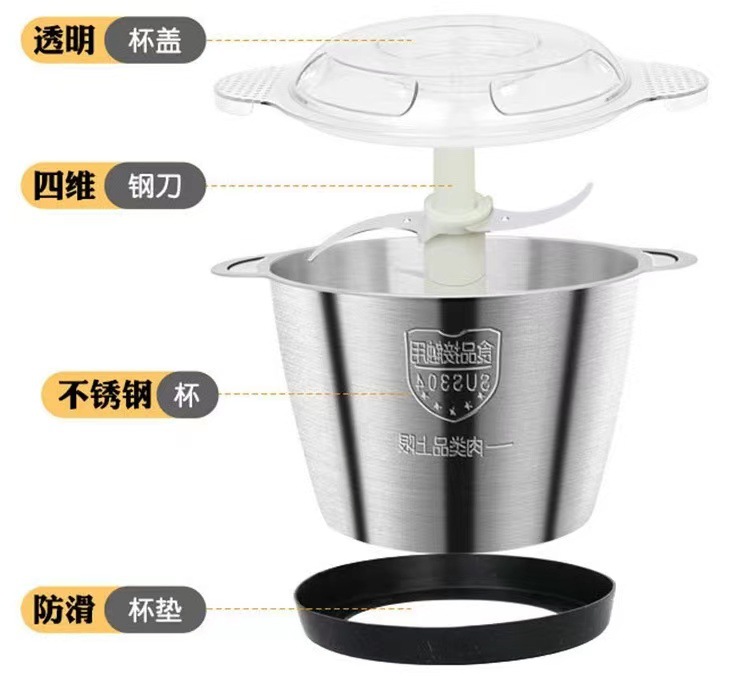 跨境多功能不锈钢绞肉机家用大功率大容量全自动搅陷料理器搅蒜机