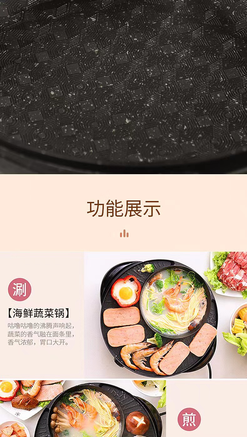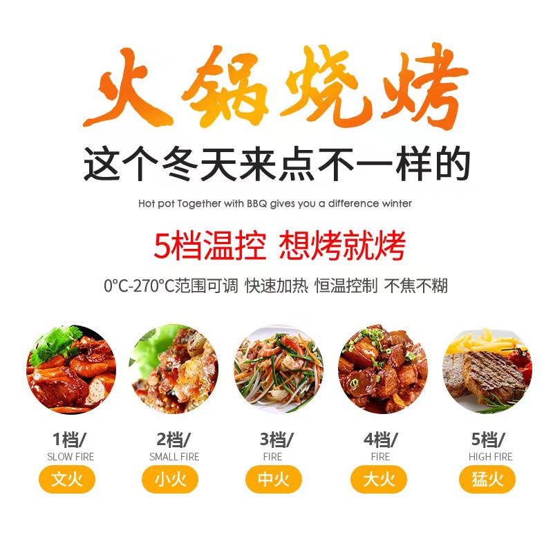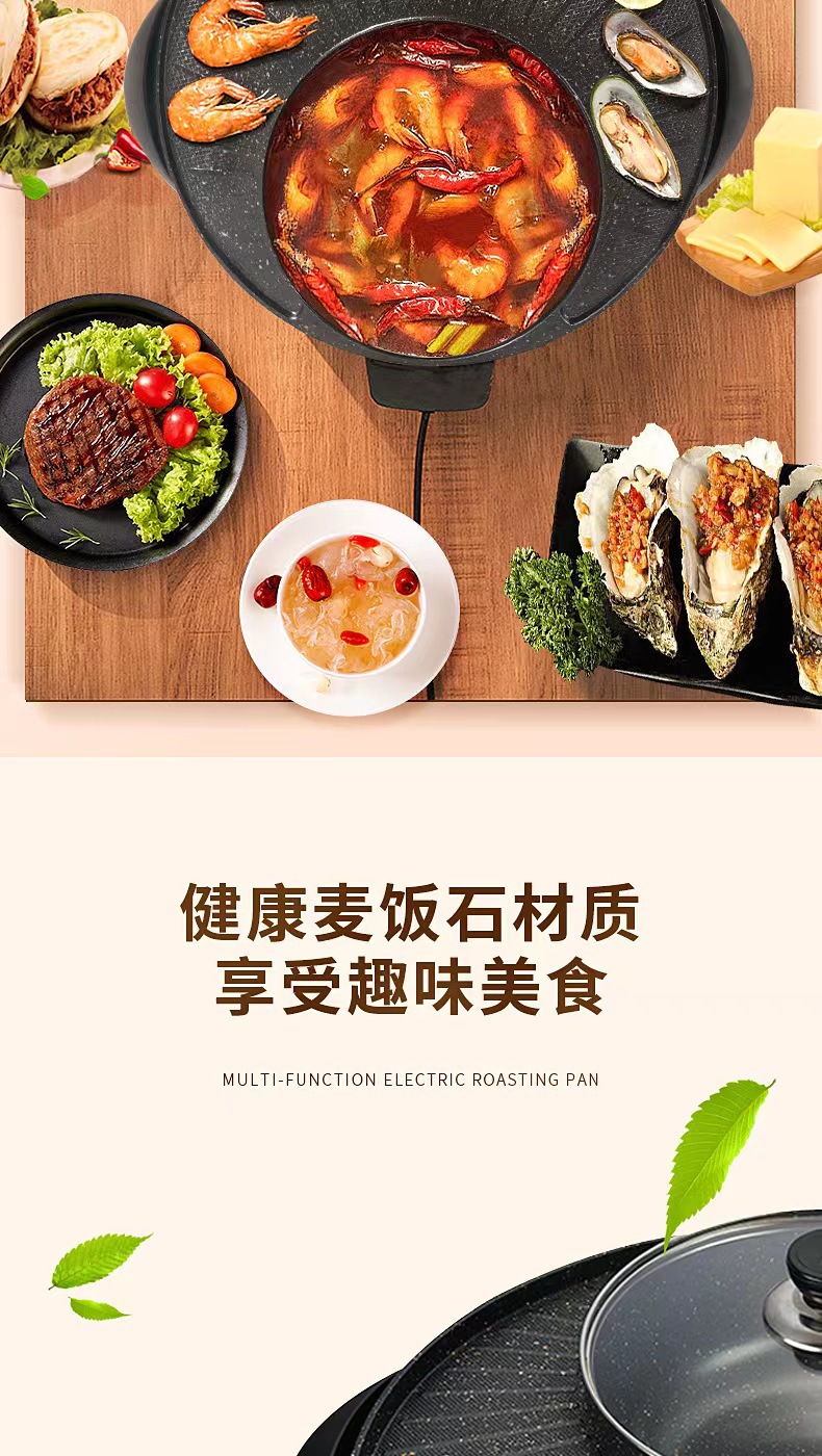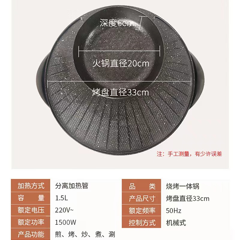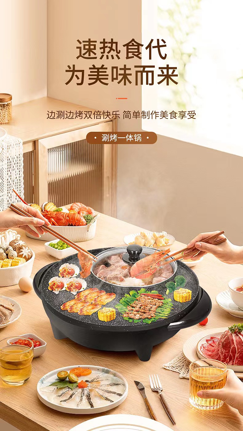 跨境110v涮烤一体锅多功能家用宿舍电热火锅电烤盘专用大锅不粘锅