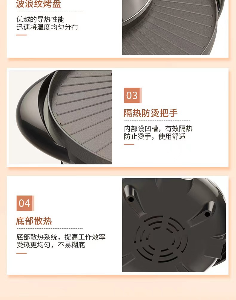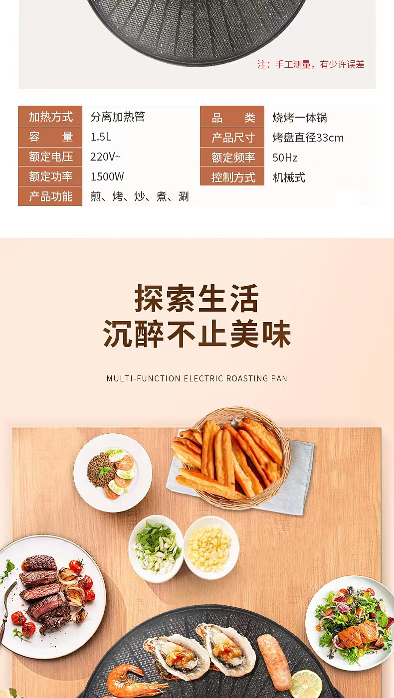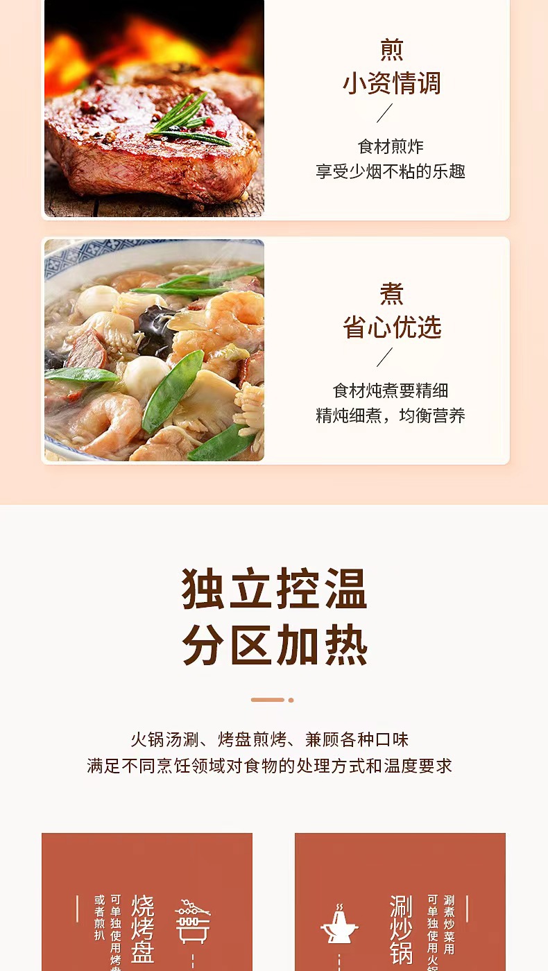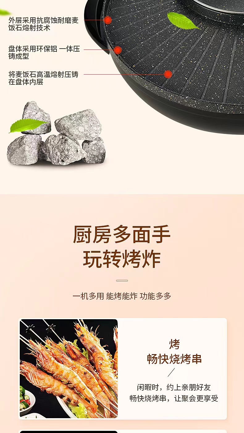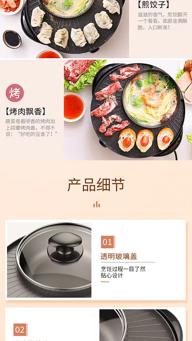 跨境110v涮烤一体锅多功能家用宿舍电热火锅电烤盘专用大锅不粘锅