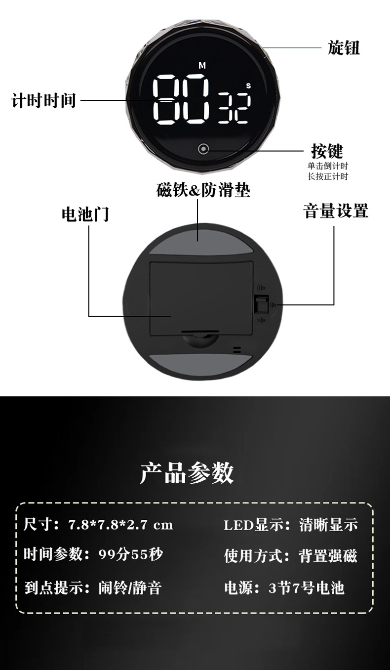 【现货】跨境旋转轮胎计时器圆形磁吸厨房定时器训练学习定时器烘