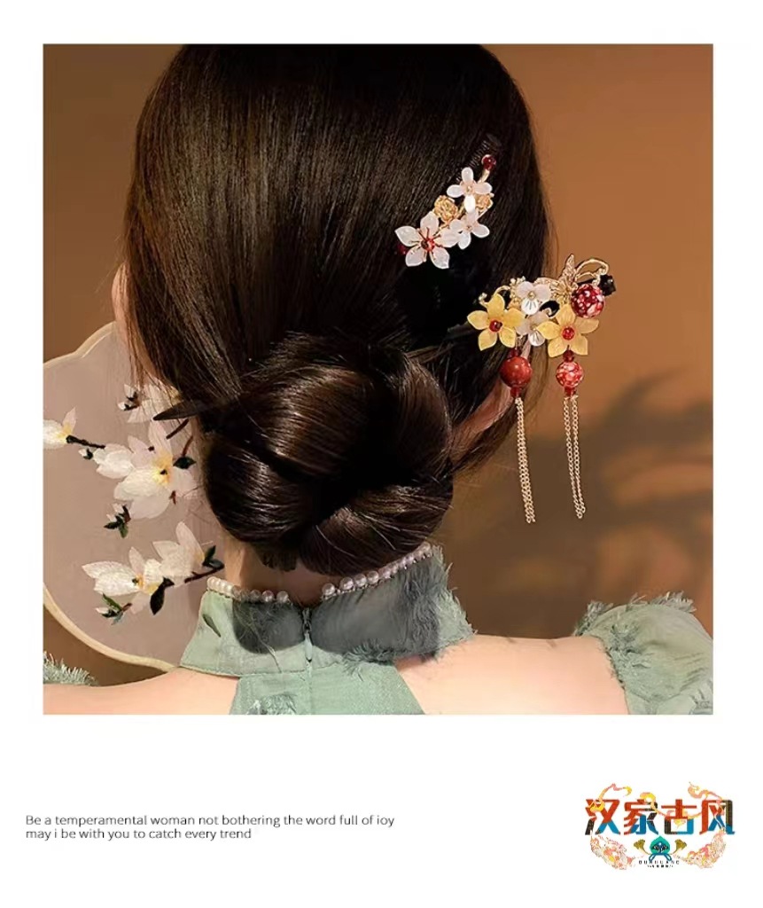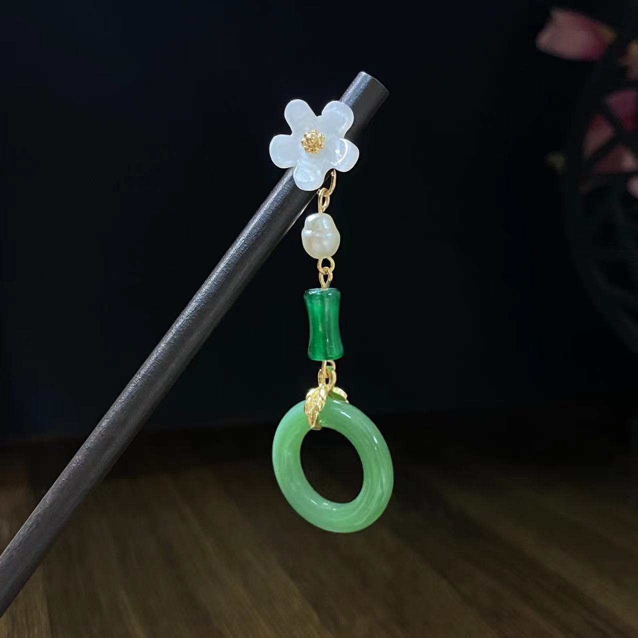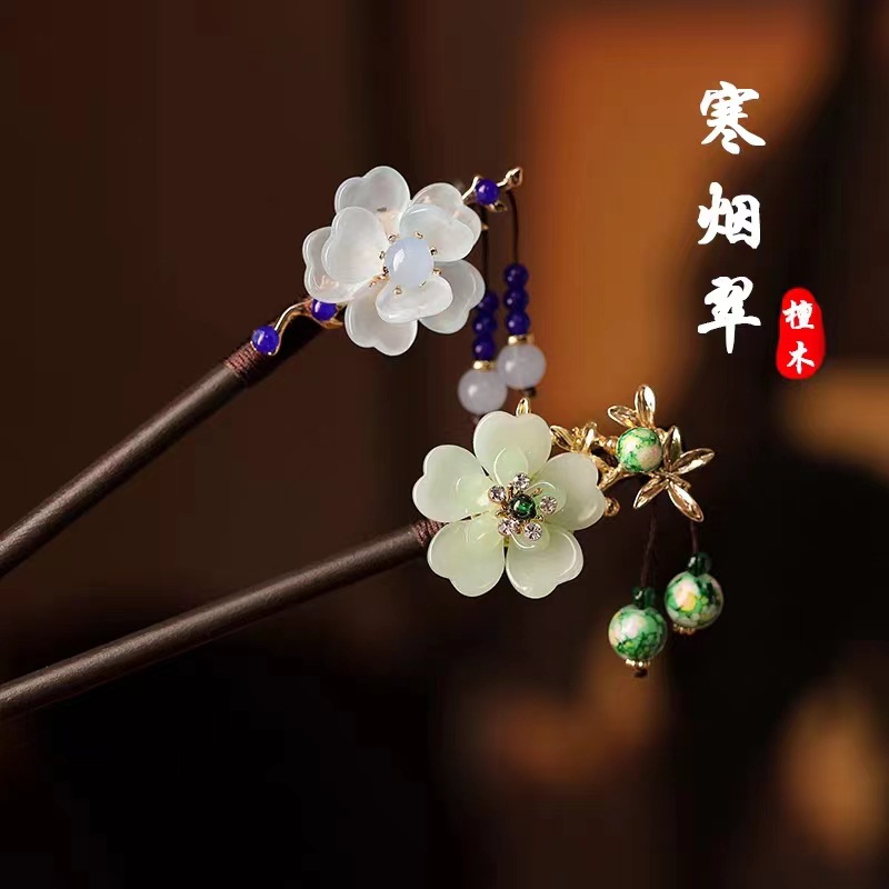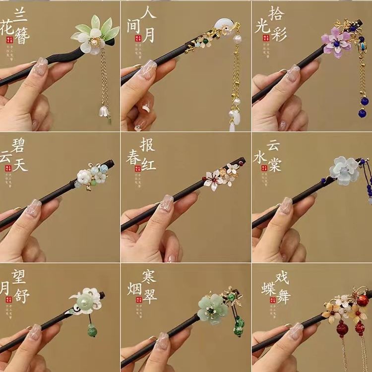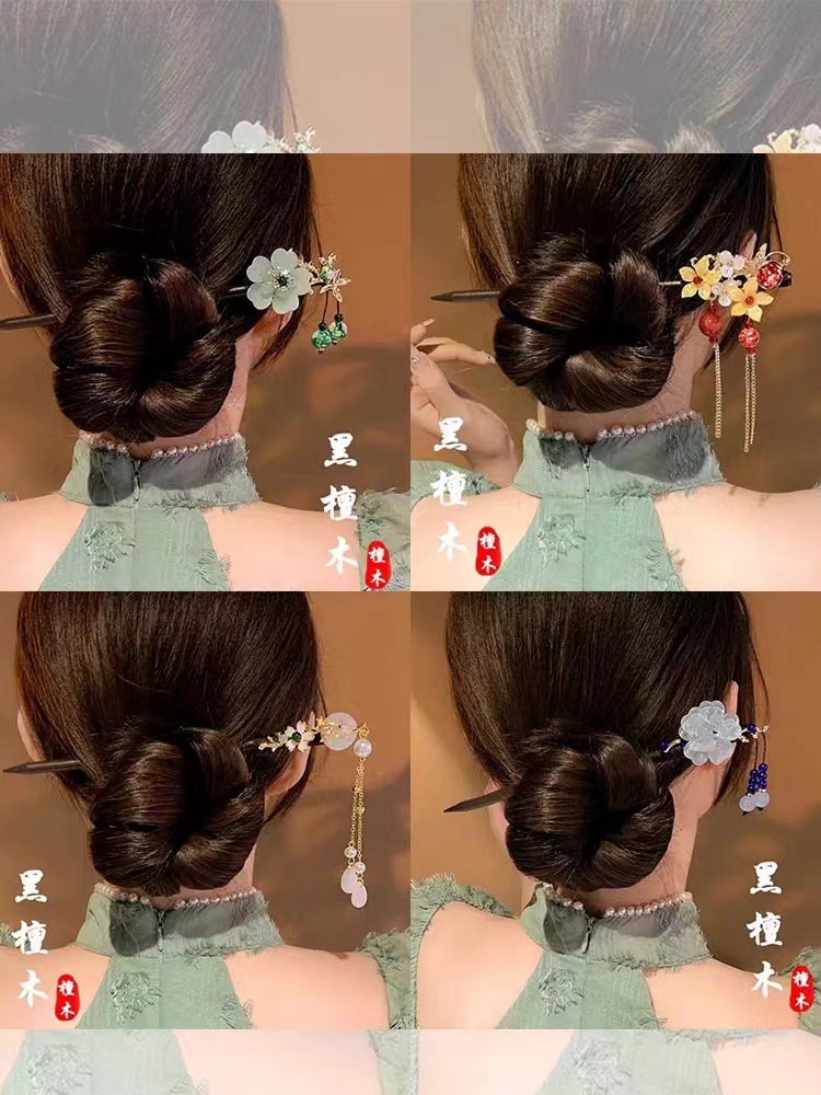 古风高级感仿檀木发簪气质盘发簪子木质流苏汉服旗袍步摇发钗发饰