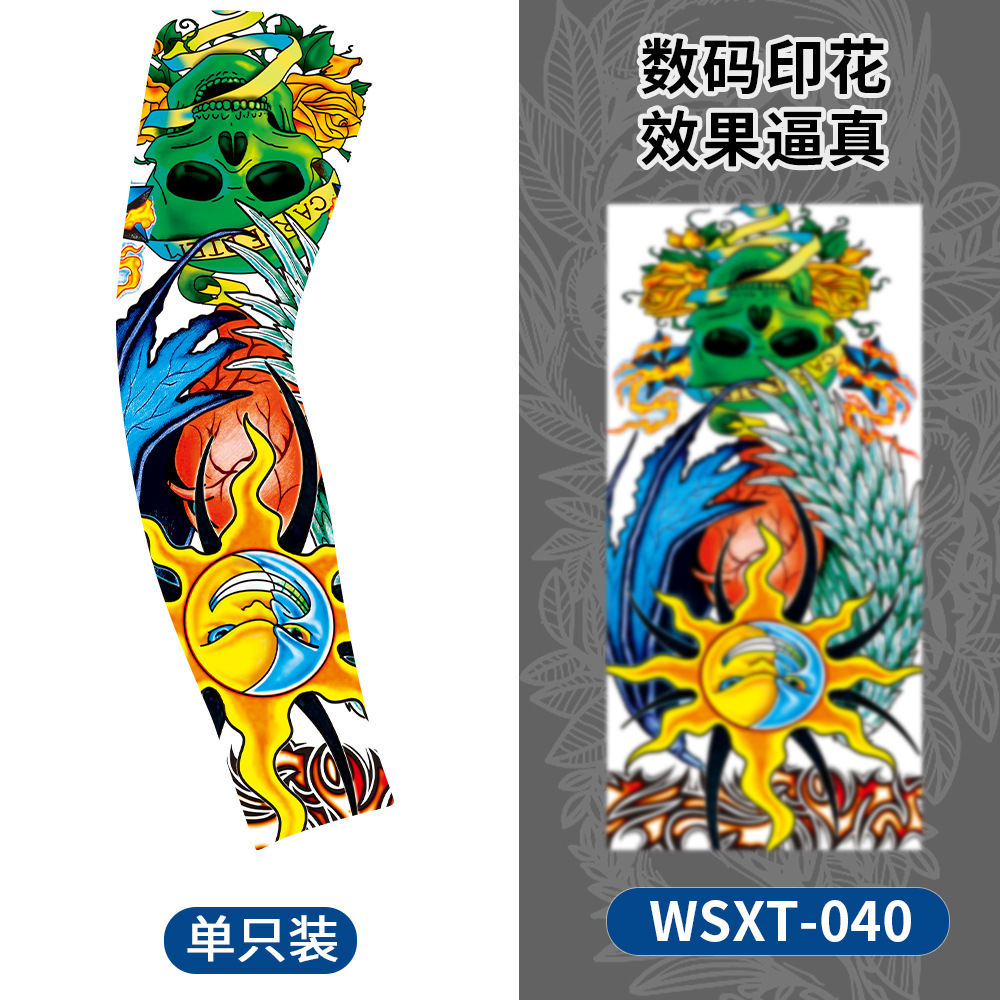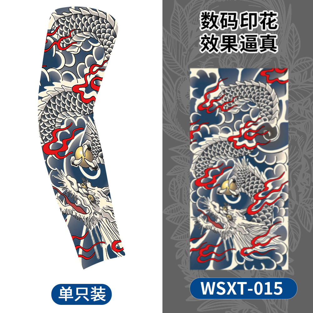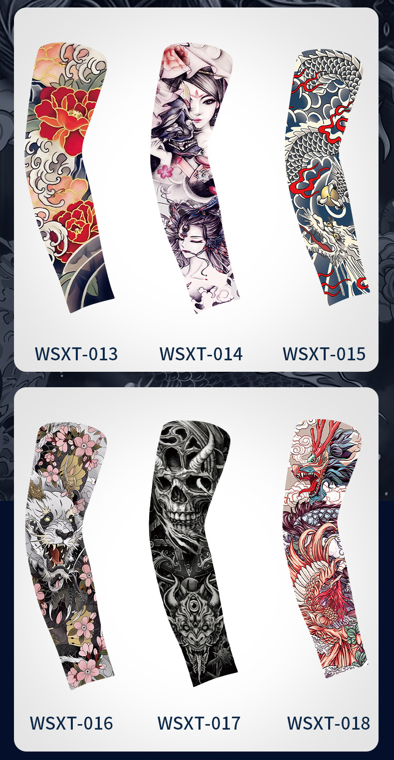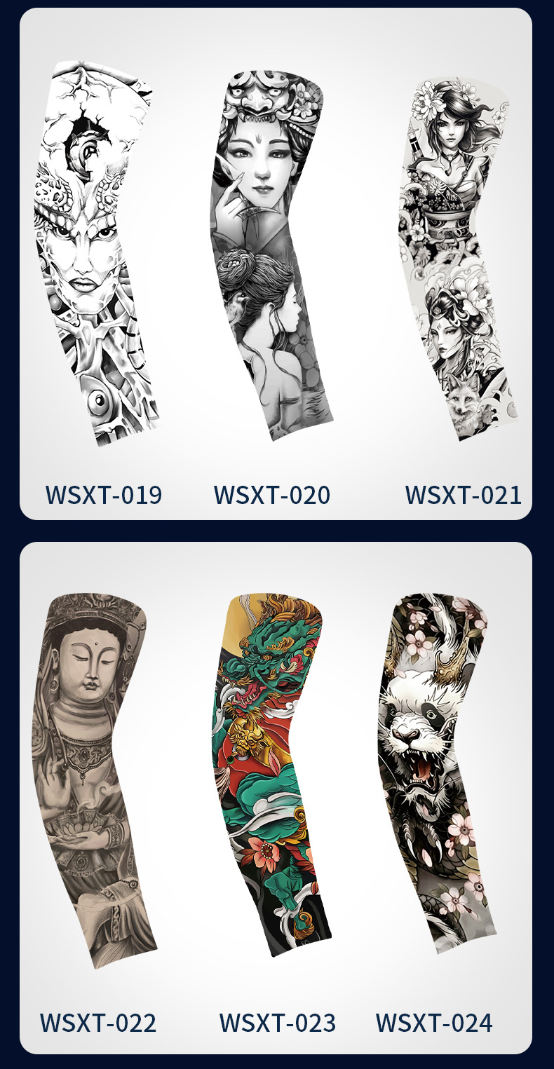 夏季纹身防晒袖套户外骑行运动透气刺青花臂时尚逼真无缝遮盖护袖