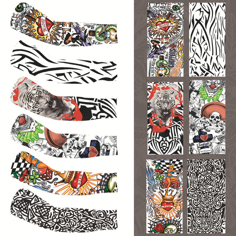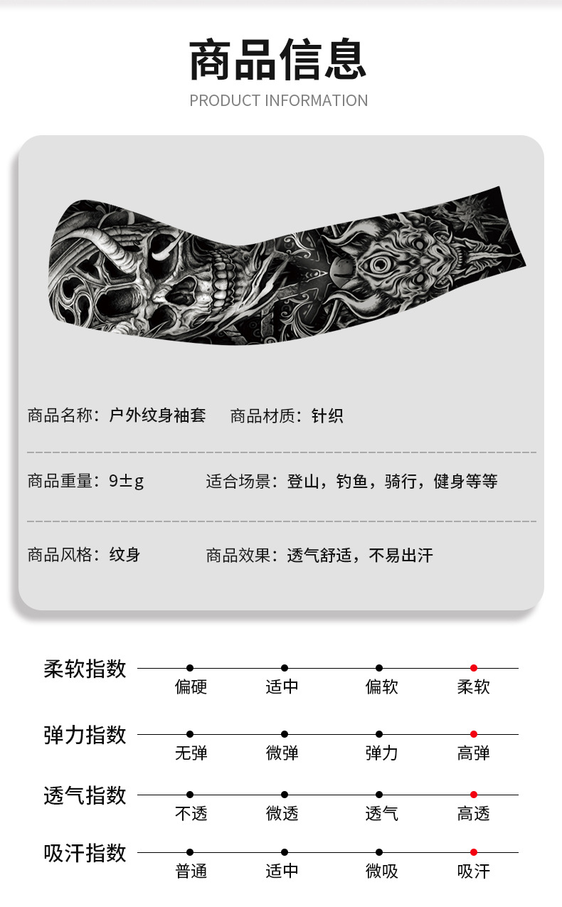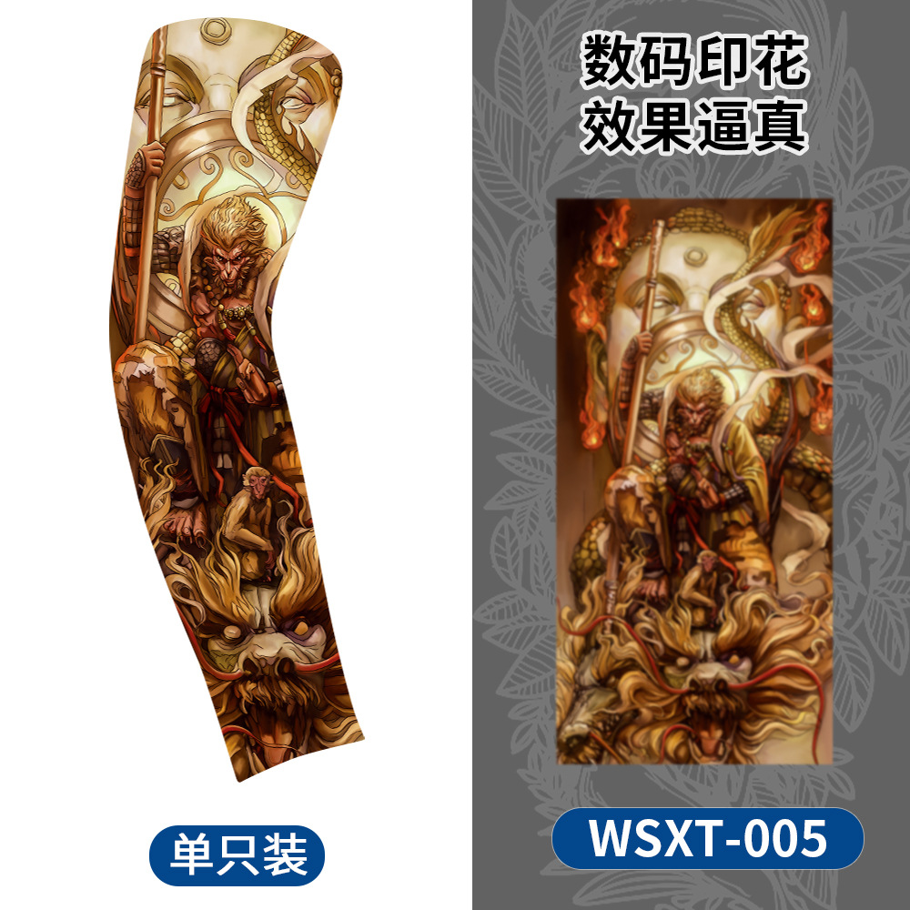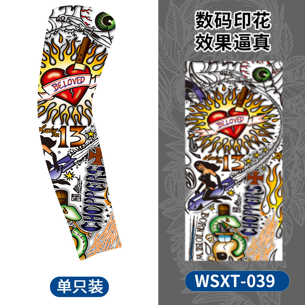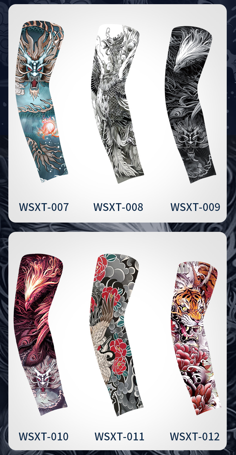 夏季纹身防晒袖套户外骑行运动透气刺青花臂时尚逼真无缝遮盖护袖