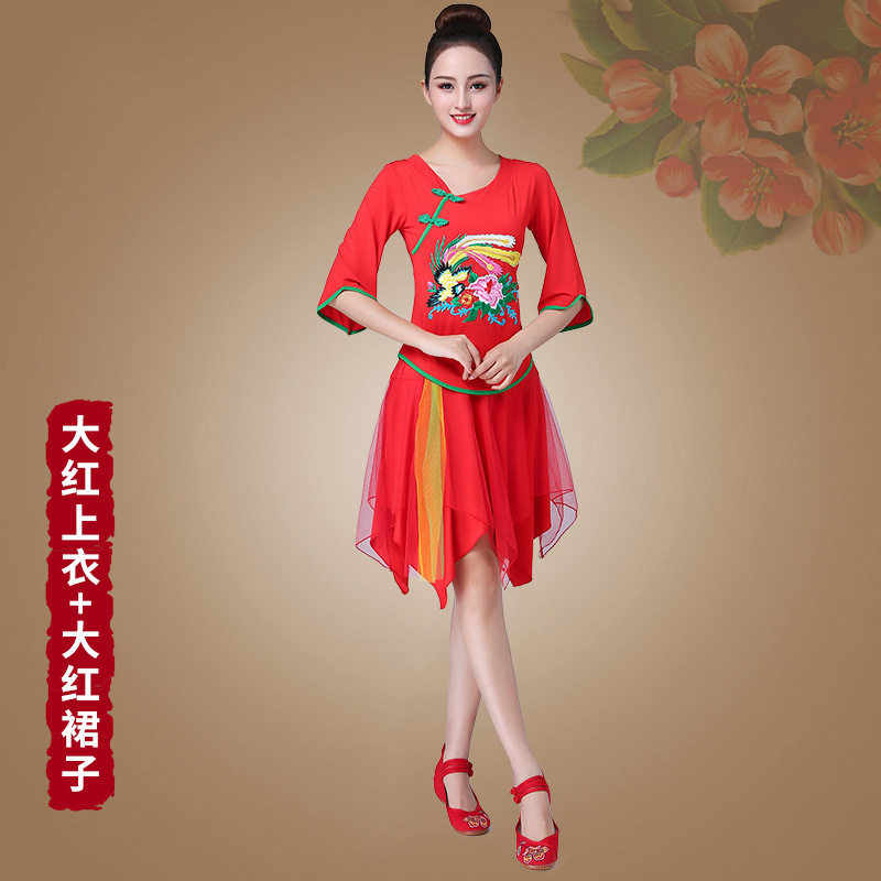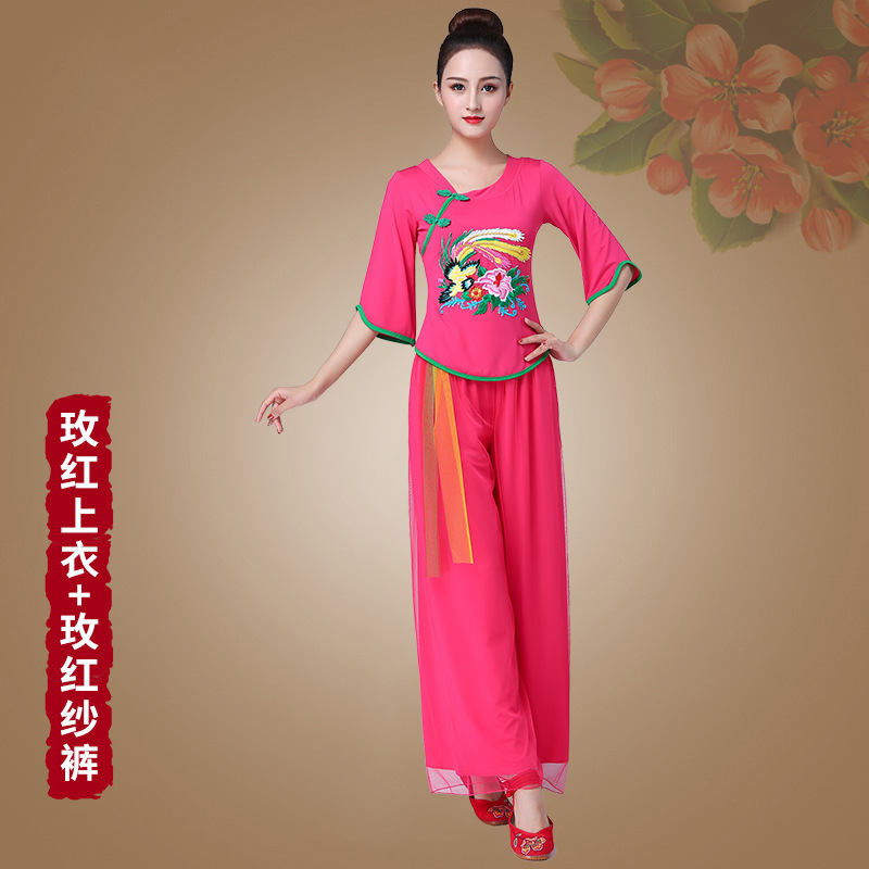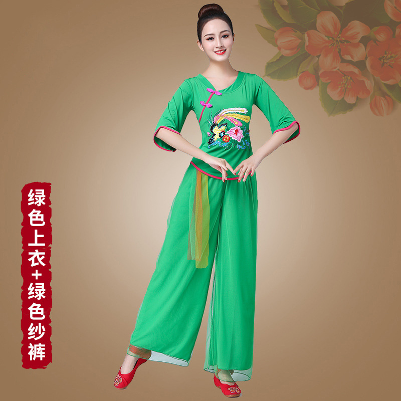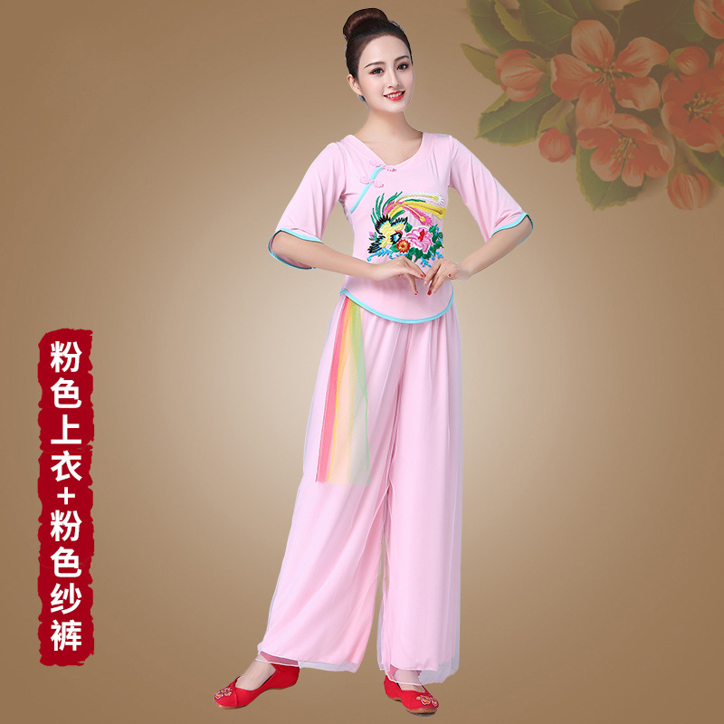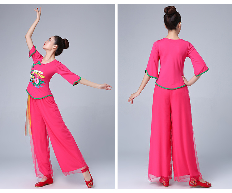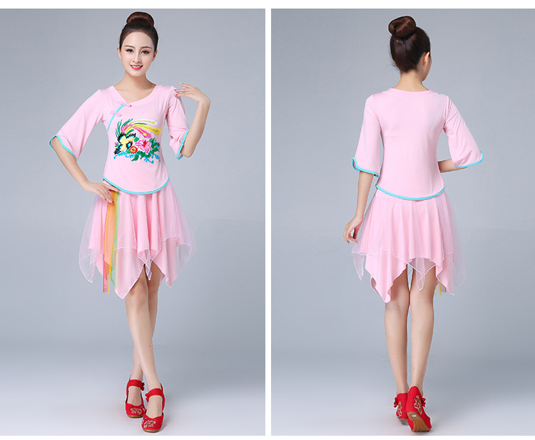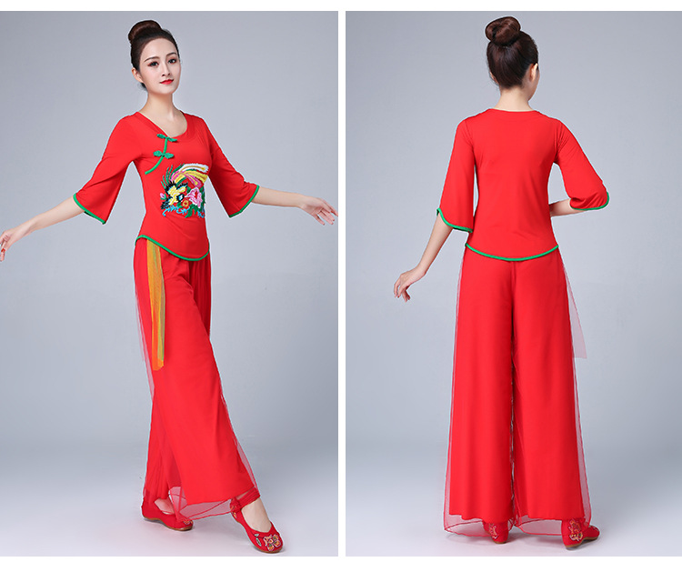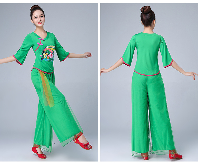 深意广场舞服装新款套装带打底裤凤凰刺绣伏领古典成人舞蹈练功服
