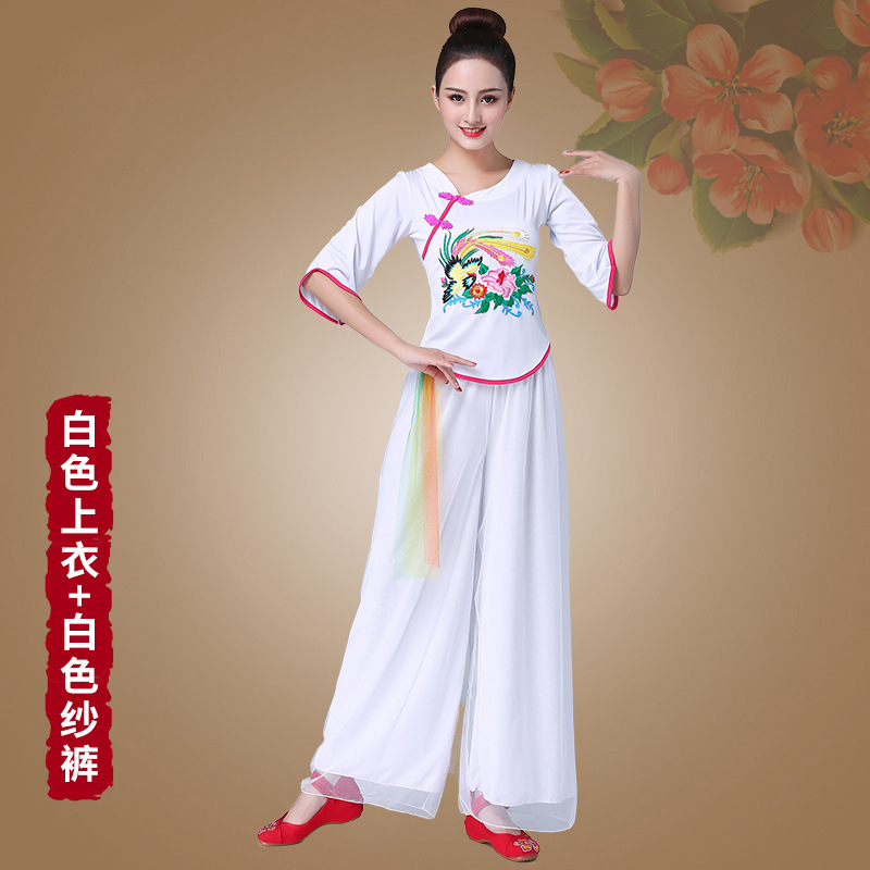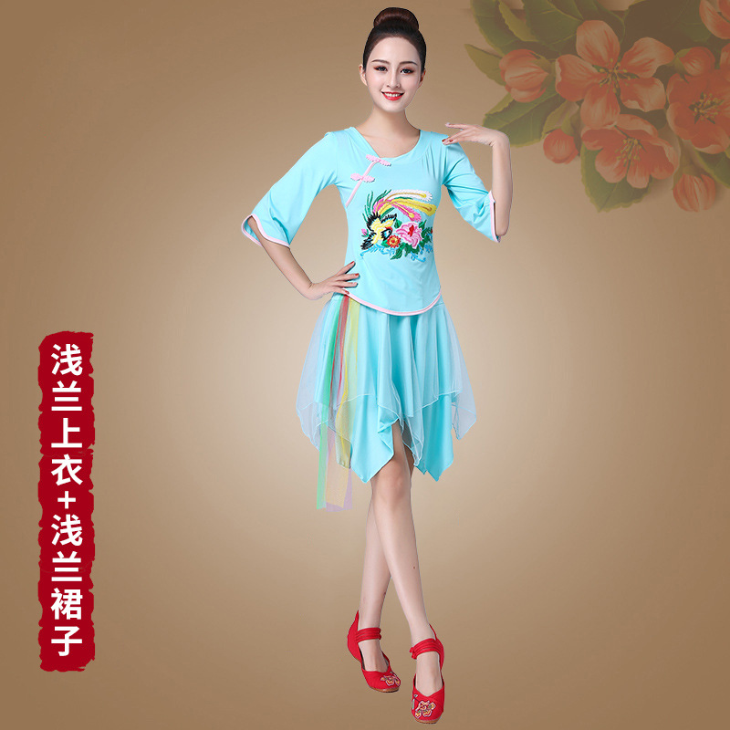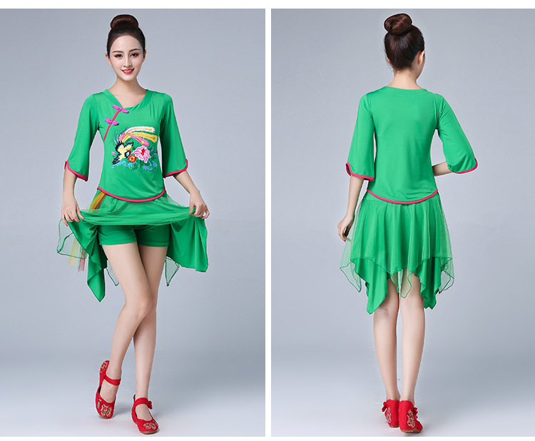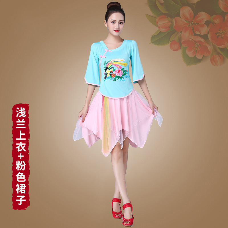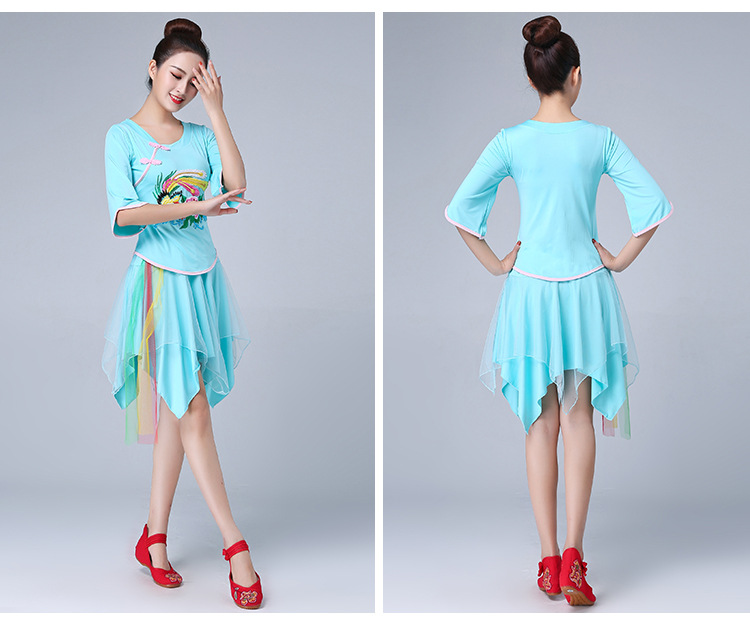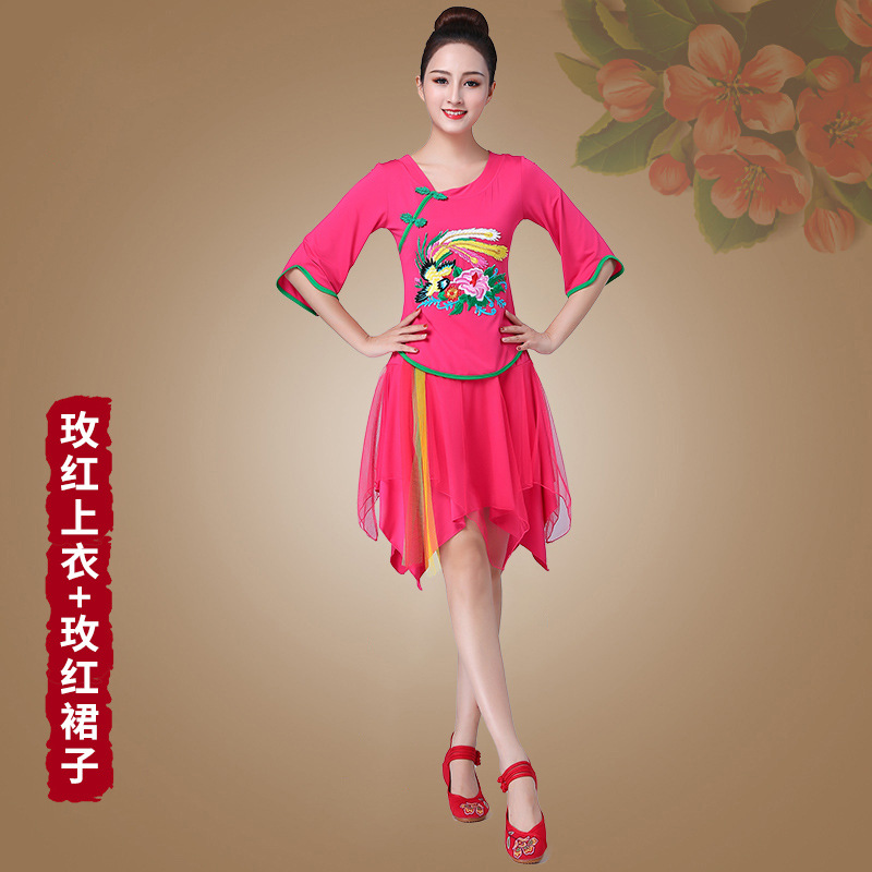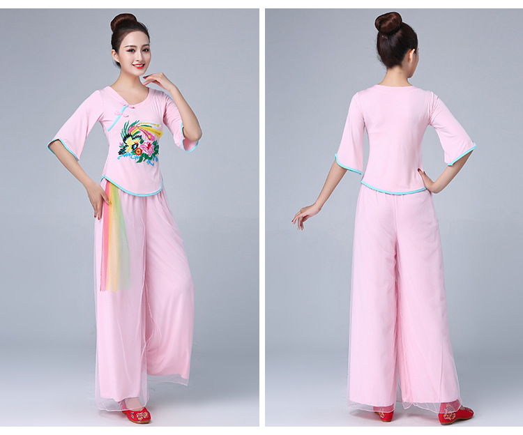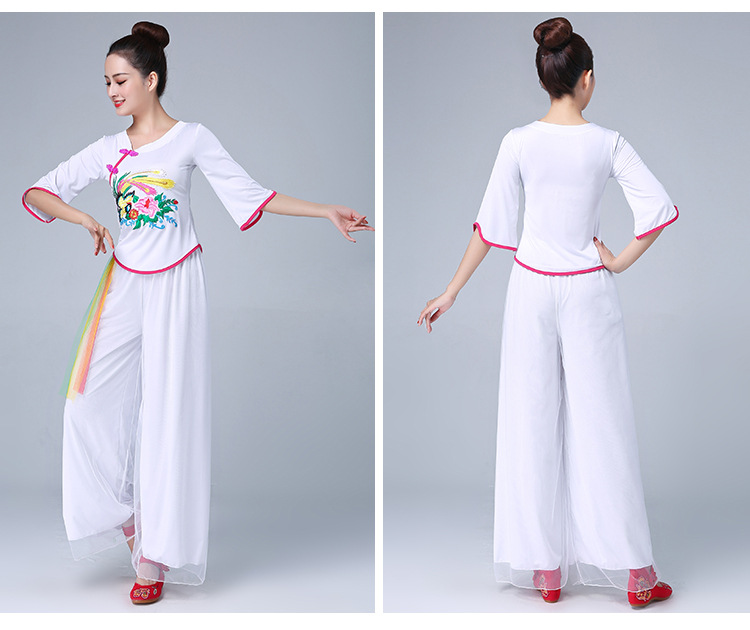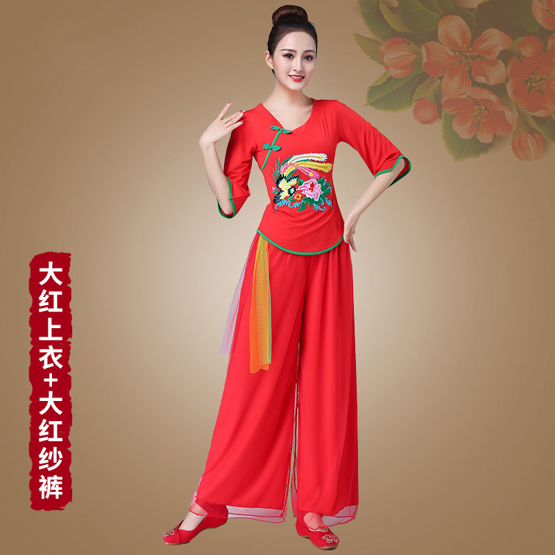深意广场舞服装新款套装带打底裤凤凰刺绣伏领古典成人舞蹈练功服