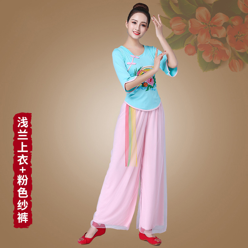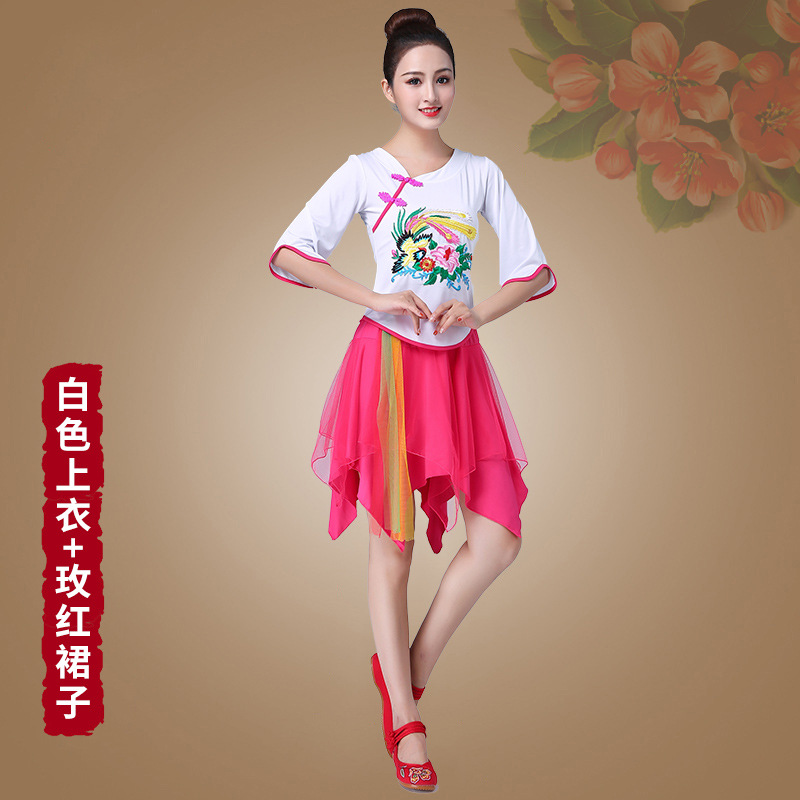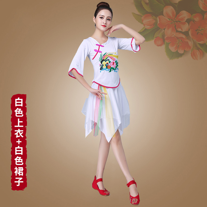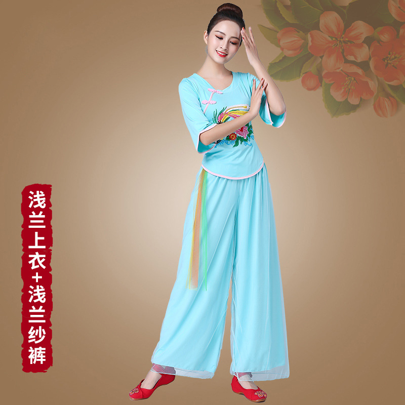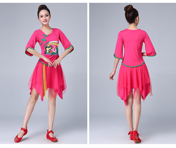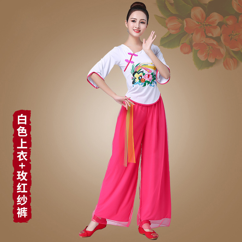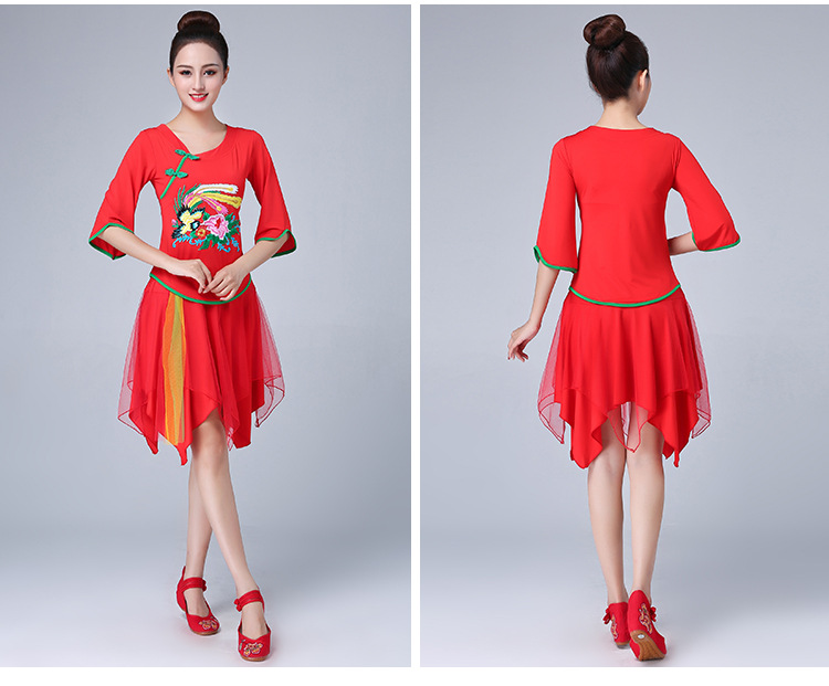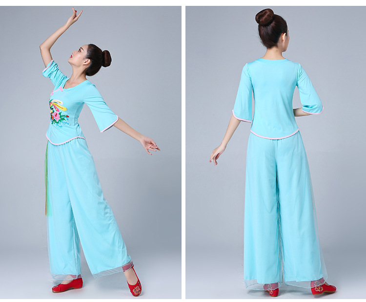 深意广场舞服装新款套装带打底裤凤凰刺绣伏领古典成人舞蹈练功服