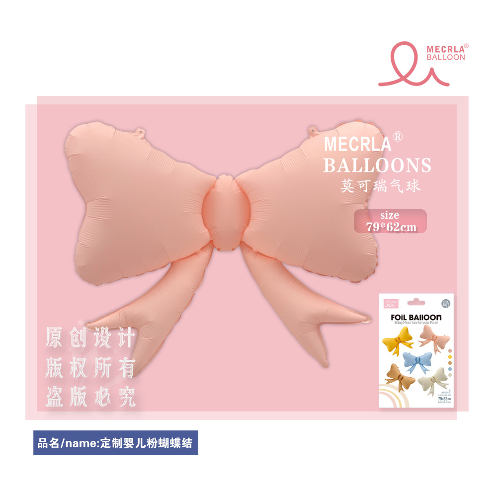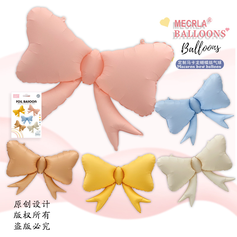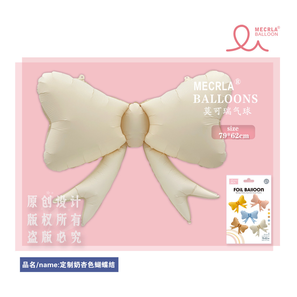 莫可瑞MECRLA哑光马卡龙风奶油色蝴蝶结节日派对装饰网红铝膜气球