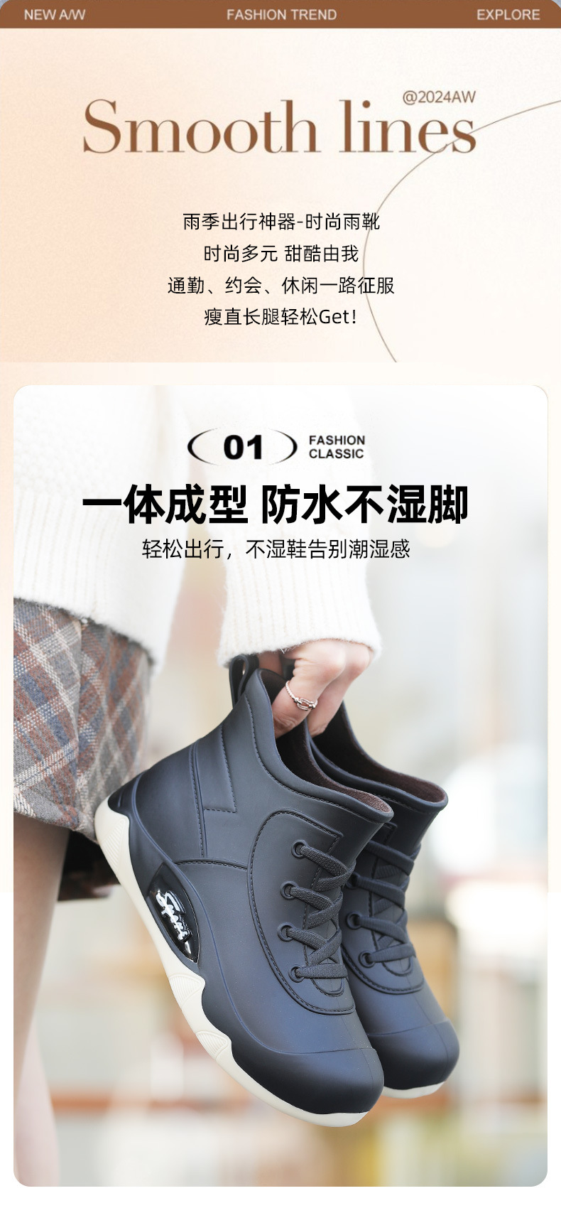 厂家直销水鞋女防水防滑 2025新款厨房户外工作时尚雨鞋短筒女