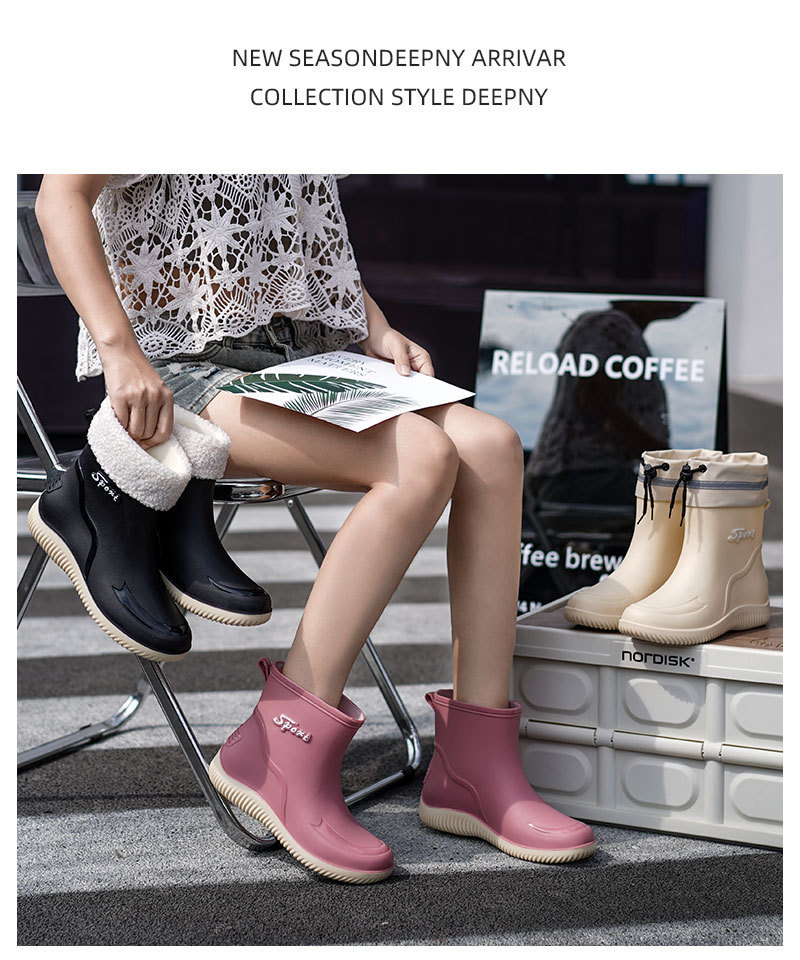 2025时尚女款防滑防水耐磨气质女士雨鞋雨靴厨房洗车外穿短筒胶鞋