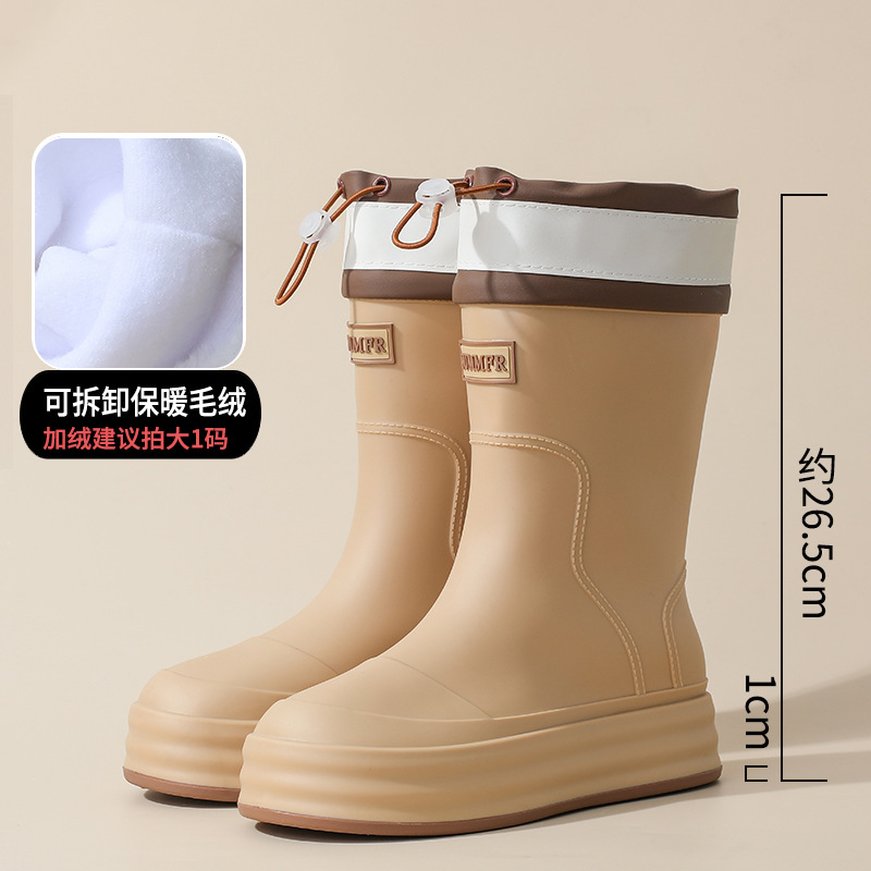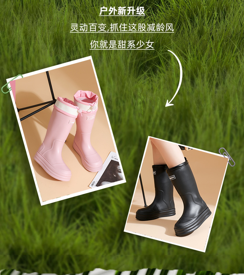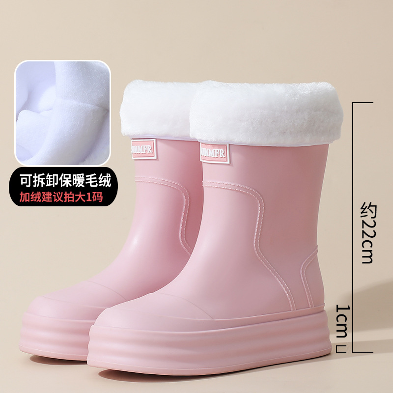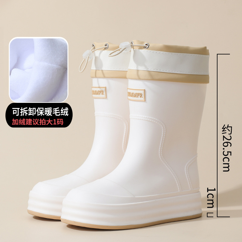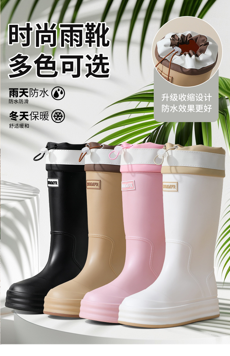 2024新款雨鞋加绒女款成人防滑中筒束口雨靴时尚高筒水鞋长筒水靴
