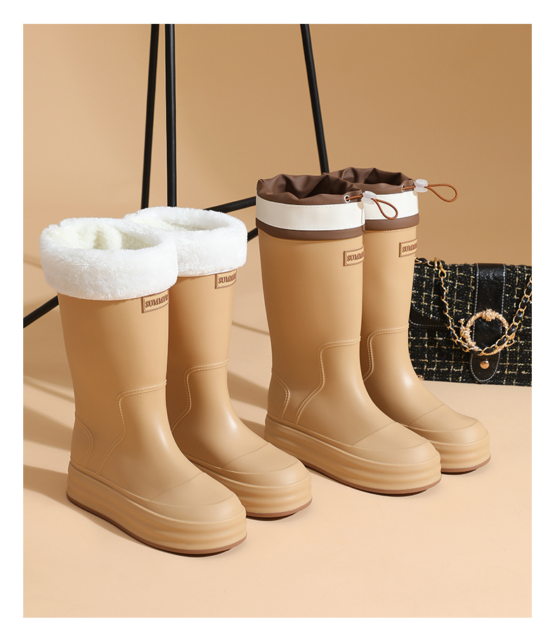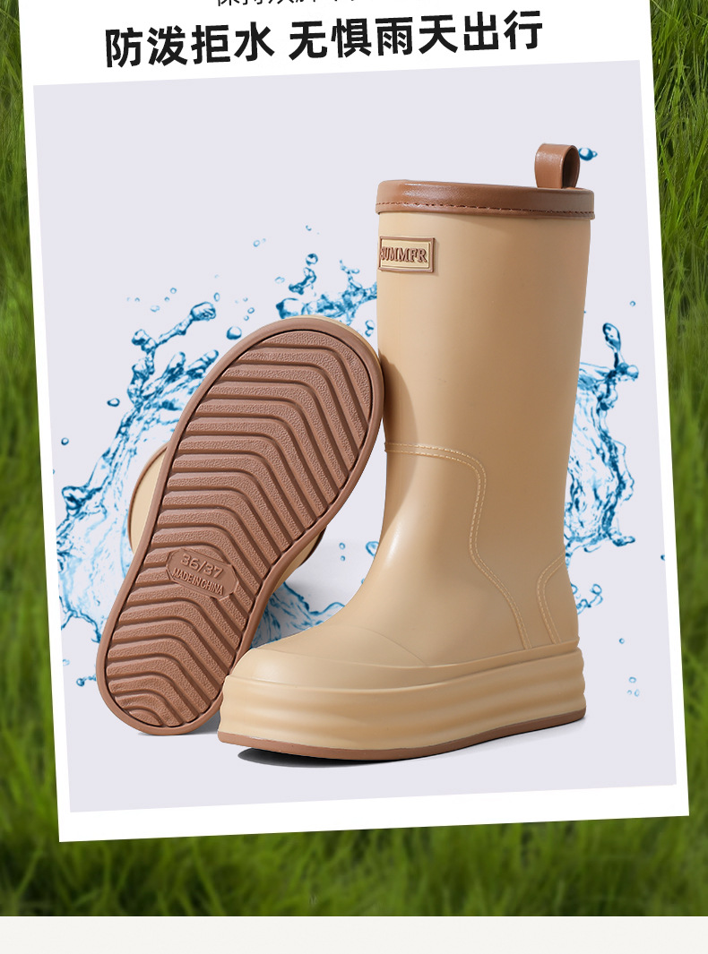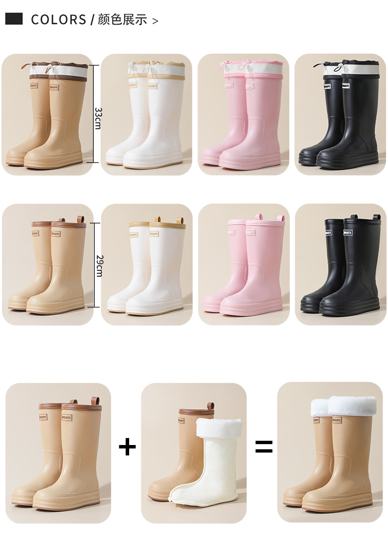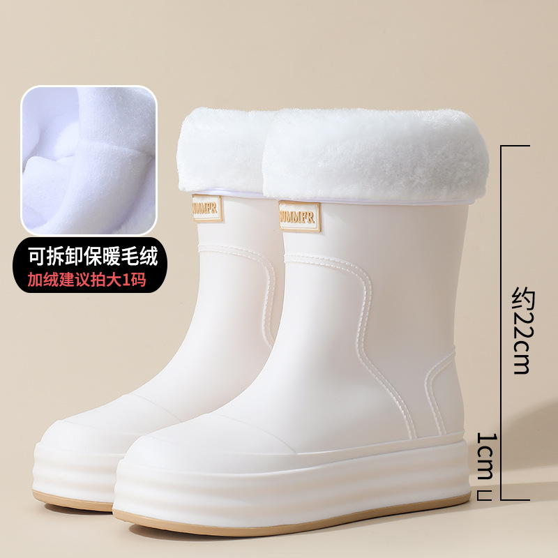 2024新款雨鞋加绒女款成人防滑中筒束口雨靴时尚高筒水鞋长筒水靴