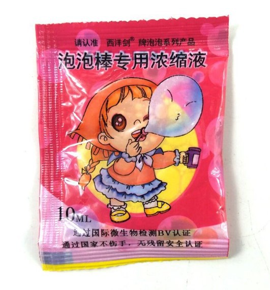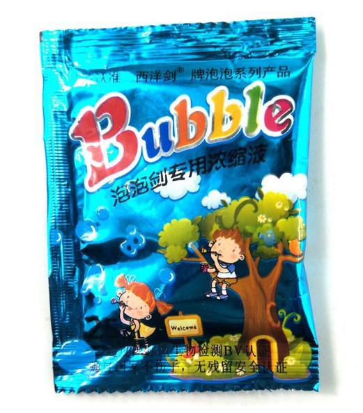 名称:浓缩液版西洋剑泡泡棒,一个西洋剑搭配一包20毫升浓缩液,没有单独包装袋,250个一箱,性价比高!回去自己把浓缩液倒进管子,装上水,晃动几下就可以用了!!!