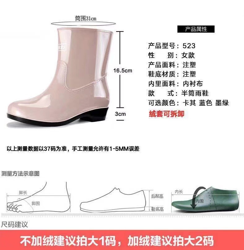 回力雨鞋女款523短筒雨靴成人水鞋厨房劳保清洁防水靴PVC胶鞋批发