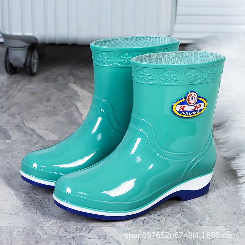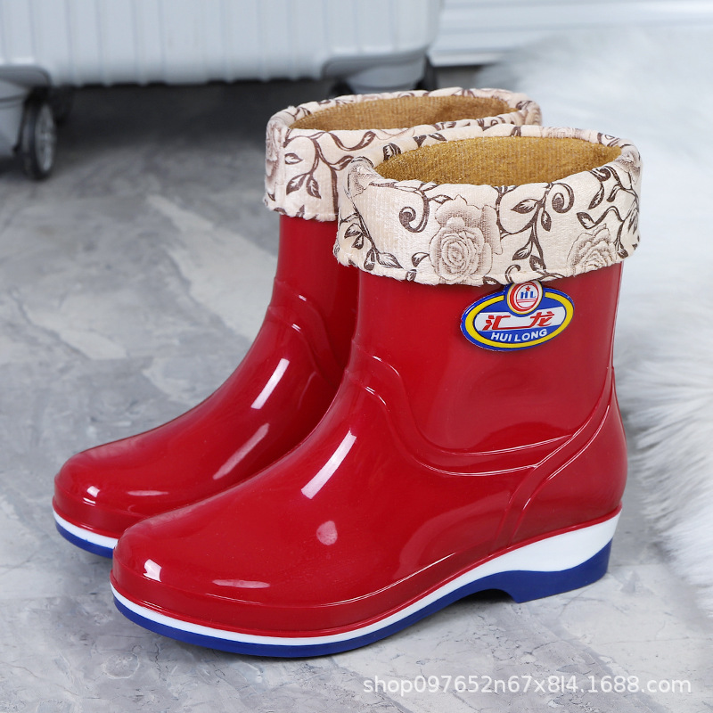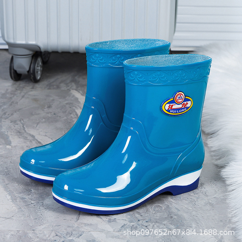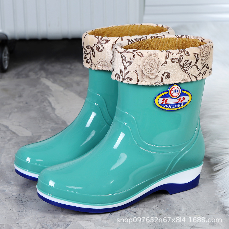 新款高筒水鞋劳保厨房防水防滑鞋雨鞋女士加绒保暖长雨靴工厂批发