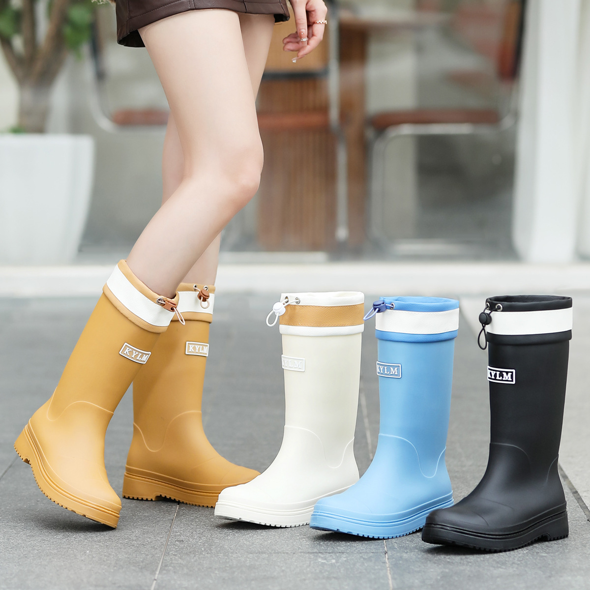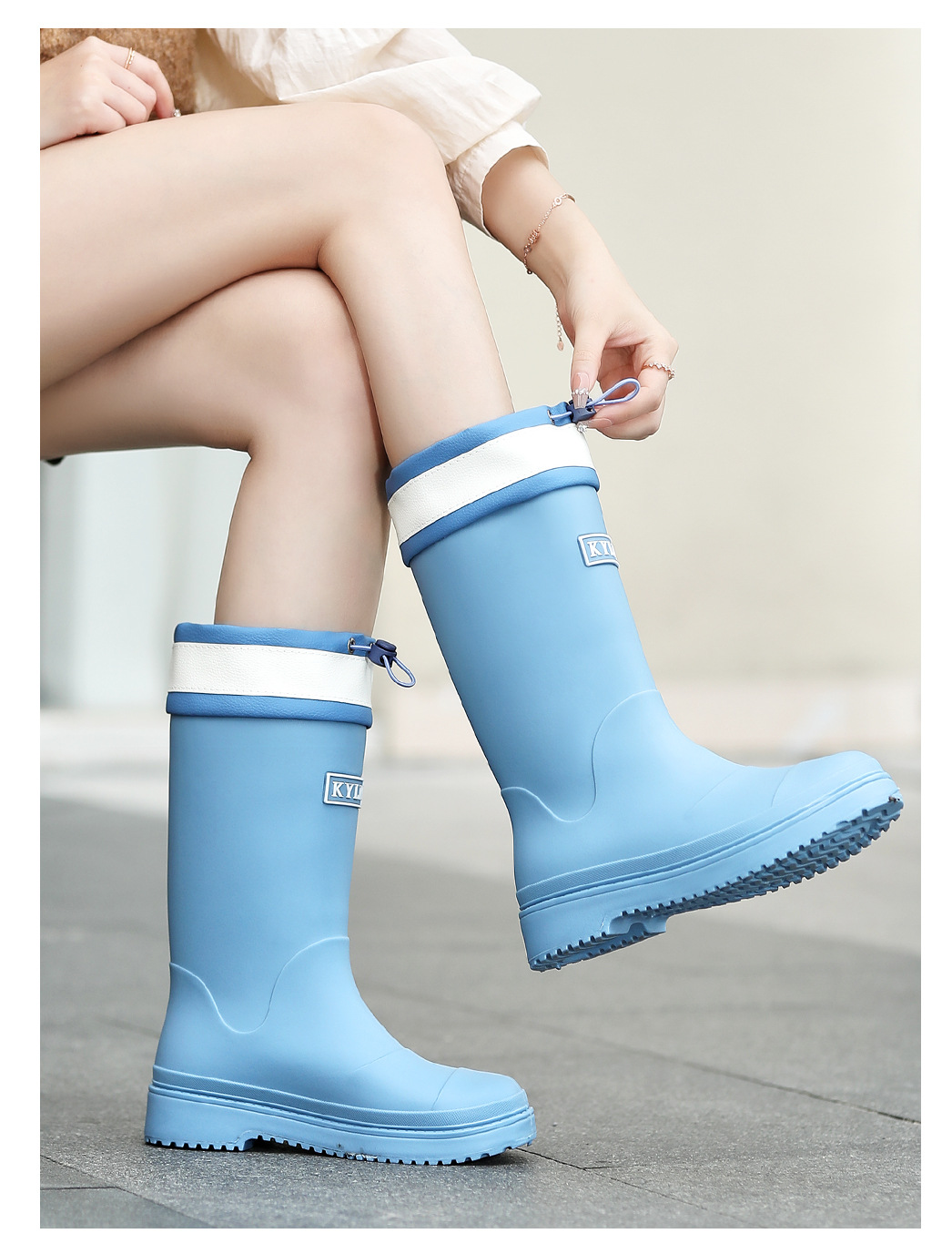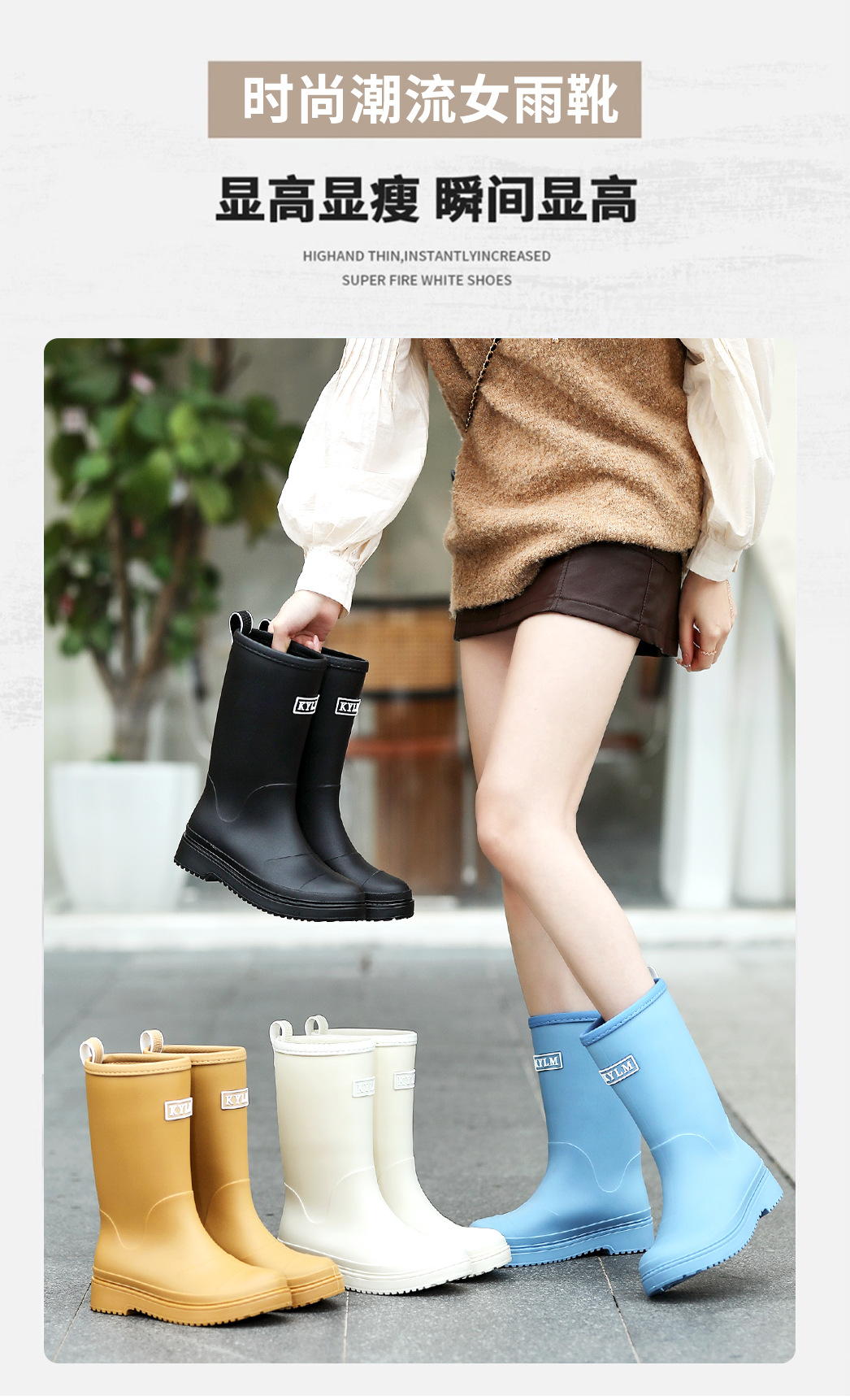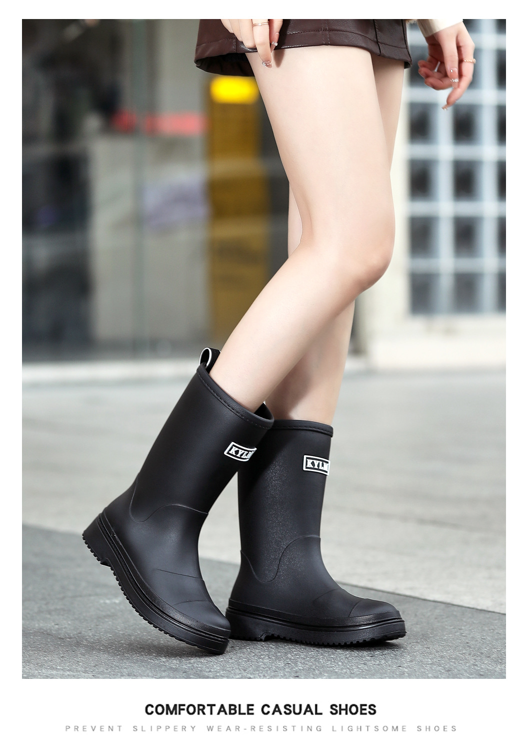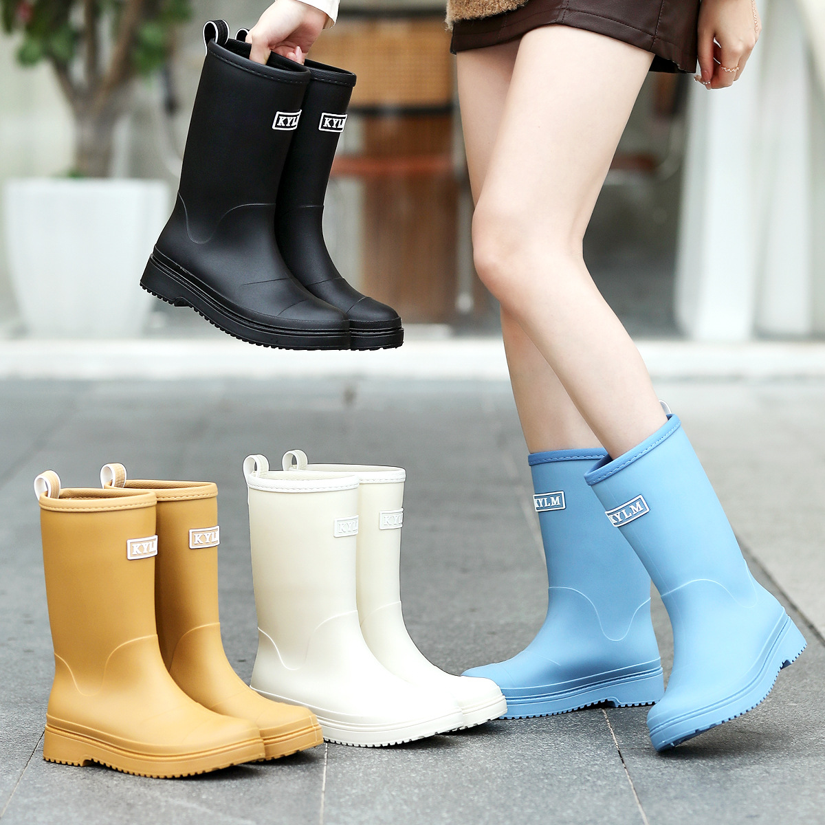 健象时尚韩版雨鞋女式中筒束口防滑防水耐磨水鞋百塔马丁雨靴套鞋