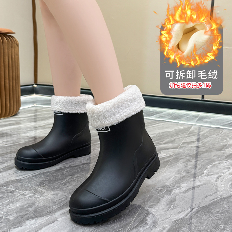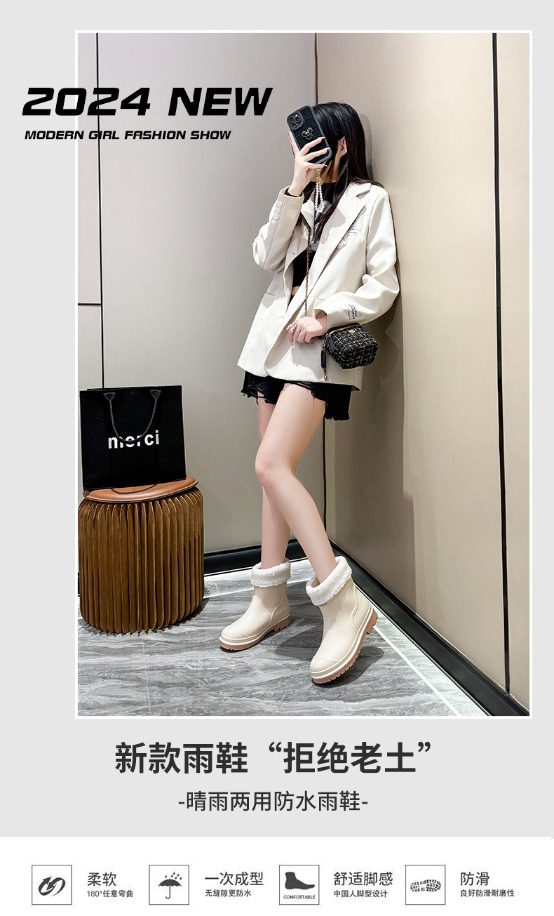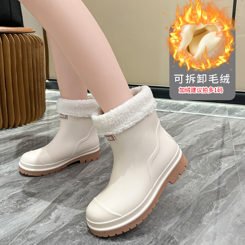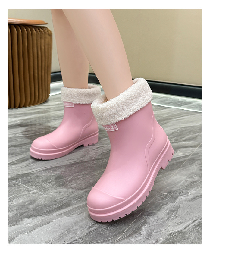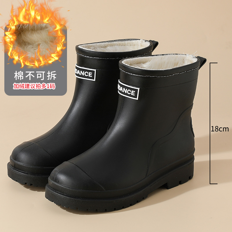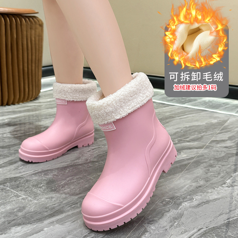25年新款雨靴女外穿时尚加绒保暖束口防滑耐磨厚底雨鞋防水靴