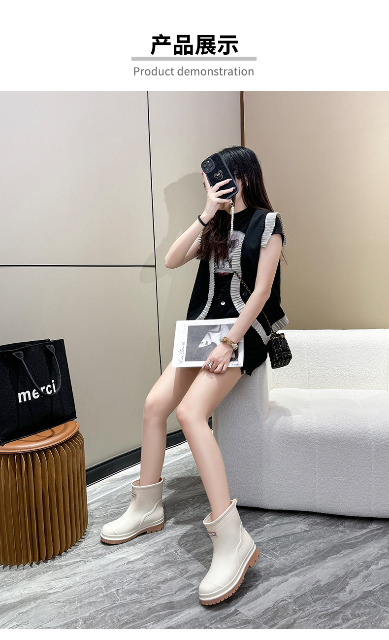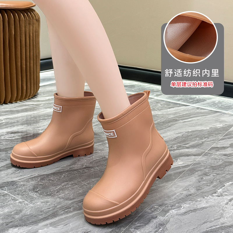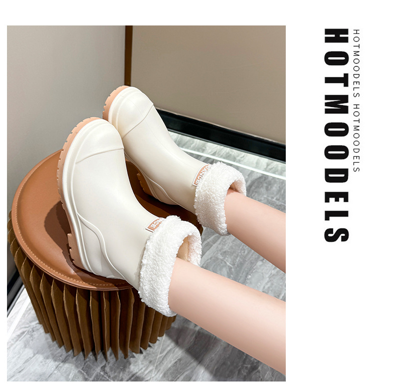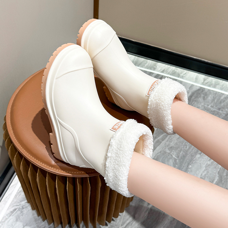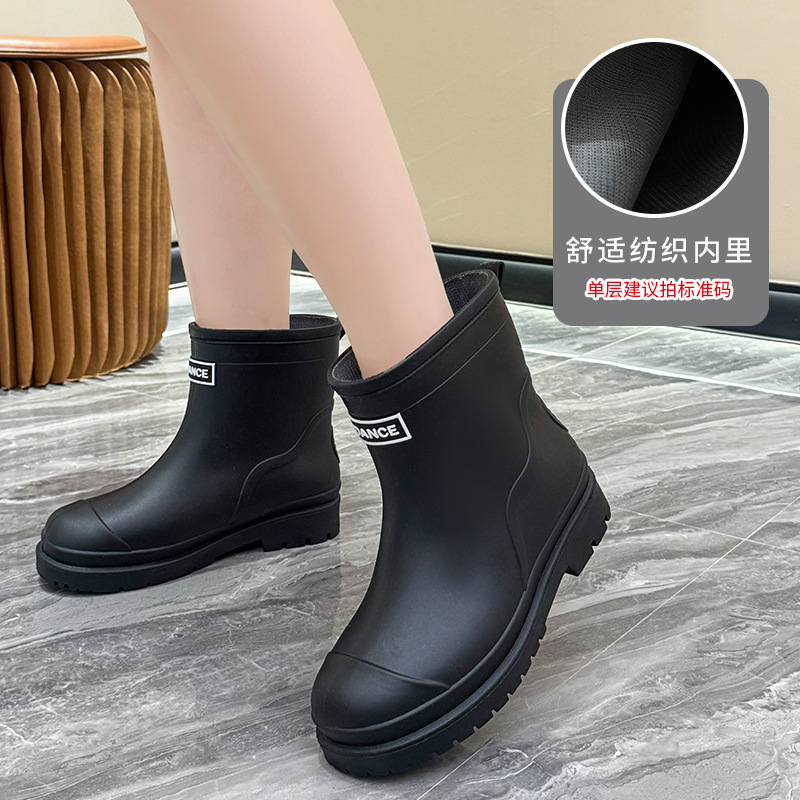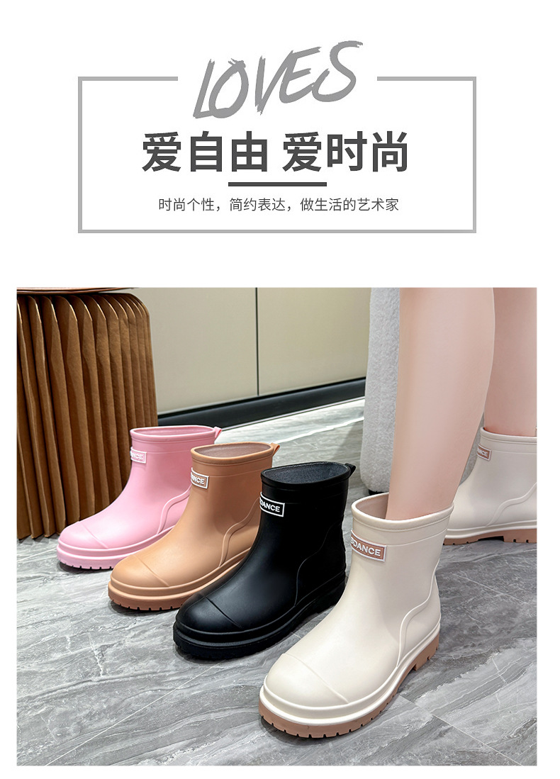 25年新款雨靴女外穿时尚加绒保暖束口防滑耐磨厚底雨鞋防水靴