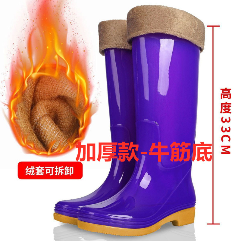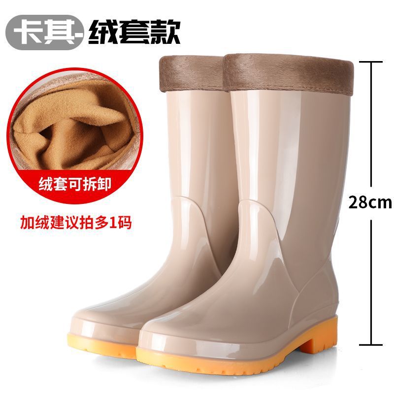 高筒牛筋加绒棉雨鞋雨靴鞋桶胶鞋套鞋水靴女成人厨房保暖冬季