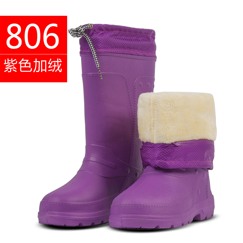 冬季EVA泡沫加绒雨靴女超轻一体棉水鞋高筒保暖雨鞋防滑防水胶鞋