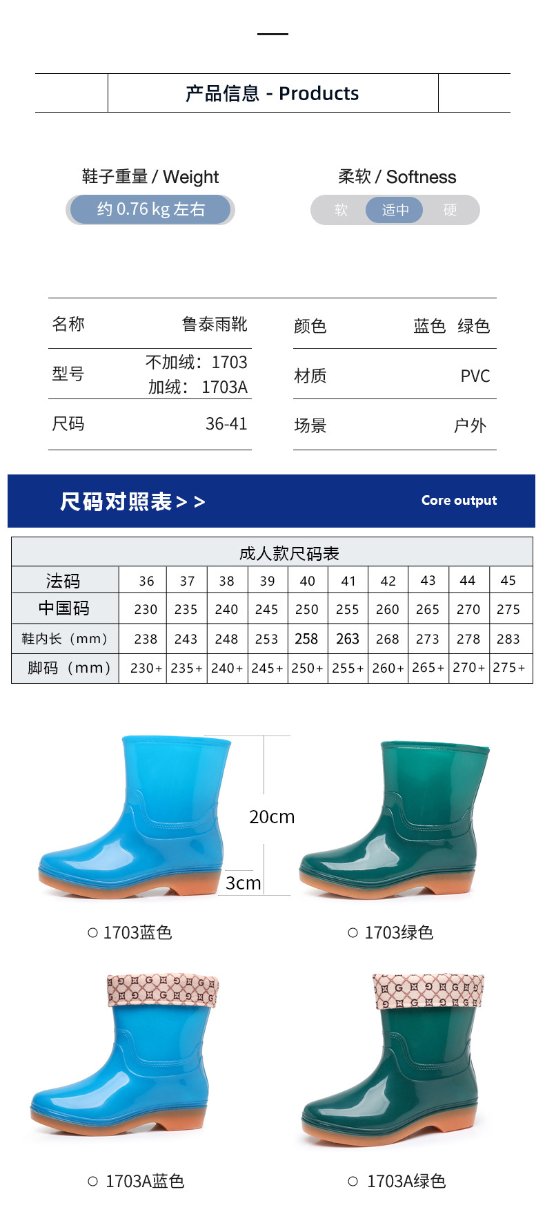 PVC雨鞋女款1703防水防滑外穿卫生清洁低筒胶鞋雨靴套鞋女士水鞋
