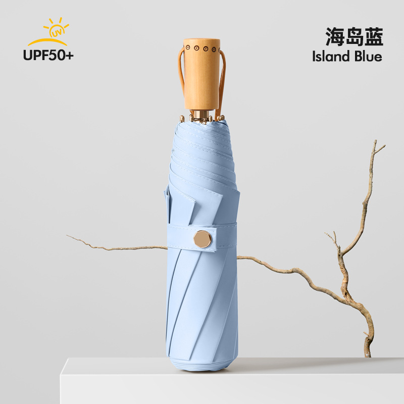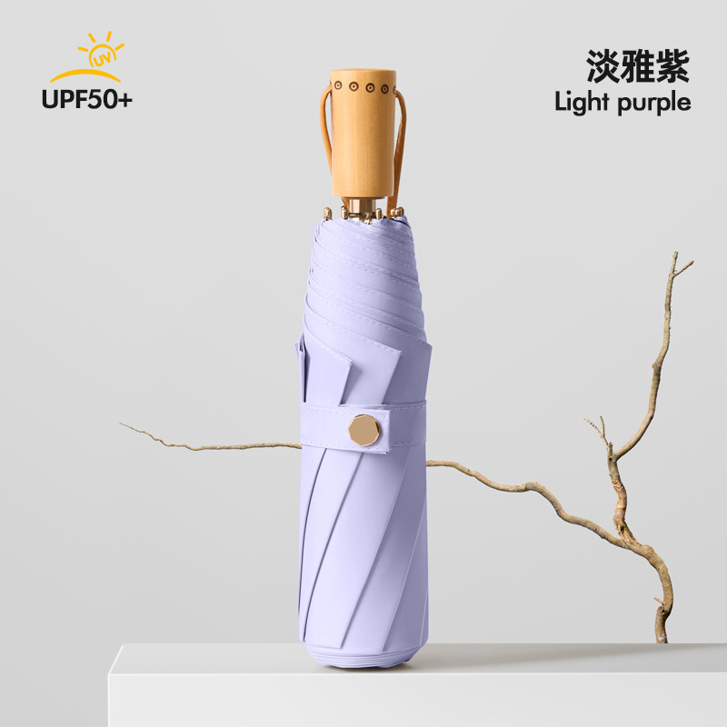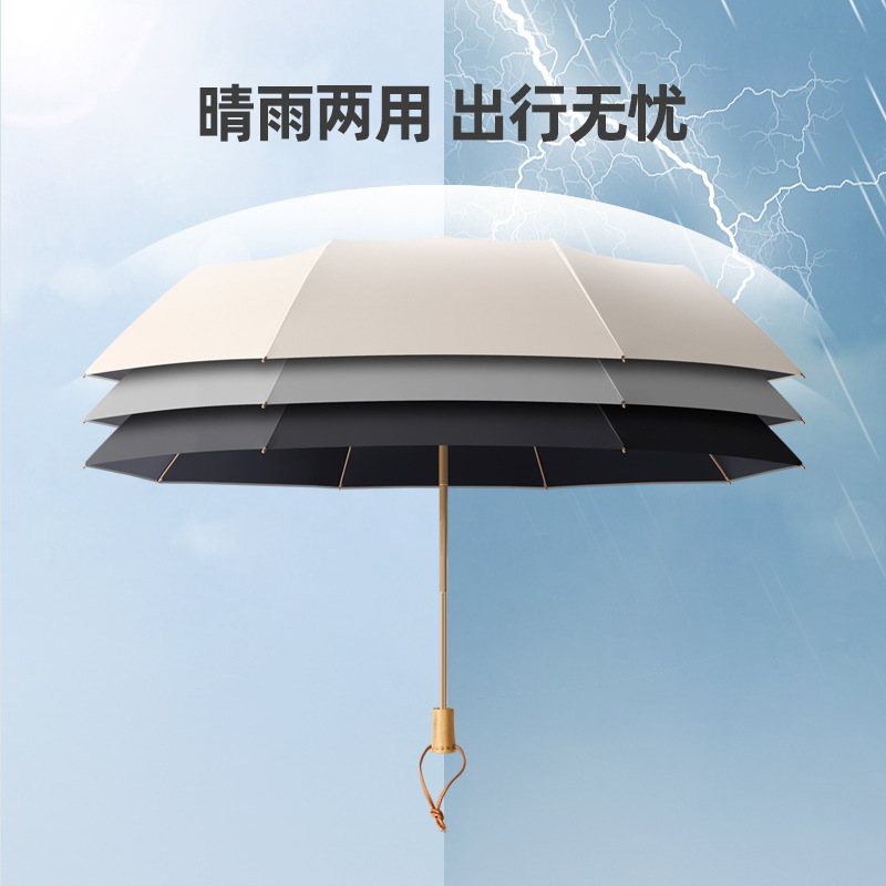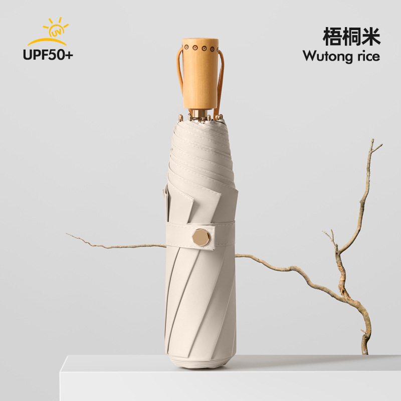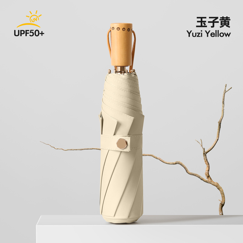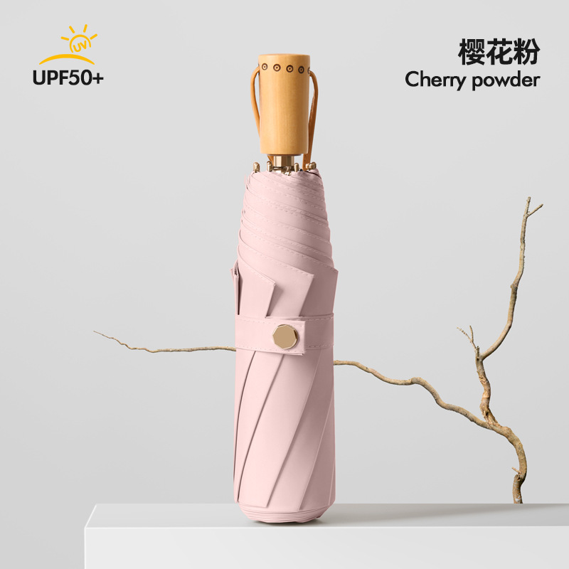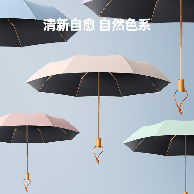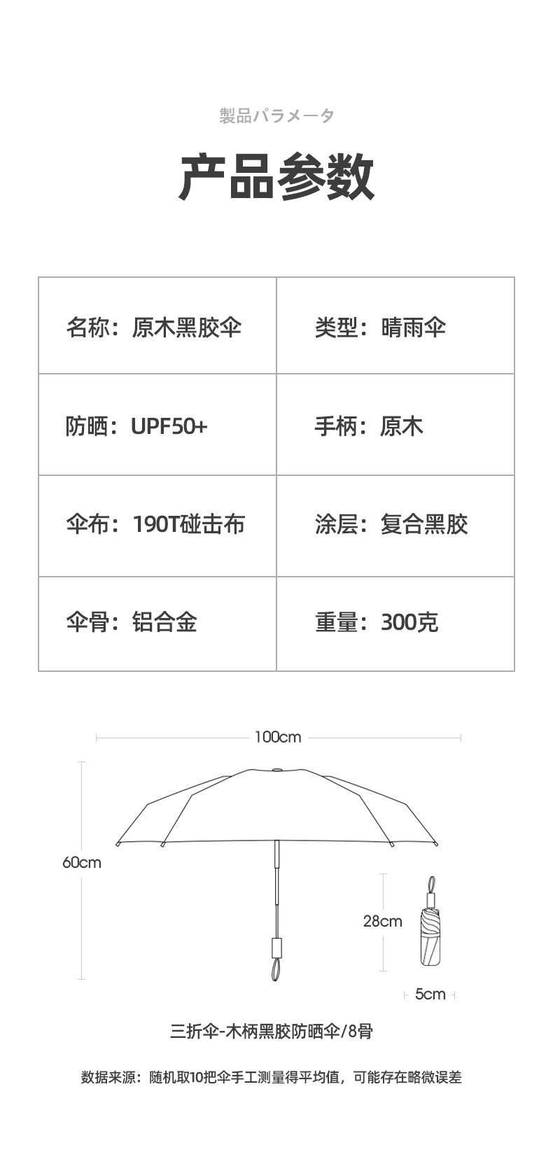 8骨实木黑胶雨伞手动晴雨两用防晒防紫外线折叠女高级感太阳伞