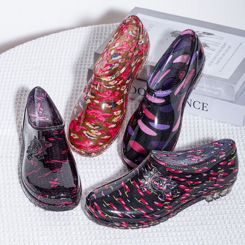 双回四季低帮防水鞋浅口平跟雨鞋短筒低筒雨靴胶鞋套鞋女成人耐磨