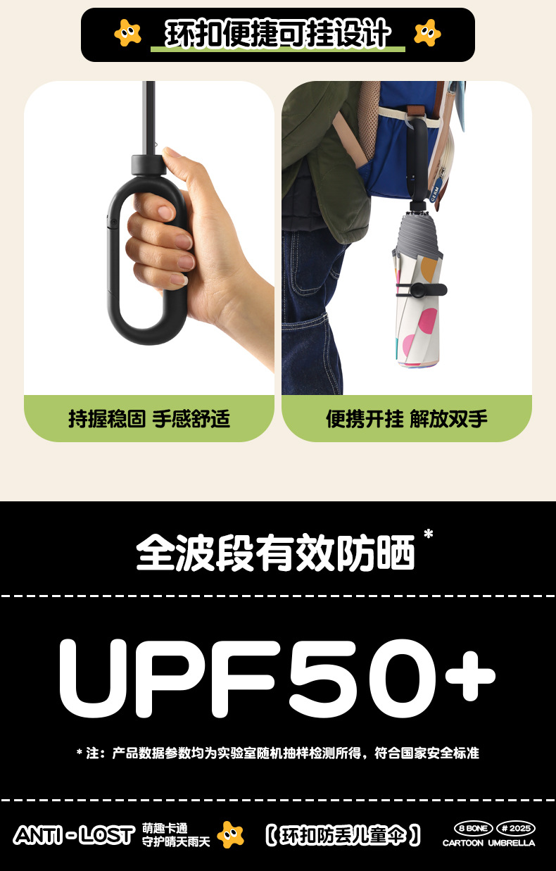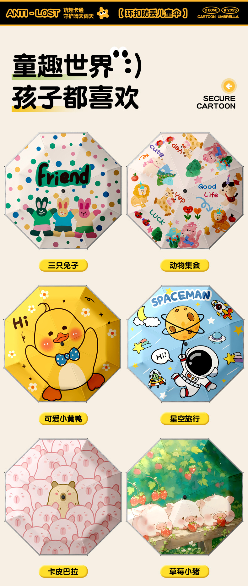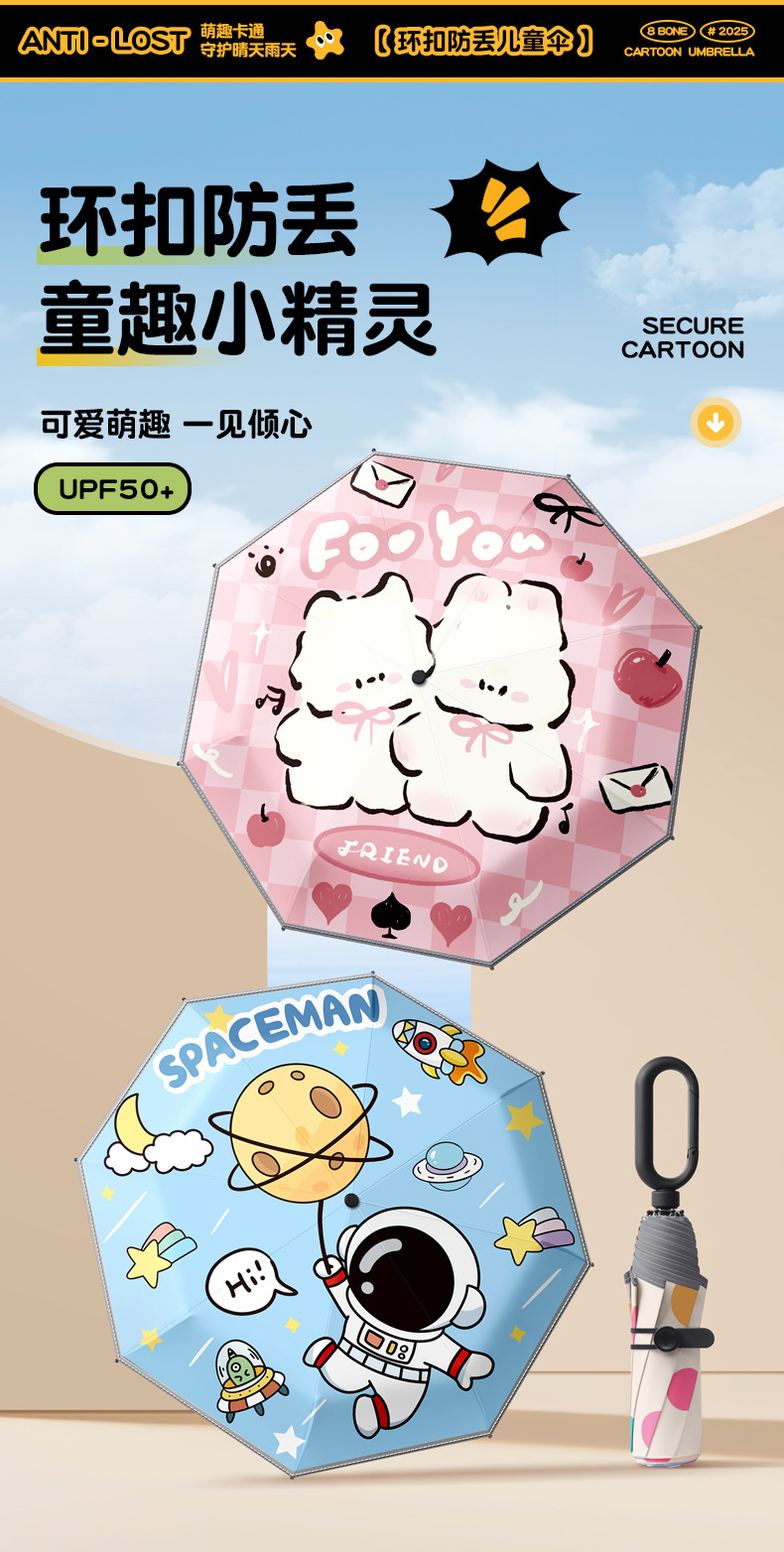 环扣儿童雨伞手动折叠小学生男女孩上学专用晴雨两用防晒防紫外线