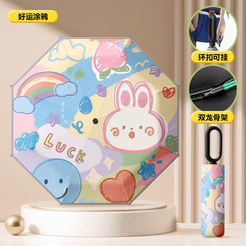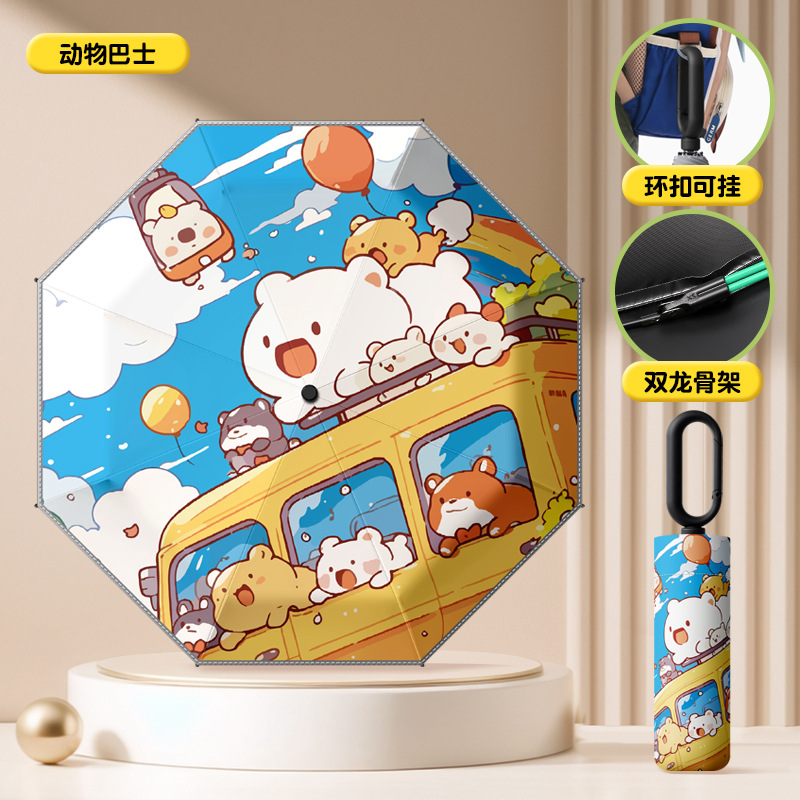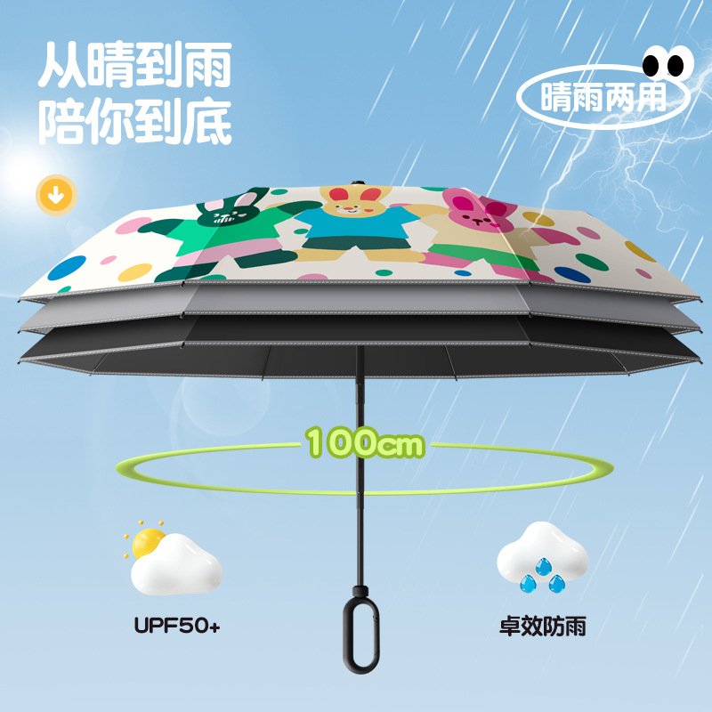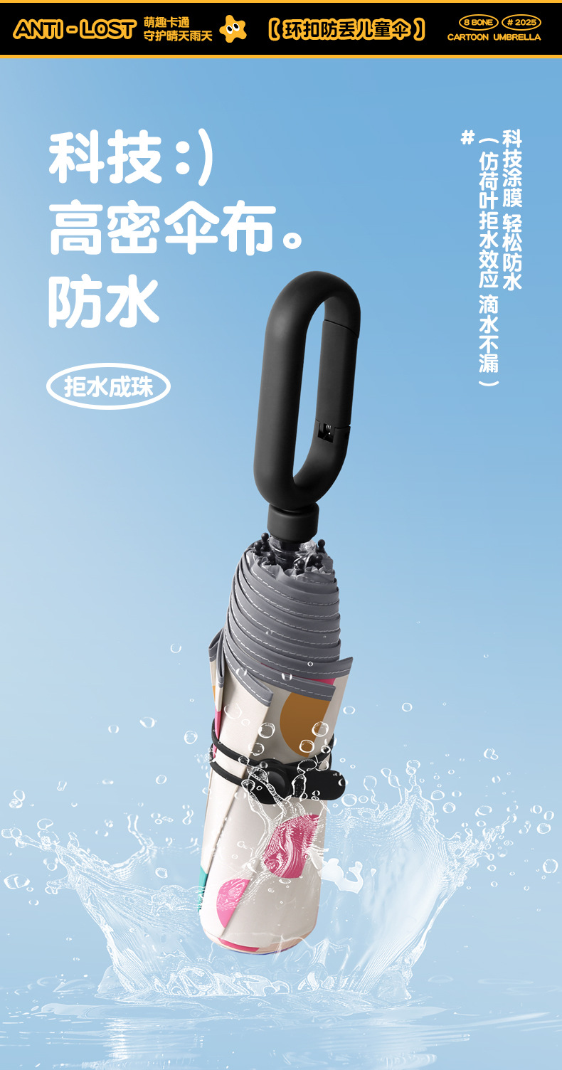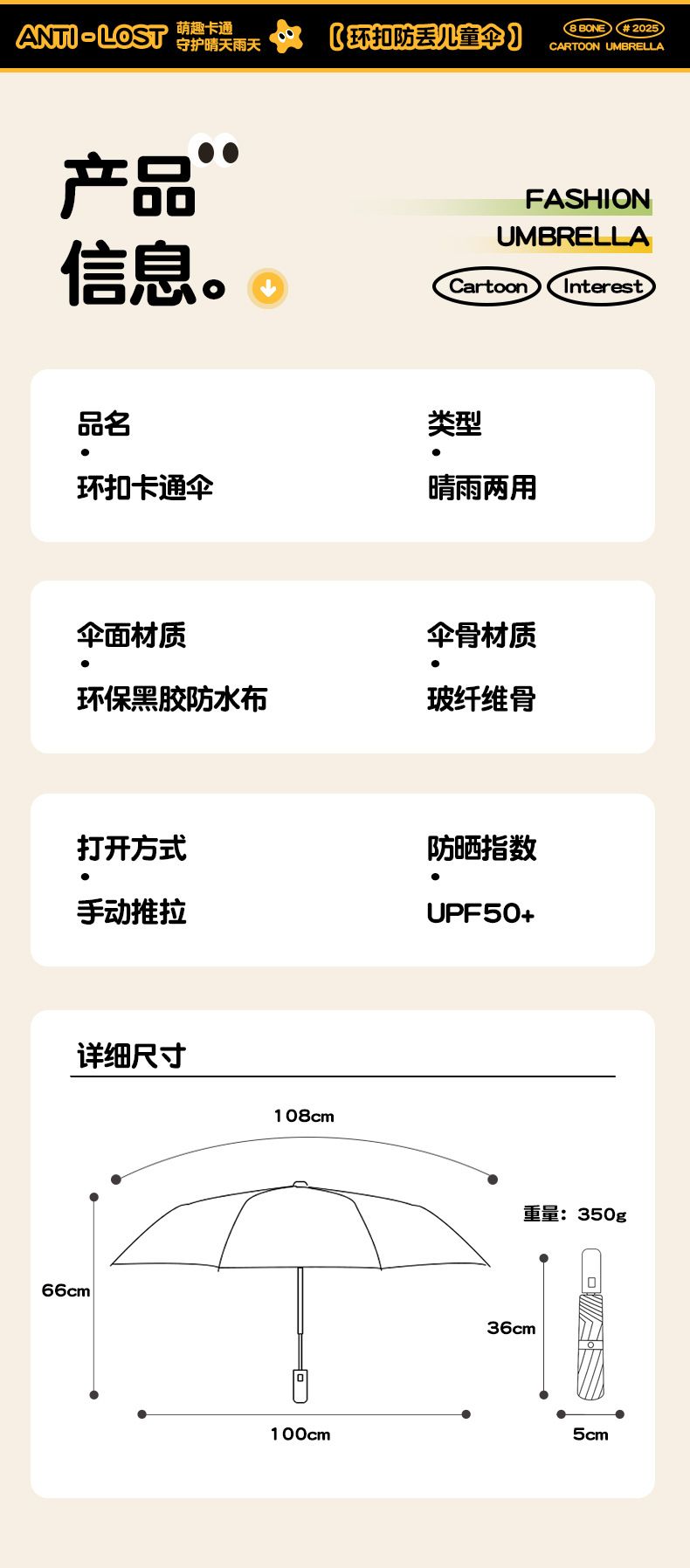 环扣儿童雨伞手动折叠小学生男女孩上学专用晴雨两用防晒防紫外线