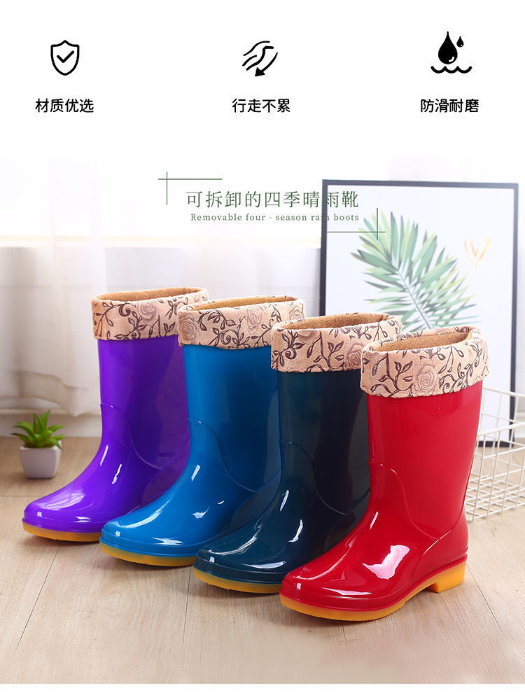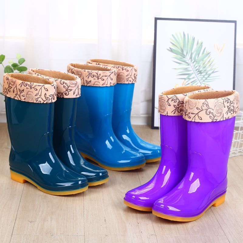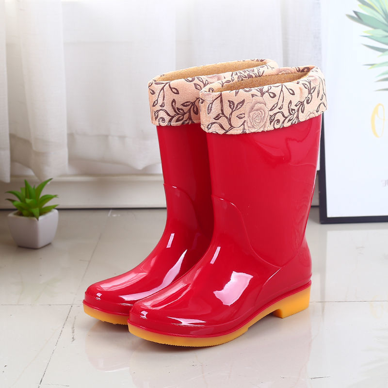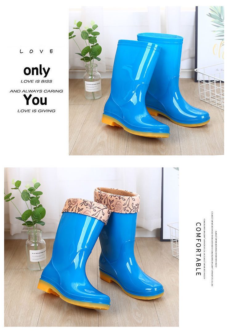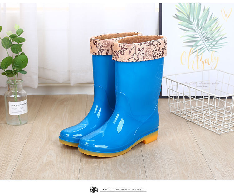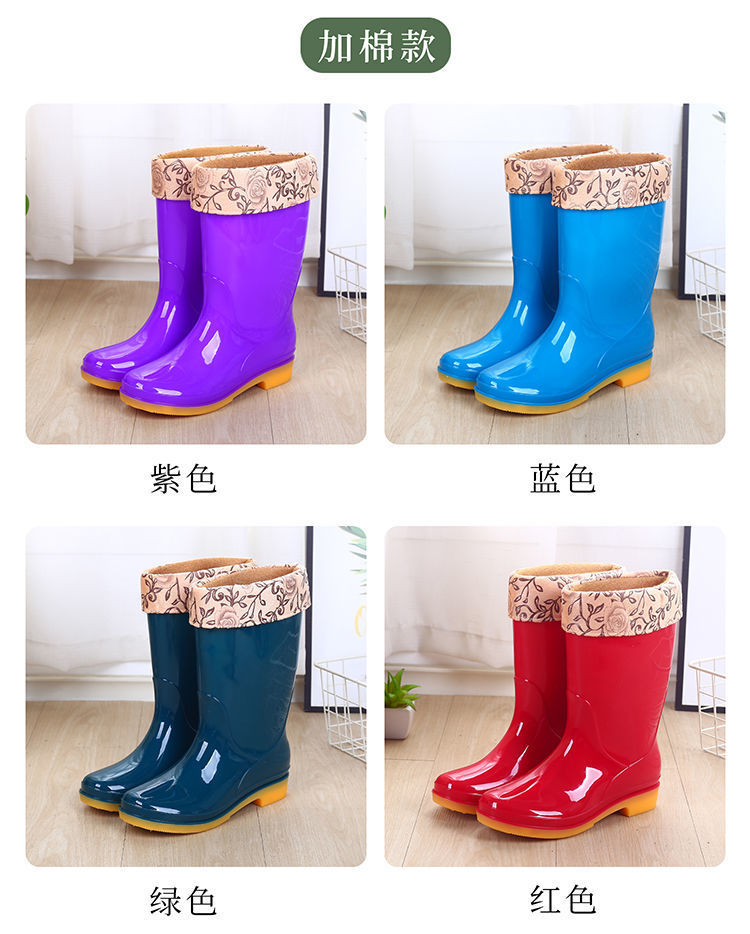 雨鞋中筒时尚百搭防滑水靴牛筋底劳保女加棉保暖一件代发跨境