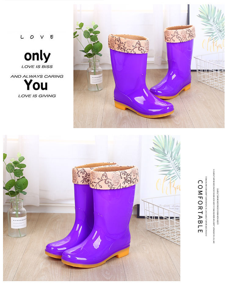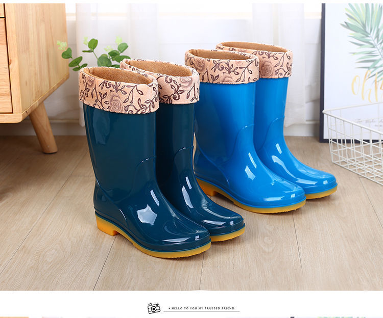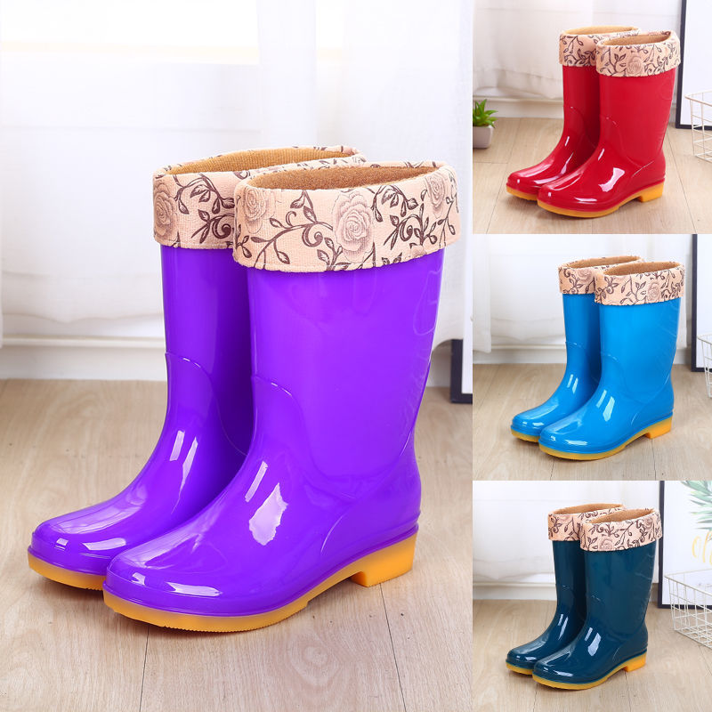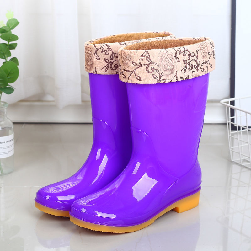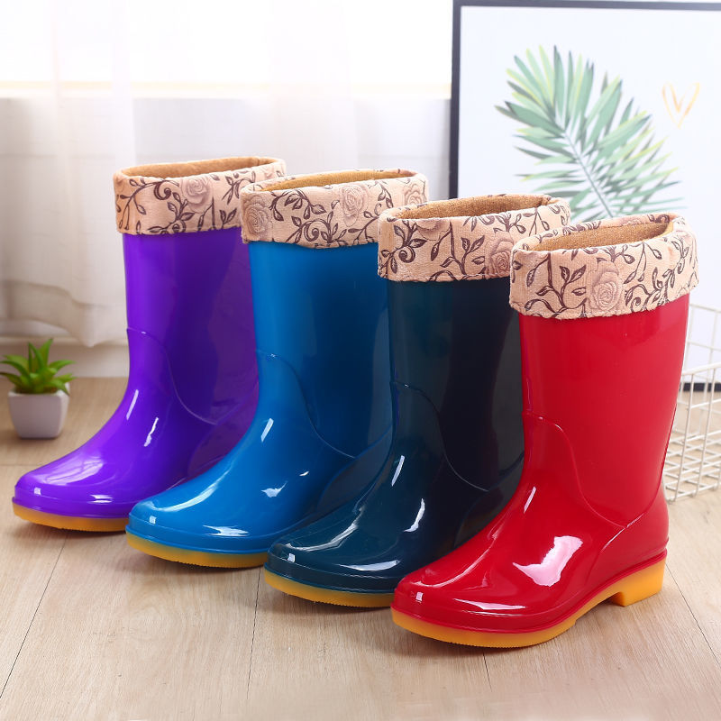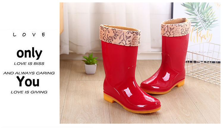 雨鞋中筒时尚百搭防滑水靴牛筋底劳保女加棉保暖一件代发跨境