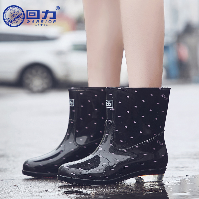 回力雨鞋女士时尚雨靴防水耐磨阻滑工作鞋水鞋胶鞋不易滑加绒短筒